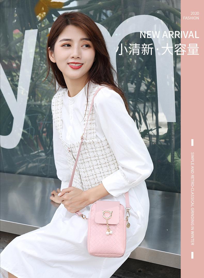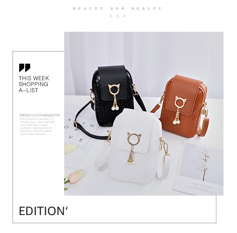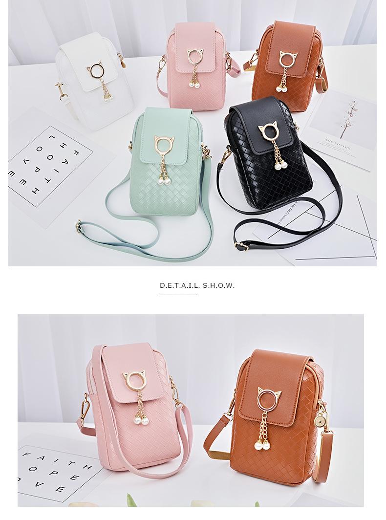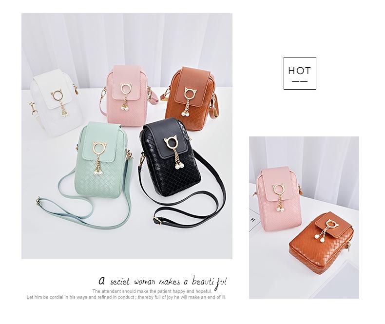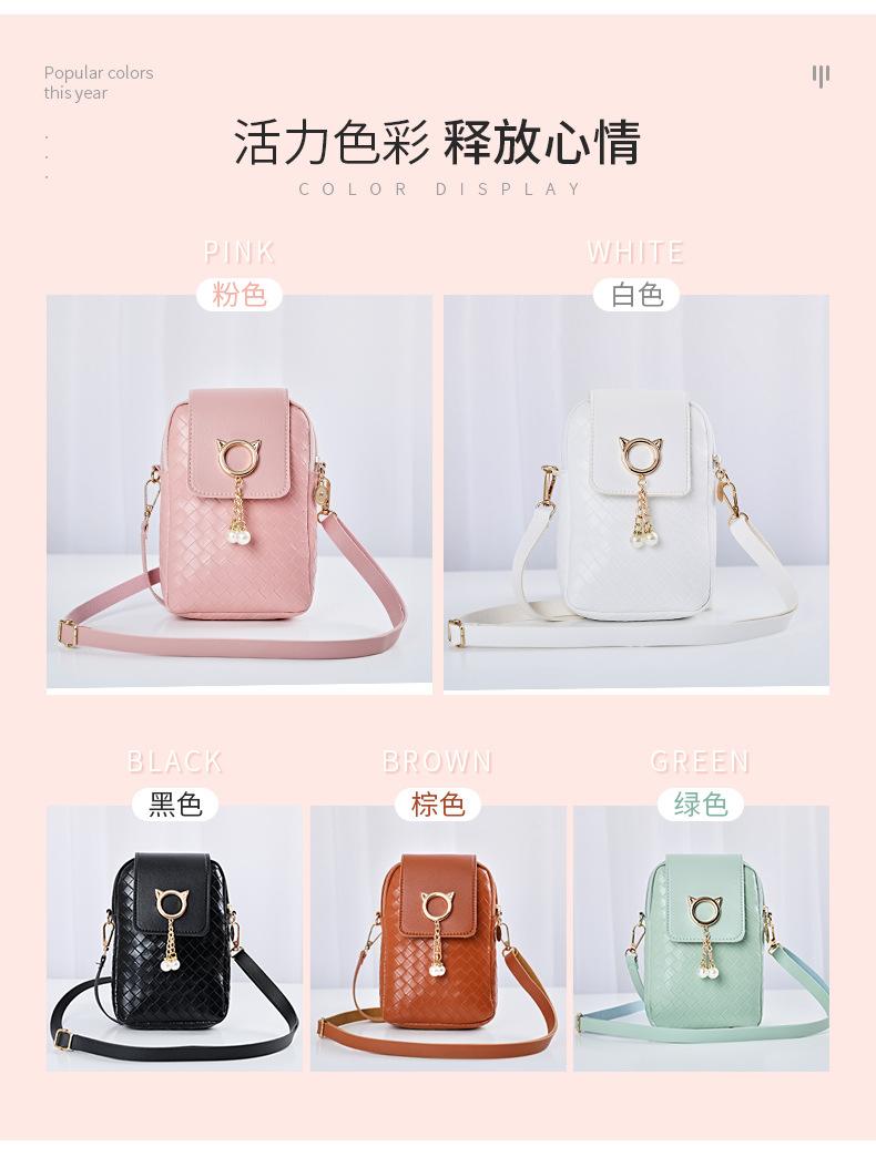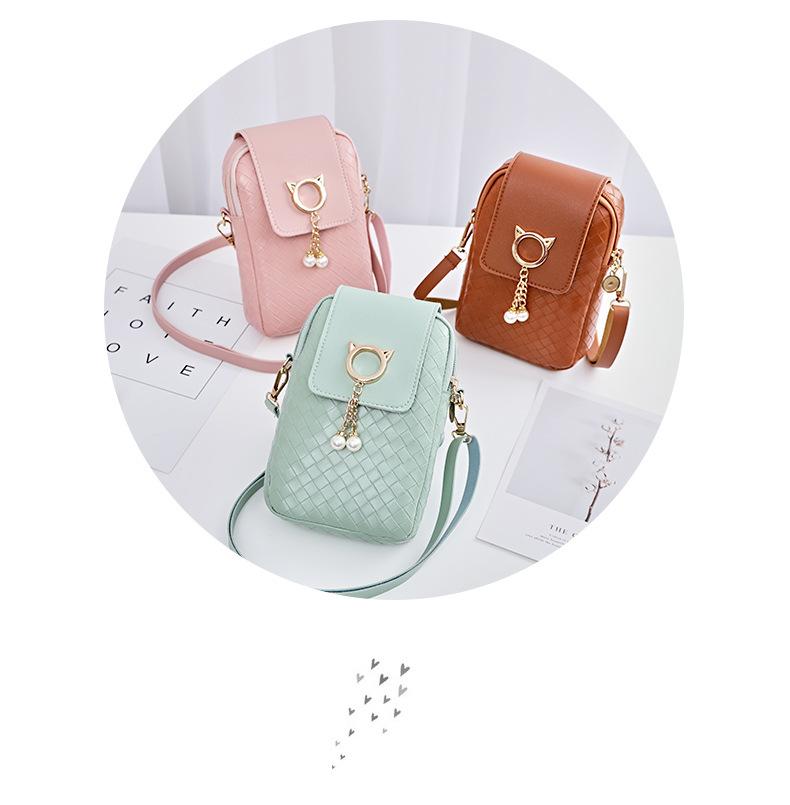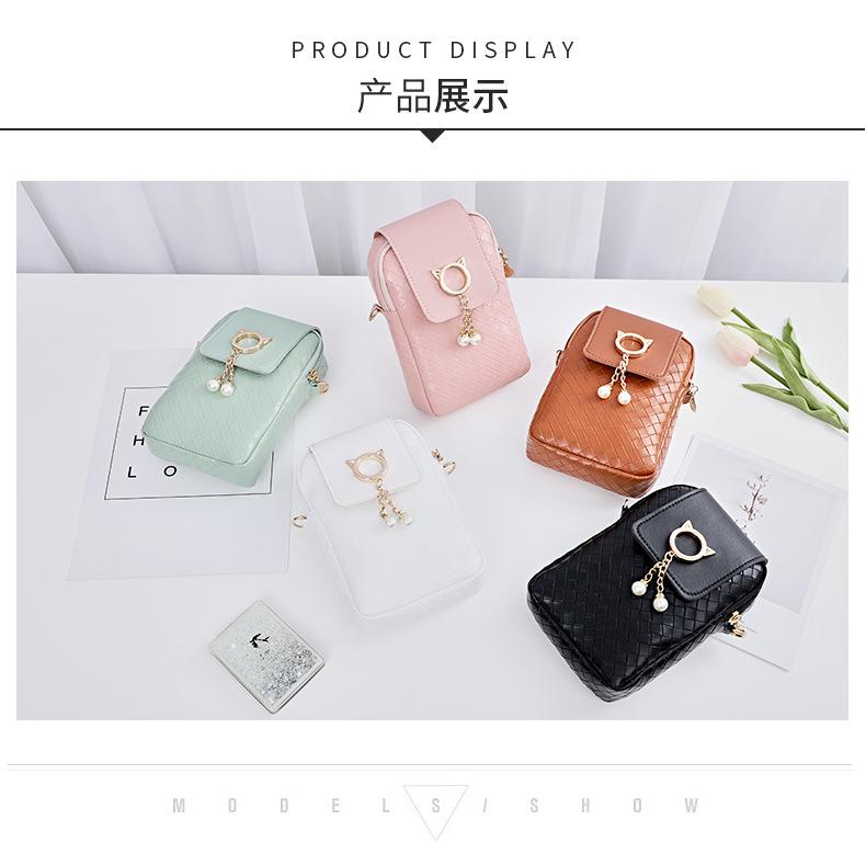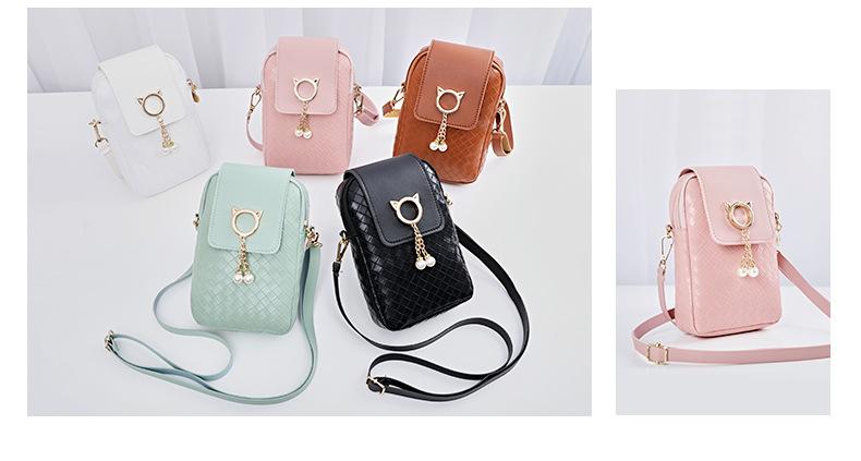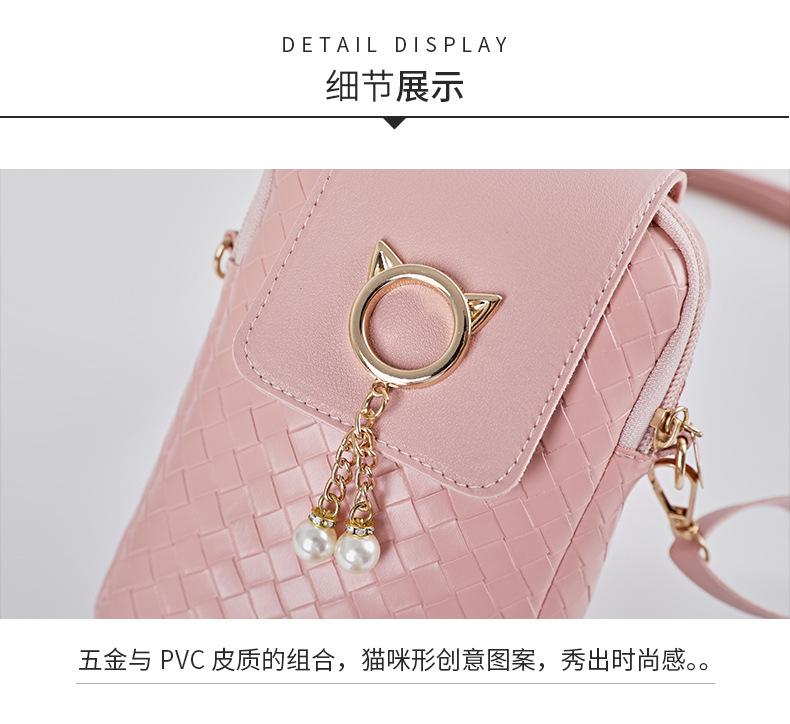 Bolso de mujer transfronterizo 2020 nueva moda patrón tejido bolso pequeño gato colgante de perlas bolso de hombro bolso bandolera bolso para teléfono móvil