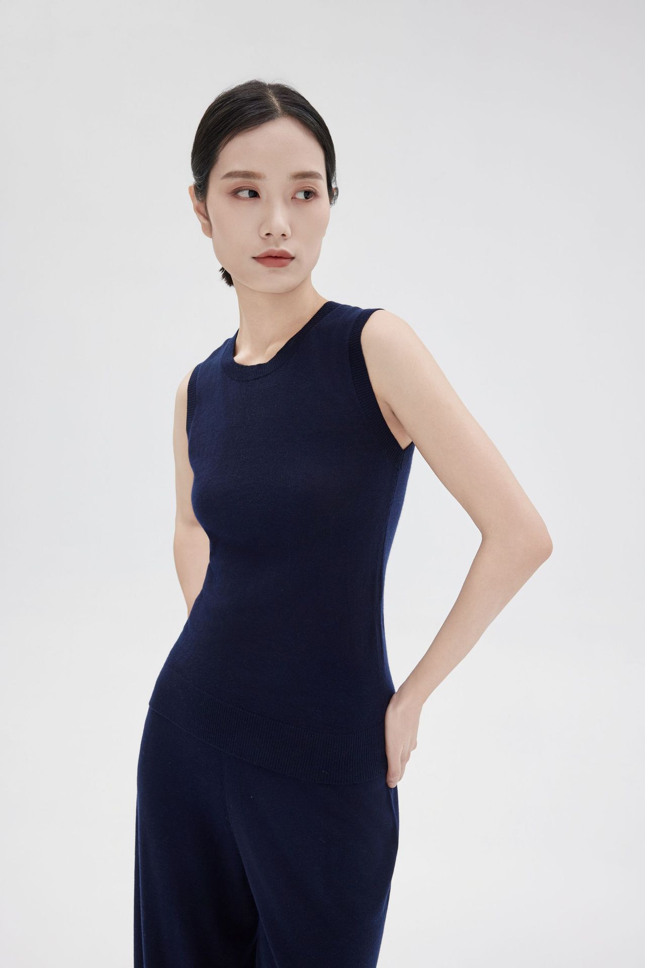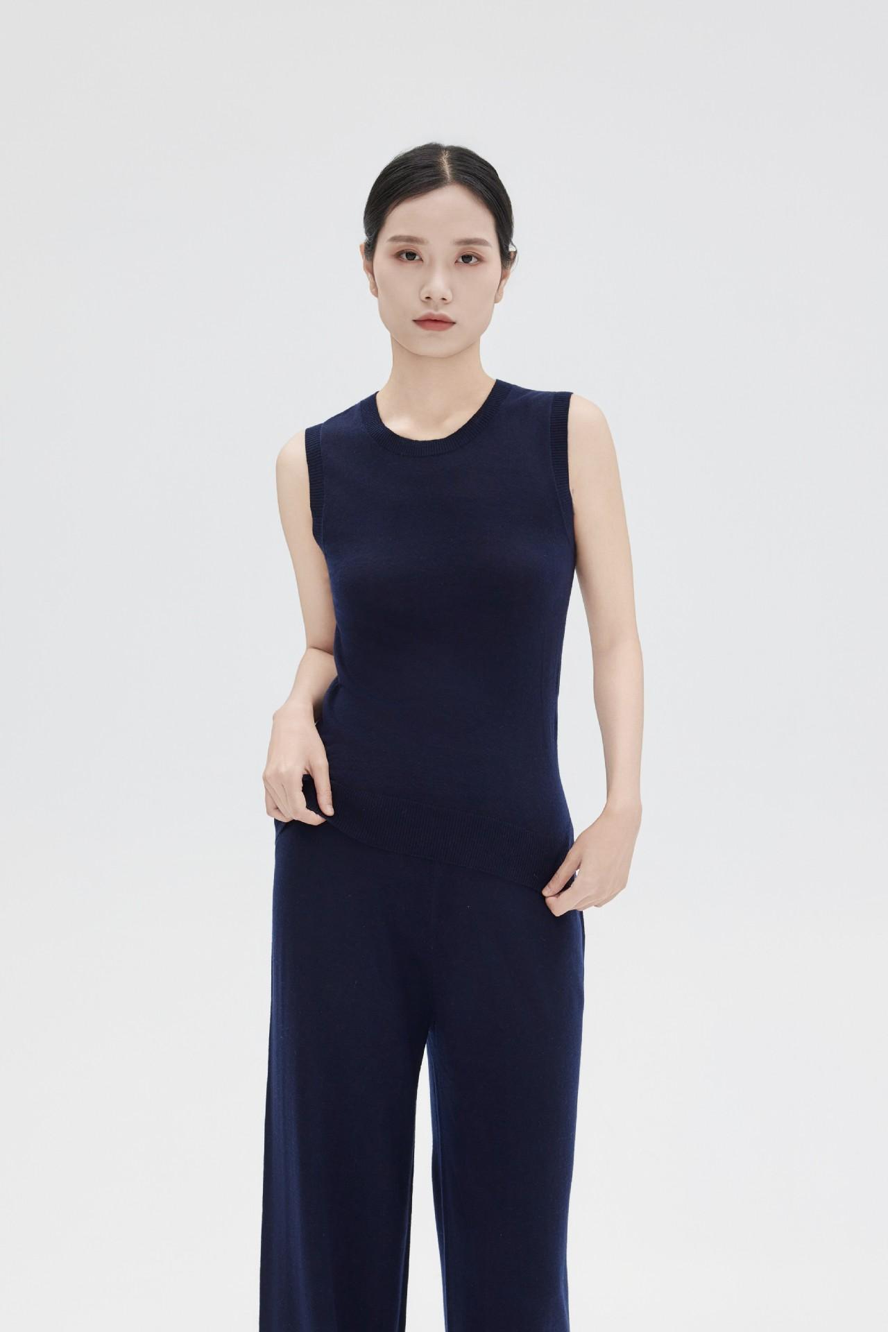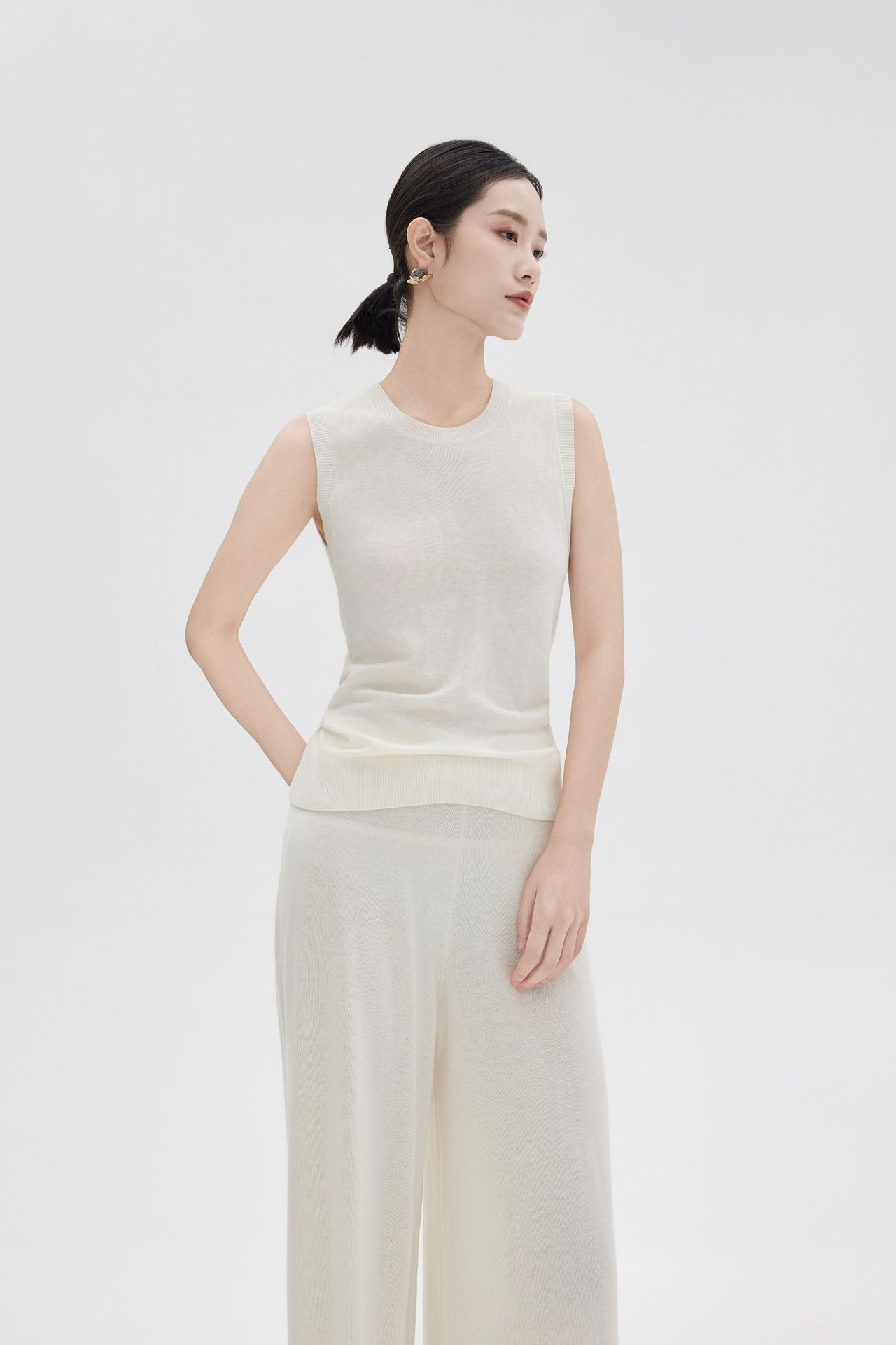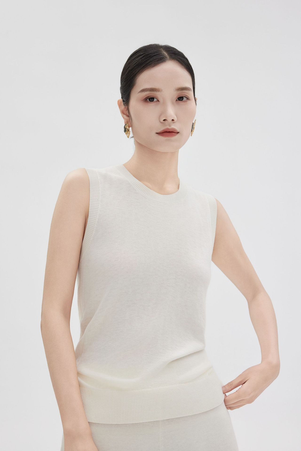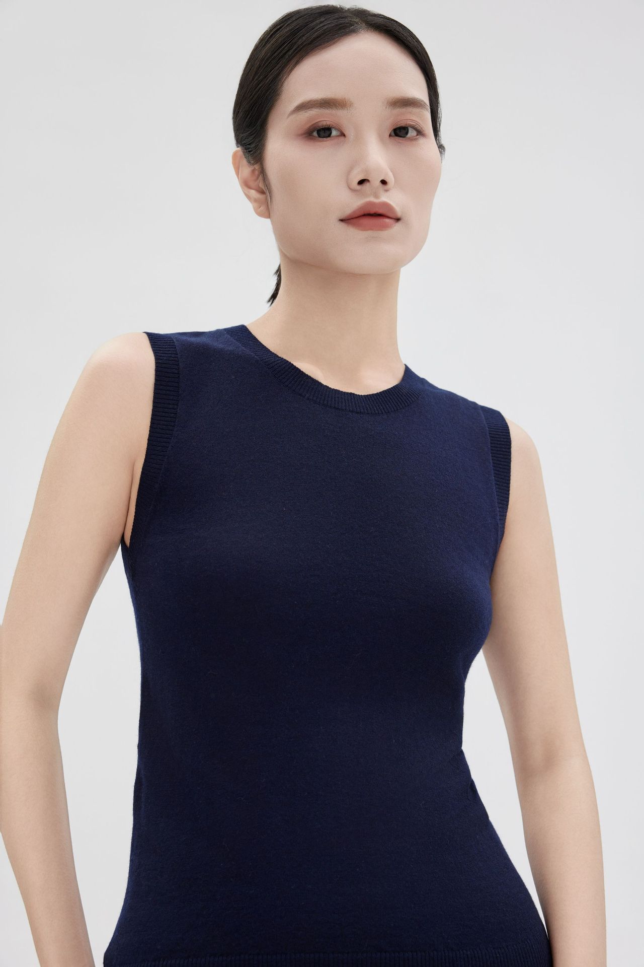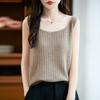 Top interior casual de punto sin mangas y cuello redondo de imitación de lana de alta calidad, chaleco de punto fino versátil para mujer