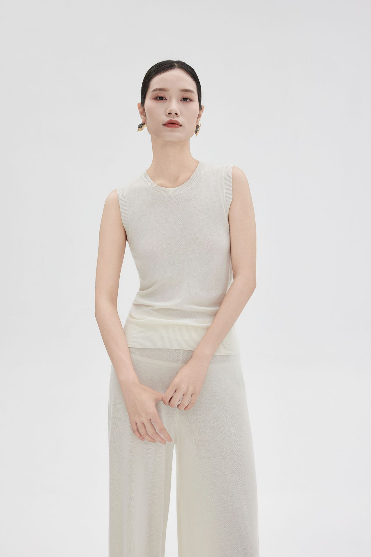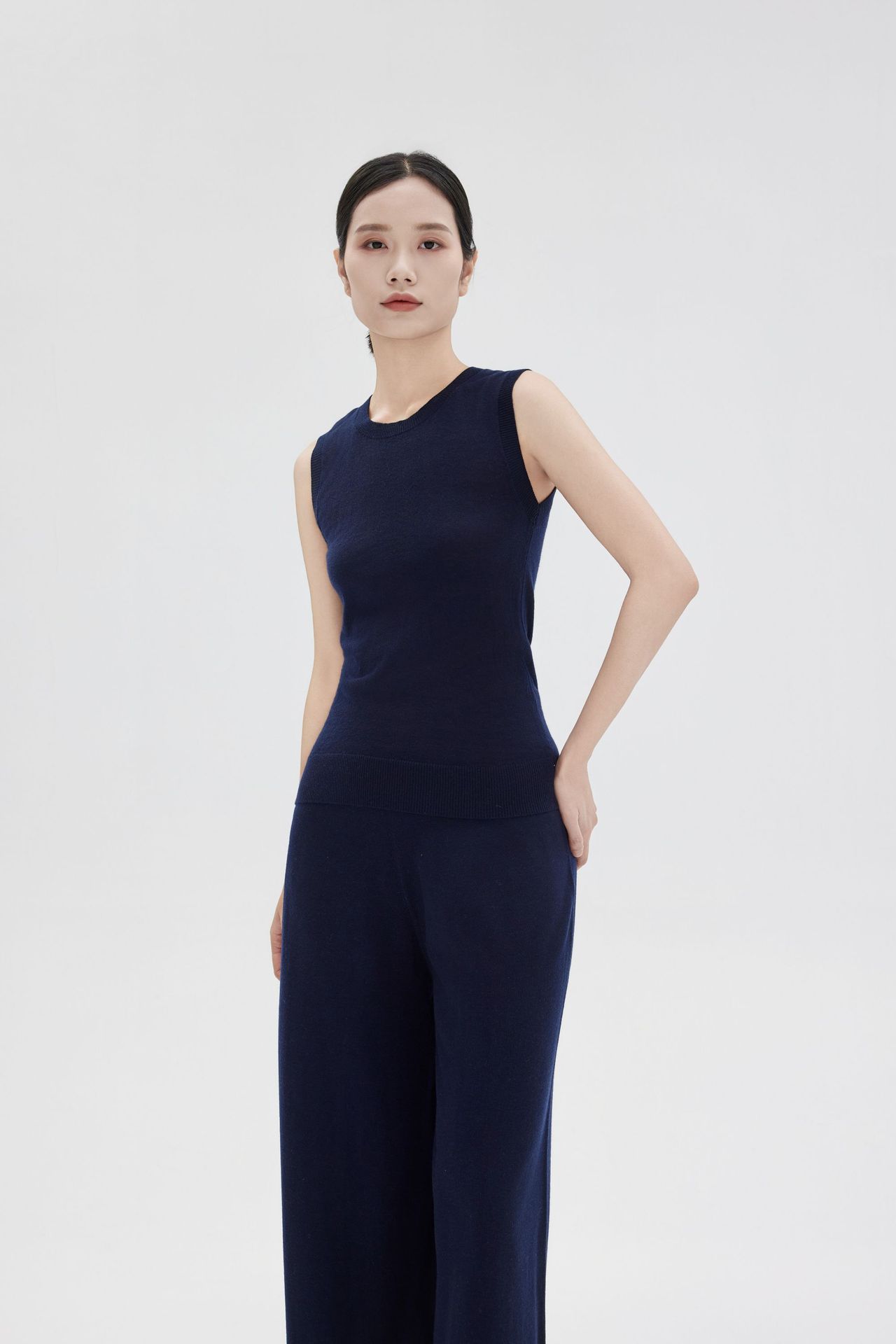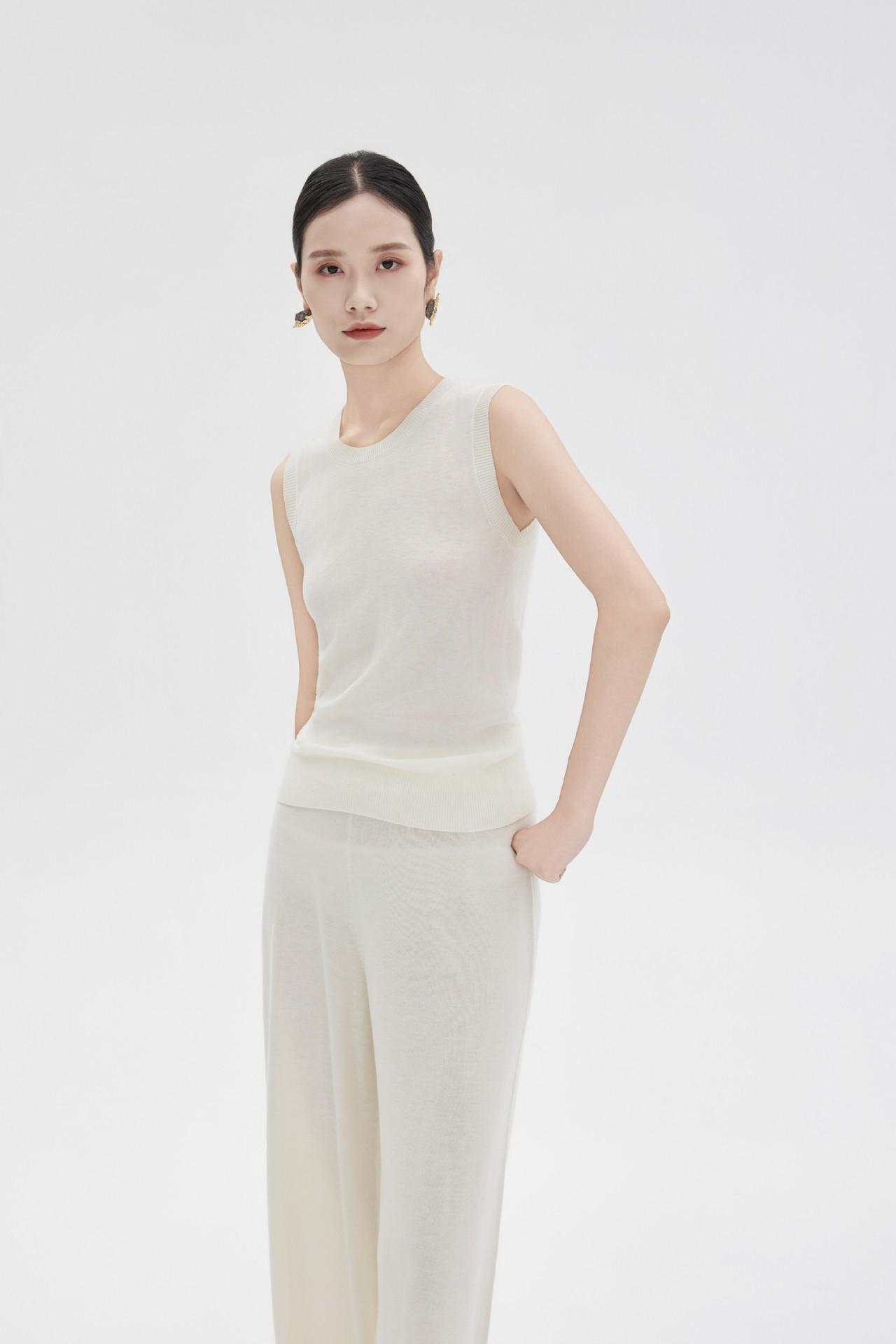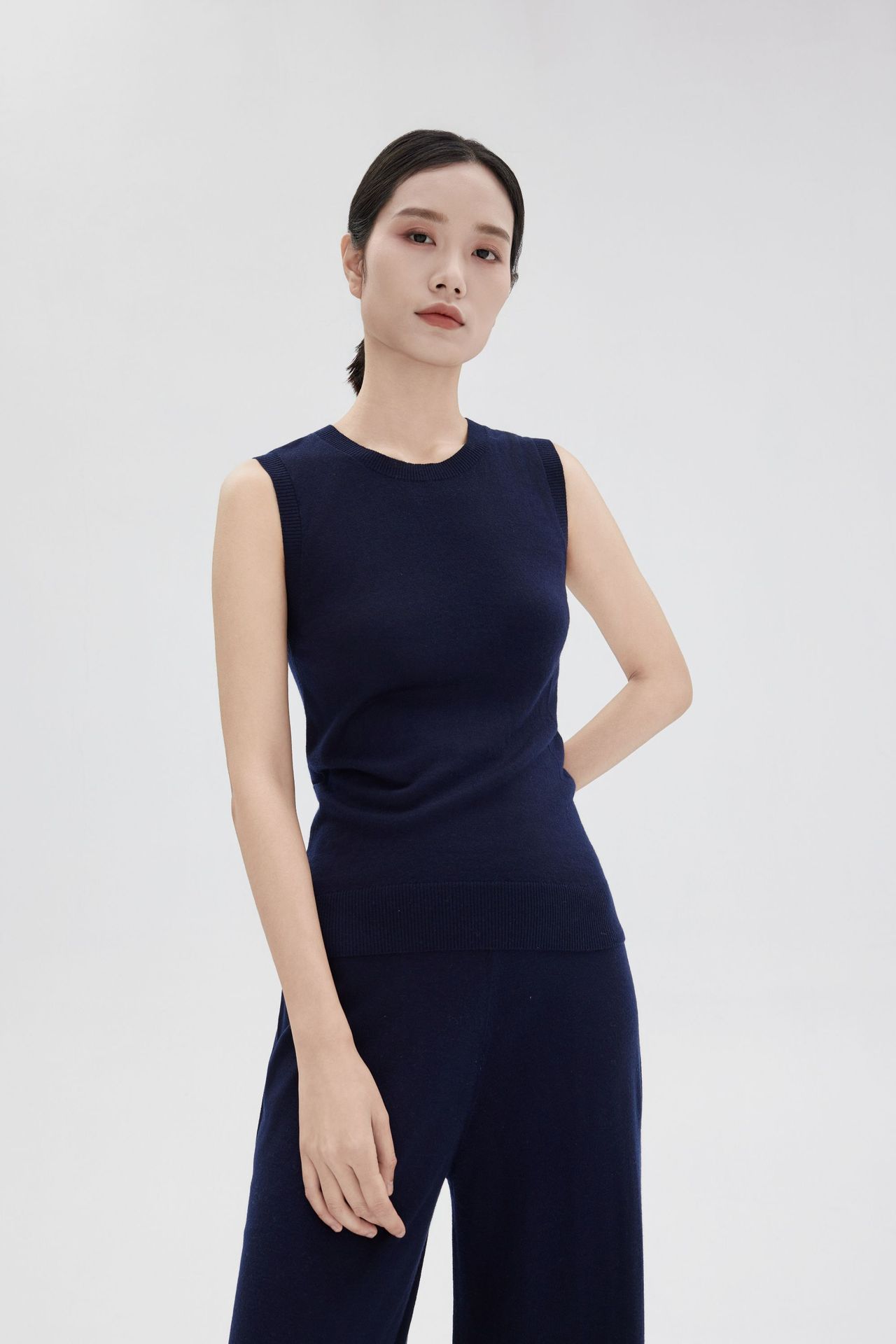 Top interior casual de punto sin mangas y cuello redondo de imitación de lana de alta calidad, chaleco de punto fino versátil para mujer