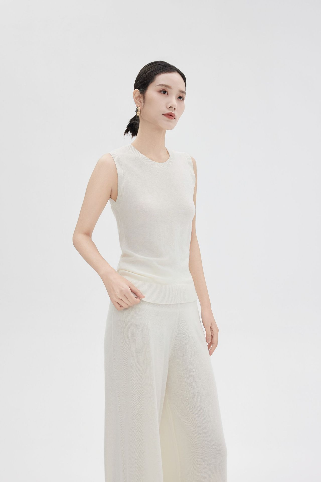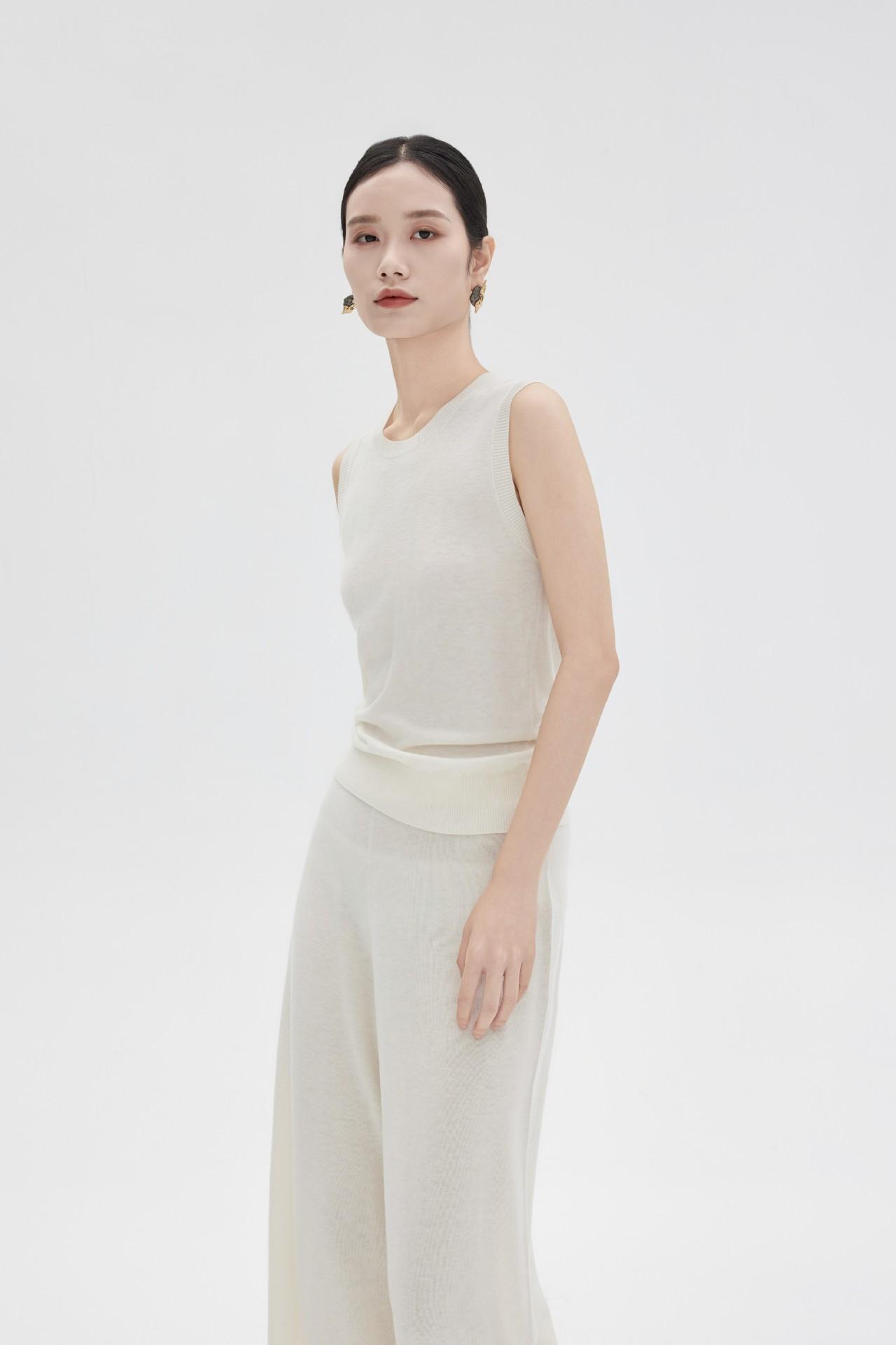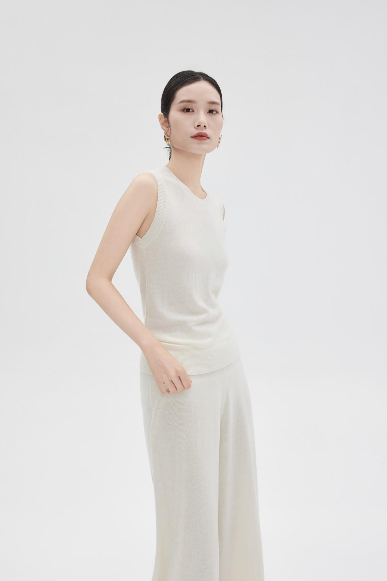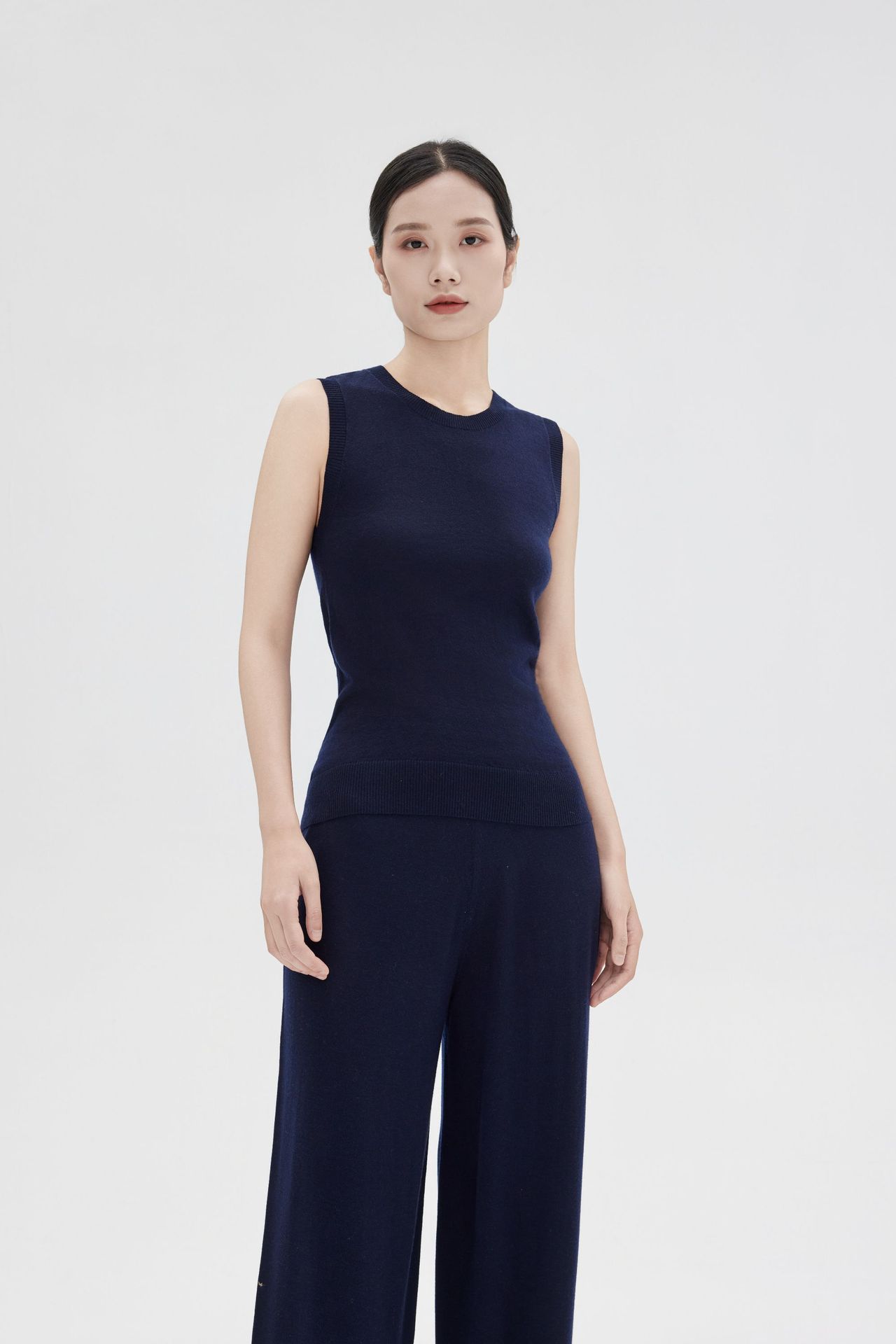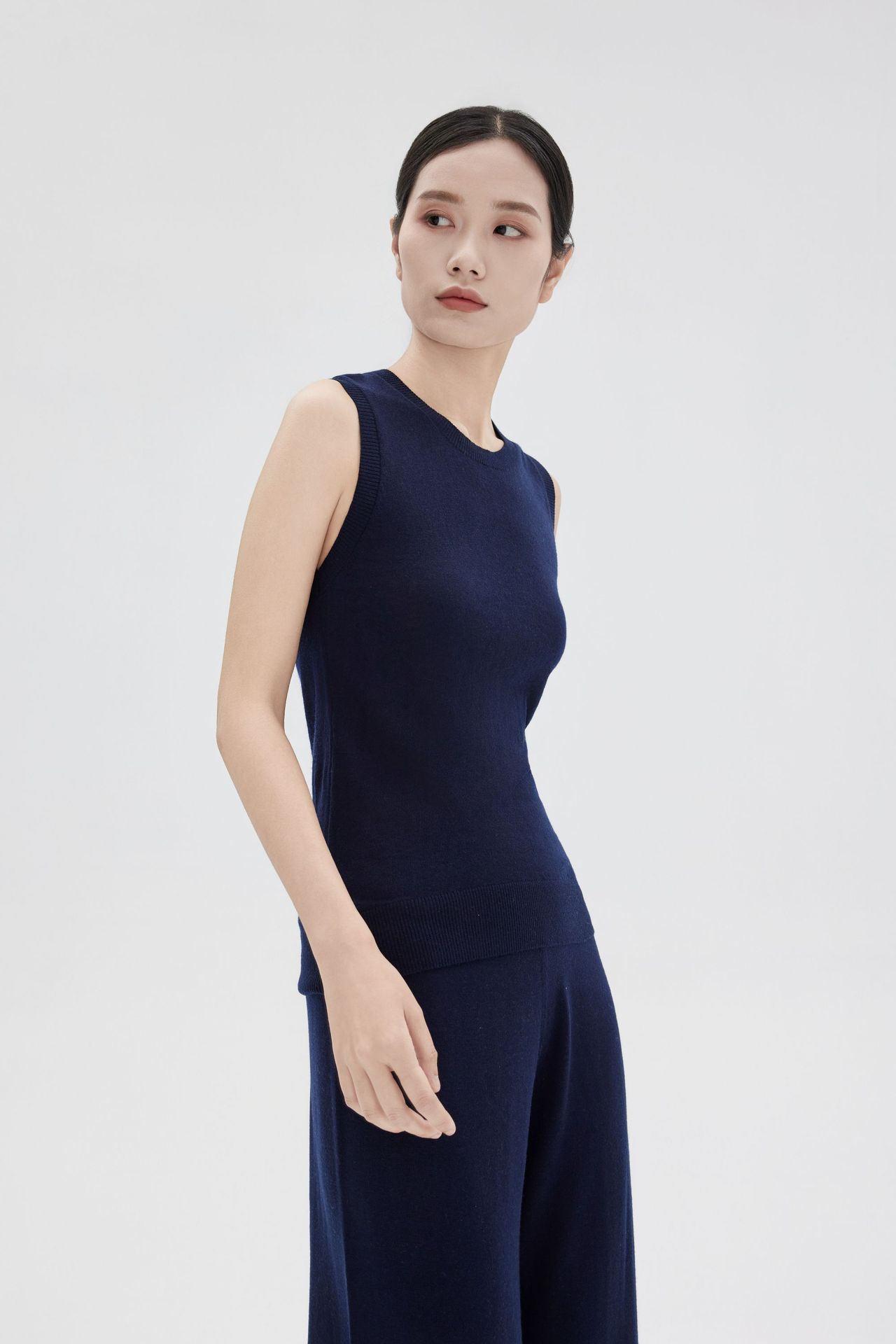 Top interior casual de punto sin mangas y cuello redondo de imitación de lana de alta calidad, chaleco de punto fino versátil para mujer