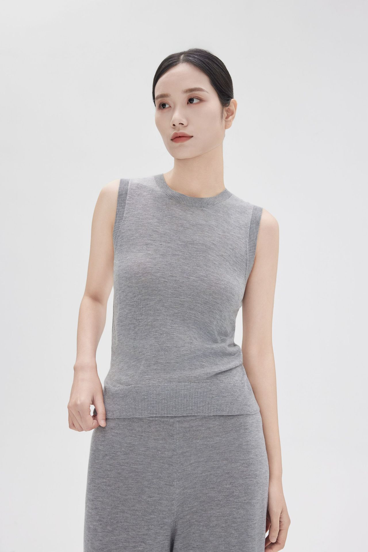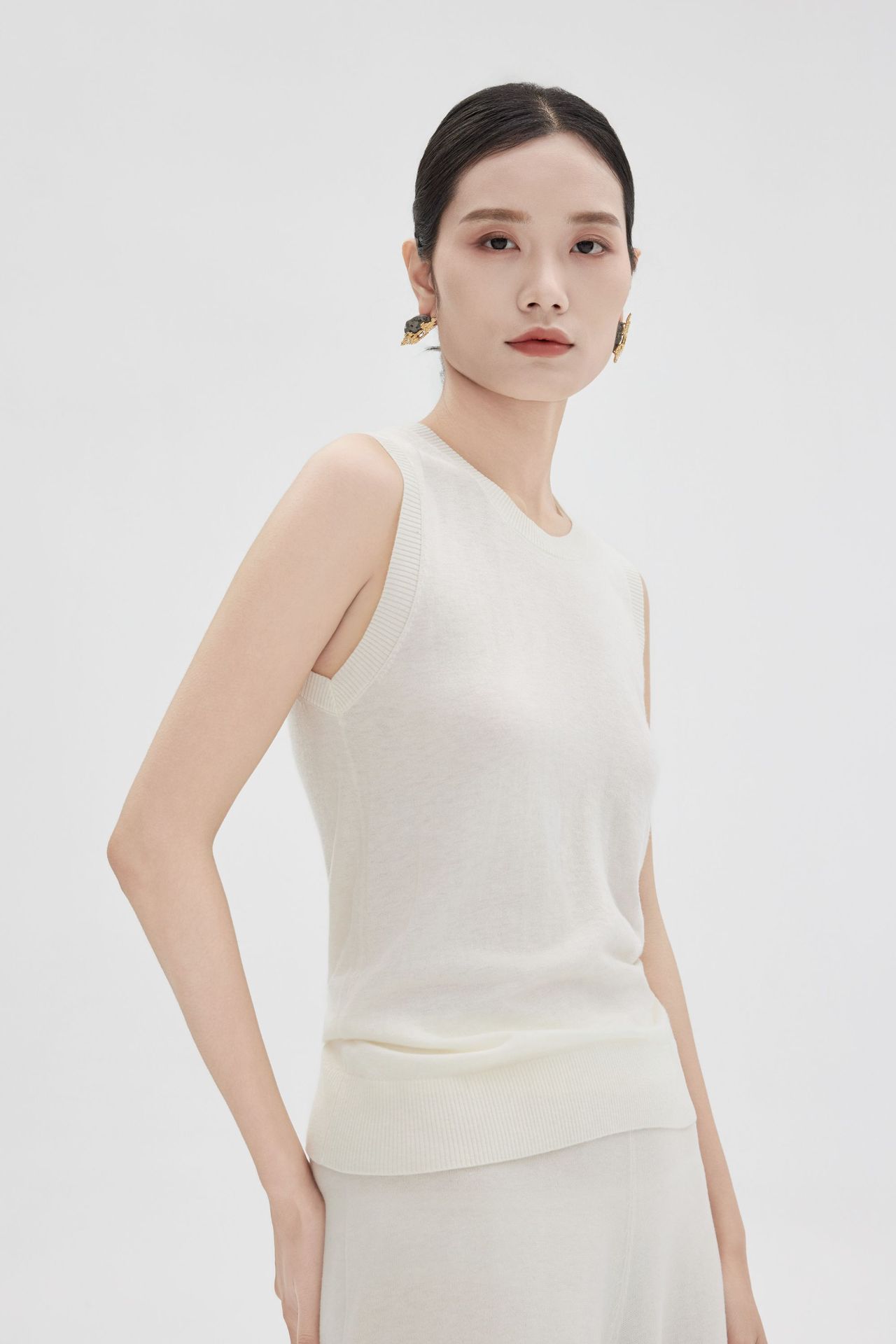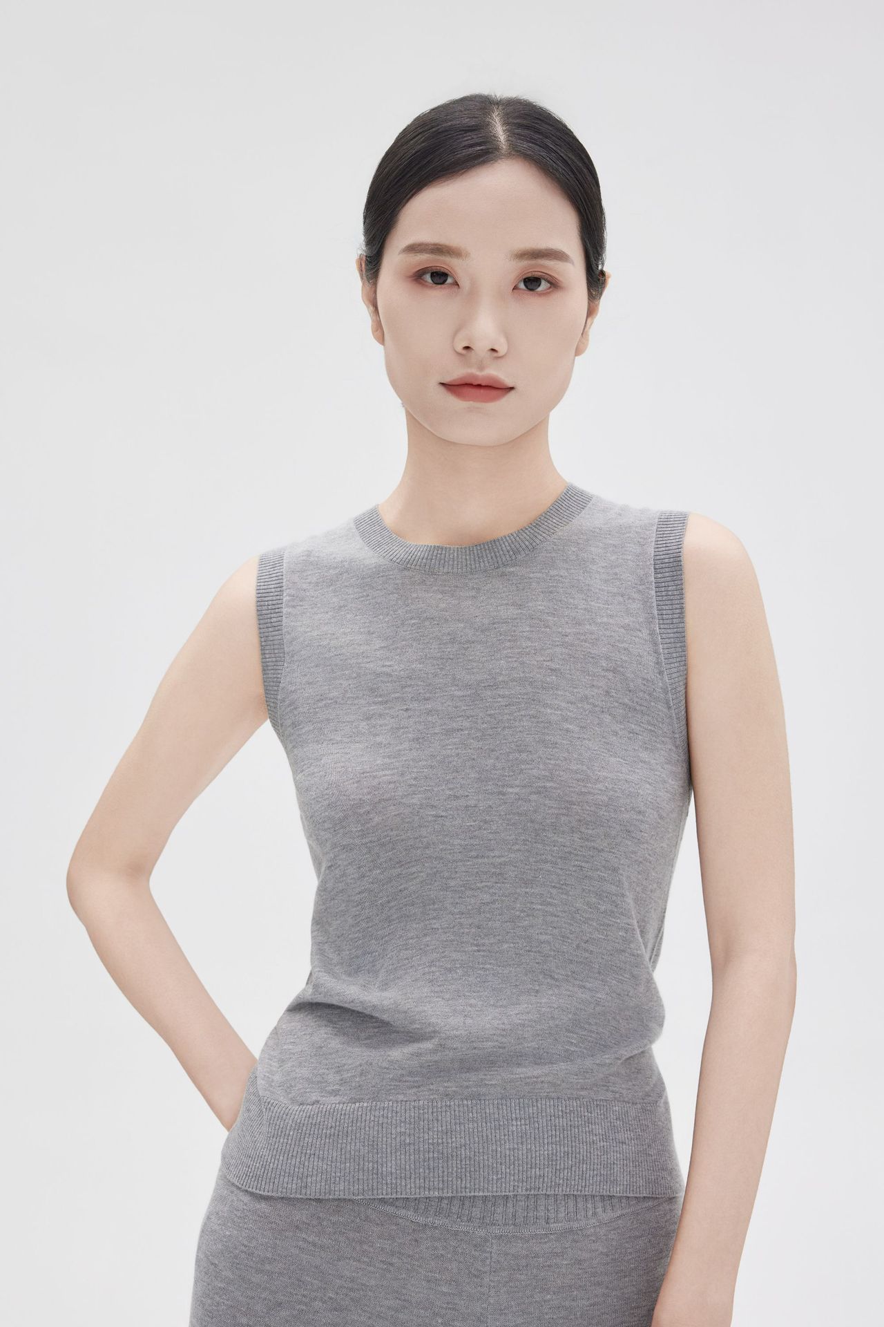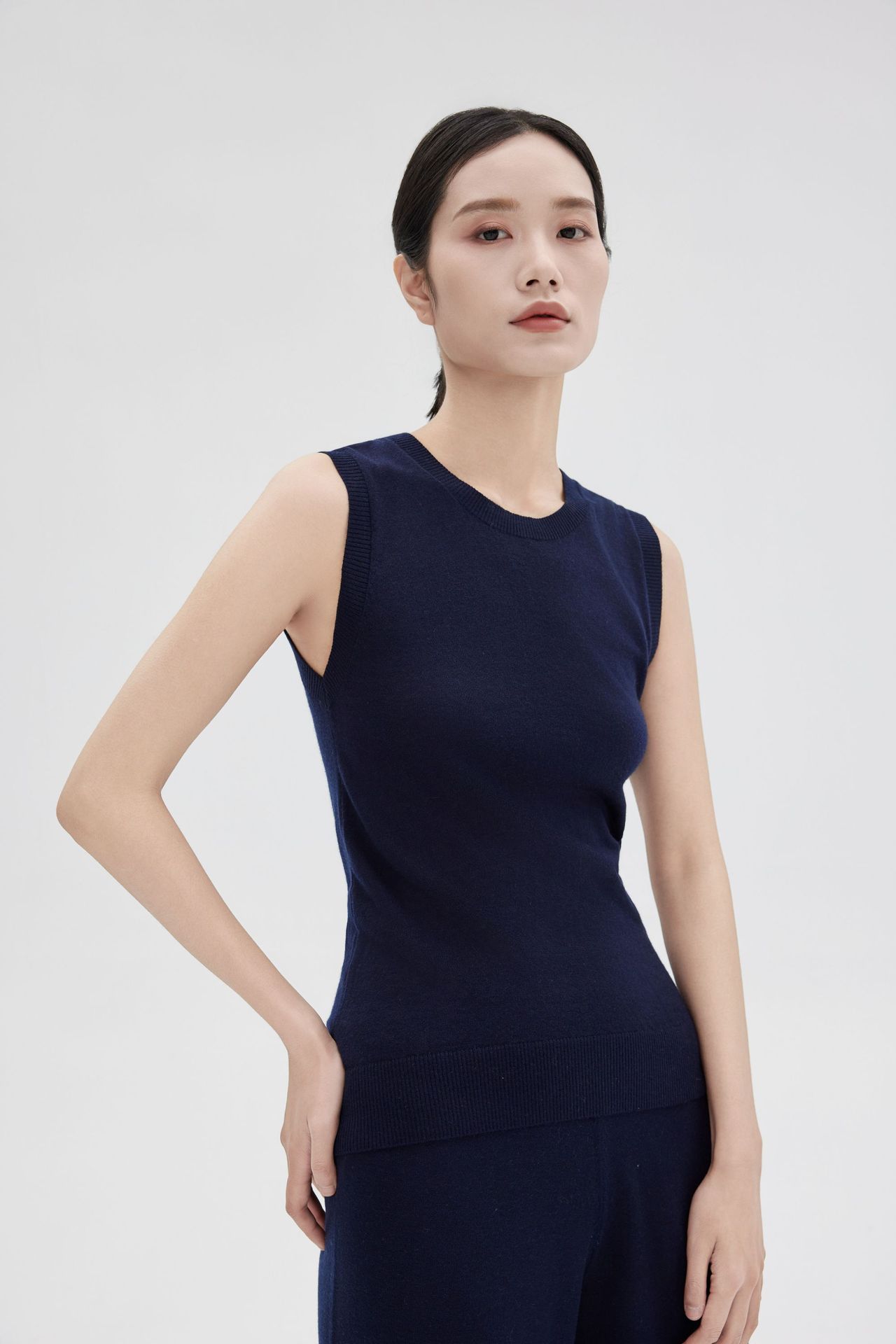 Top interior casual de punto sin mangas y cuello redondo de imitación de lana de alta calidad, chaleco de punto fino versátil para mujer