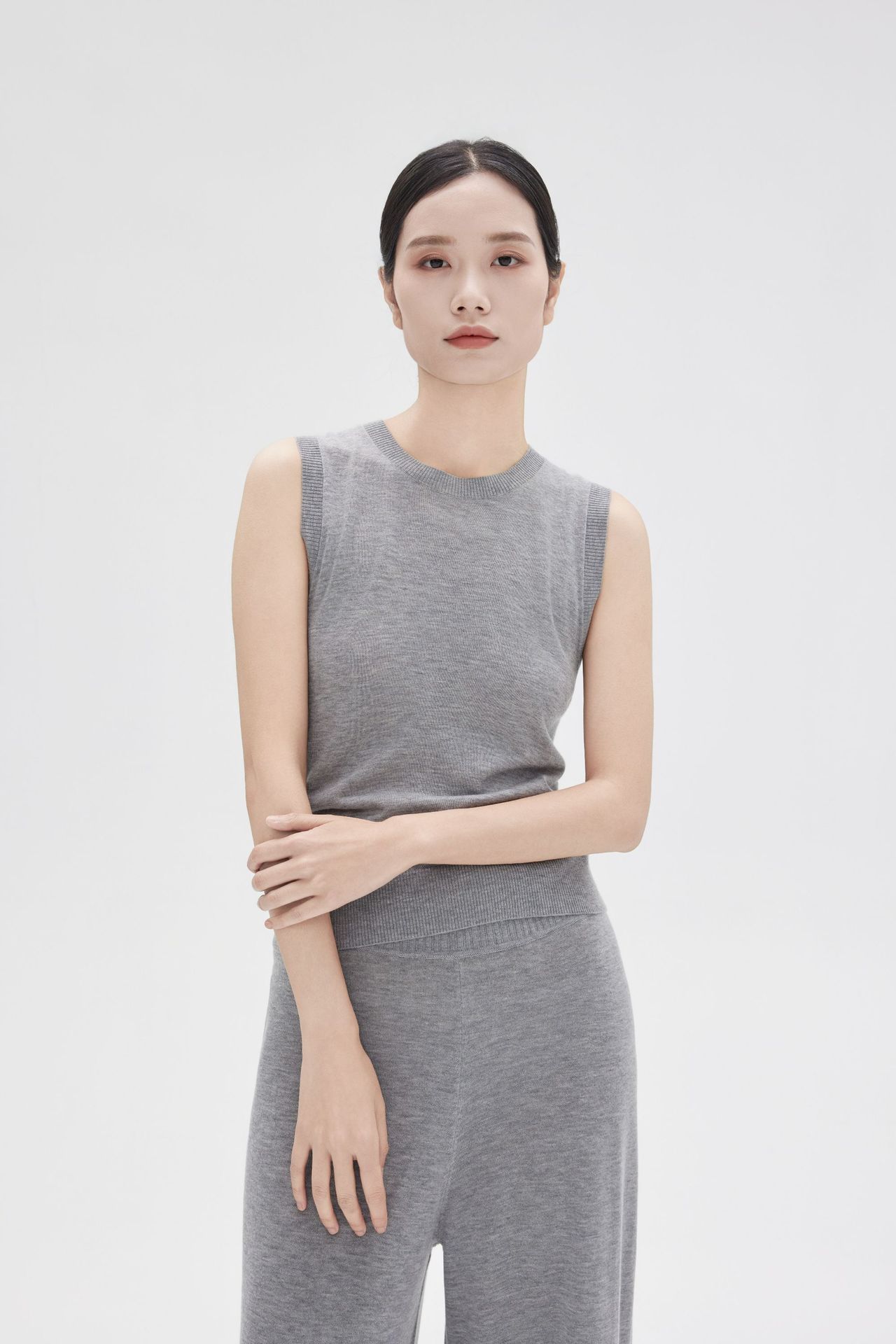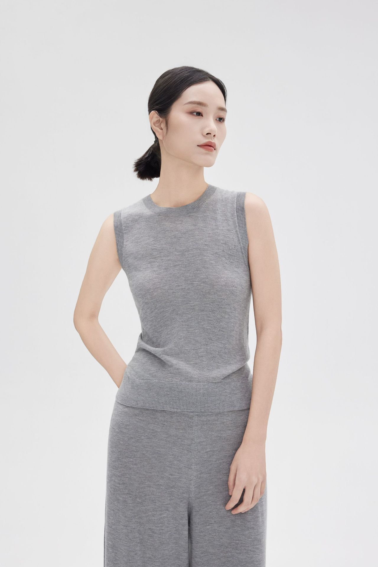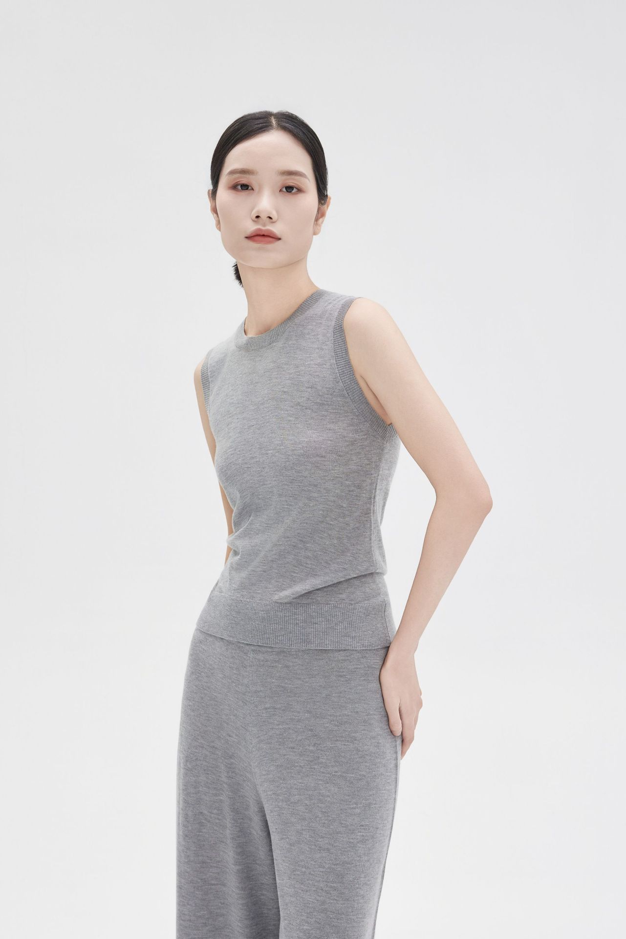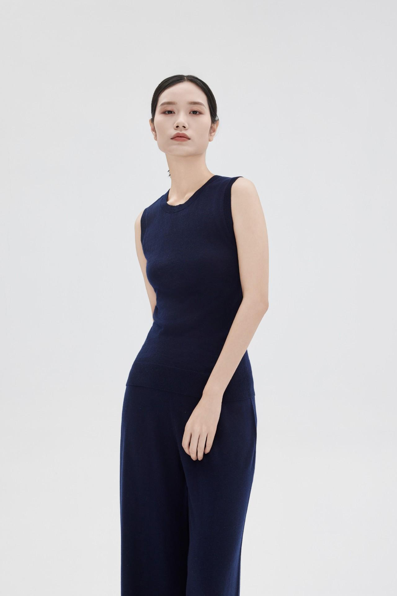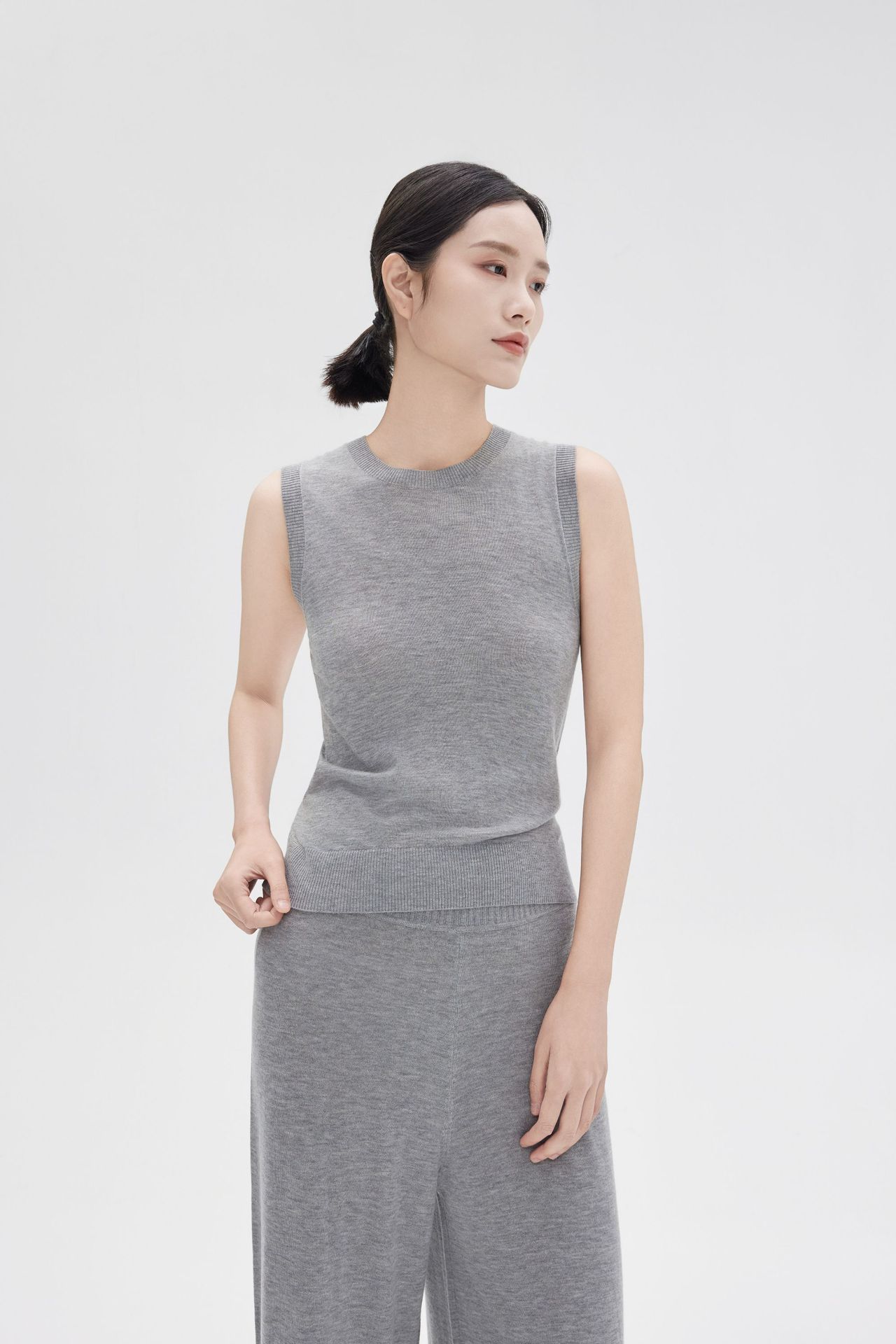 Top interior casual de punto sin mangas y cuello redondo de imitación de lana de alta calidad, chaleco de punto fino versátil para mujer