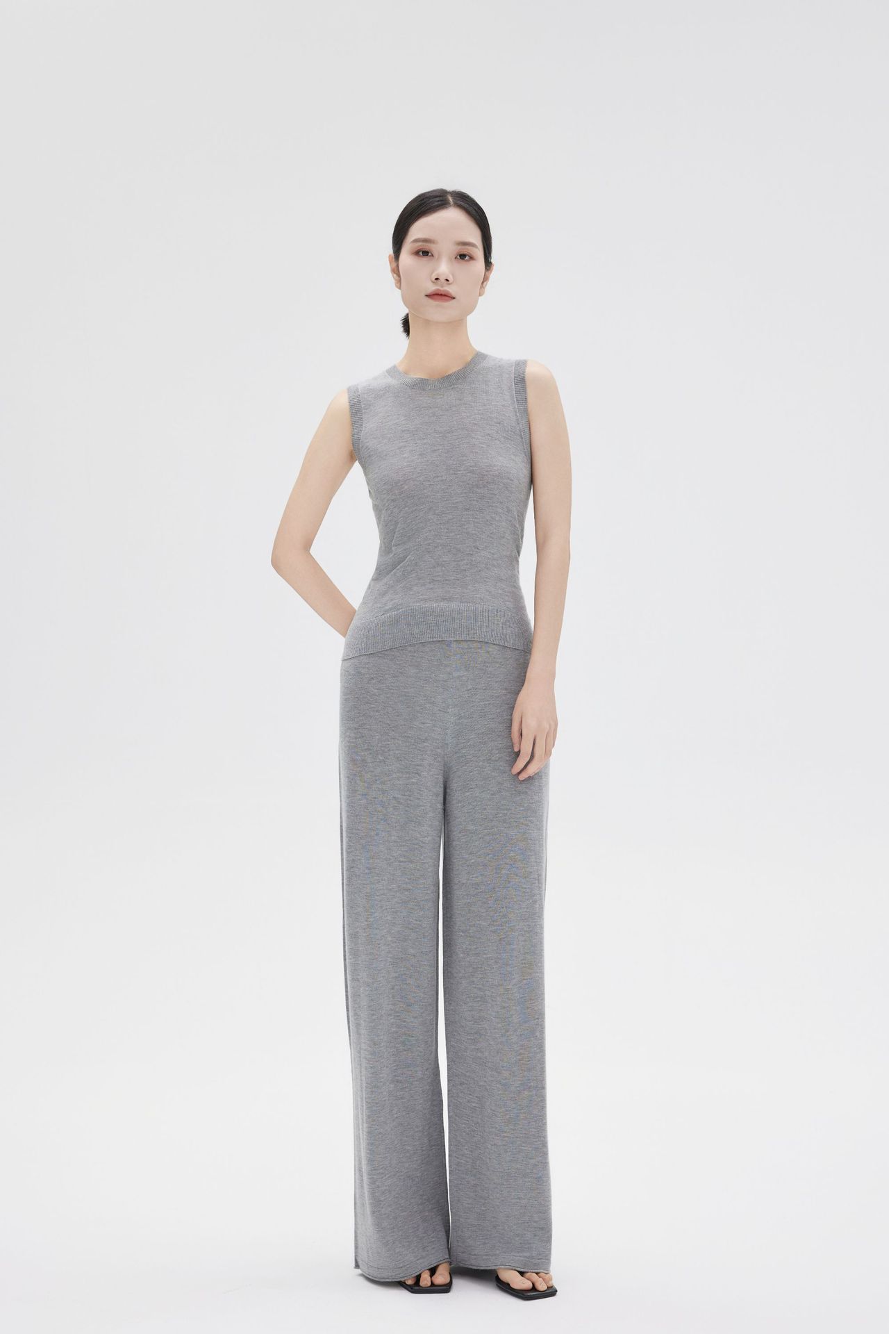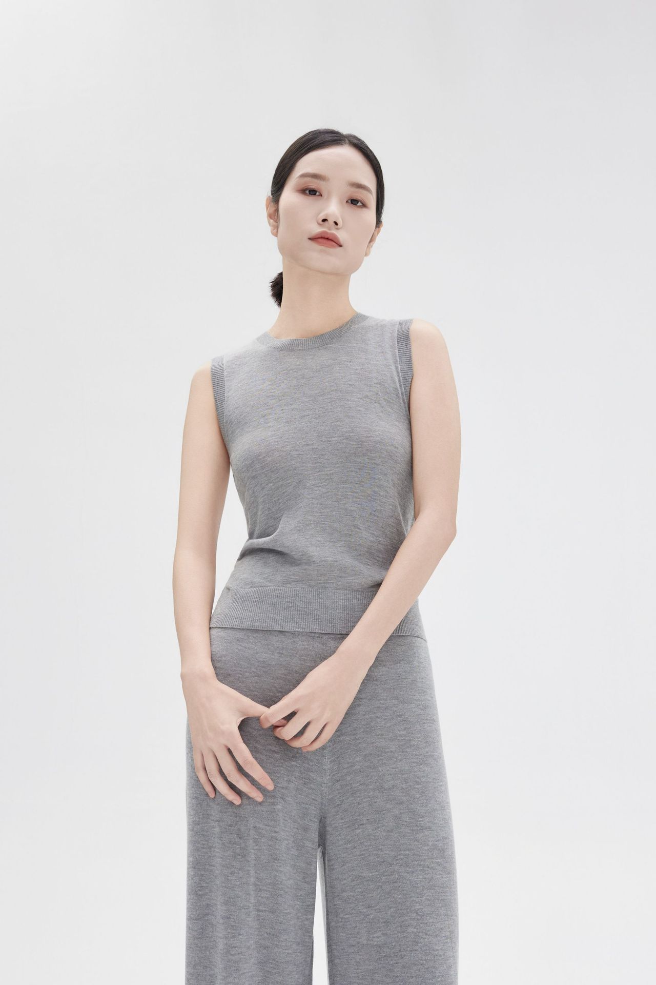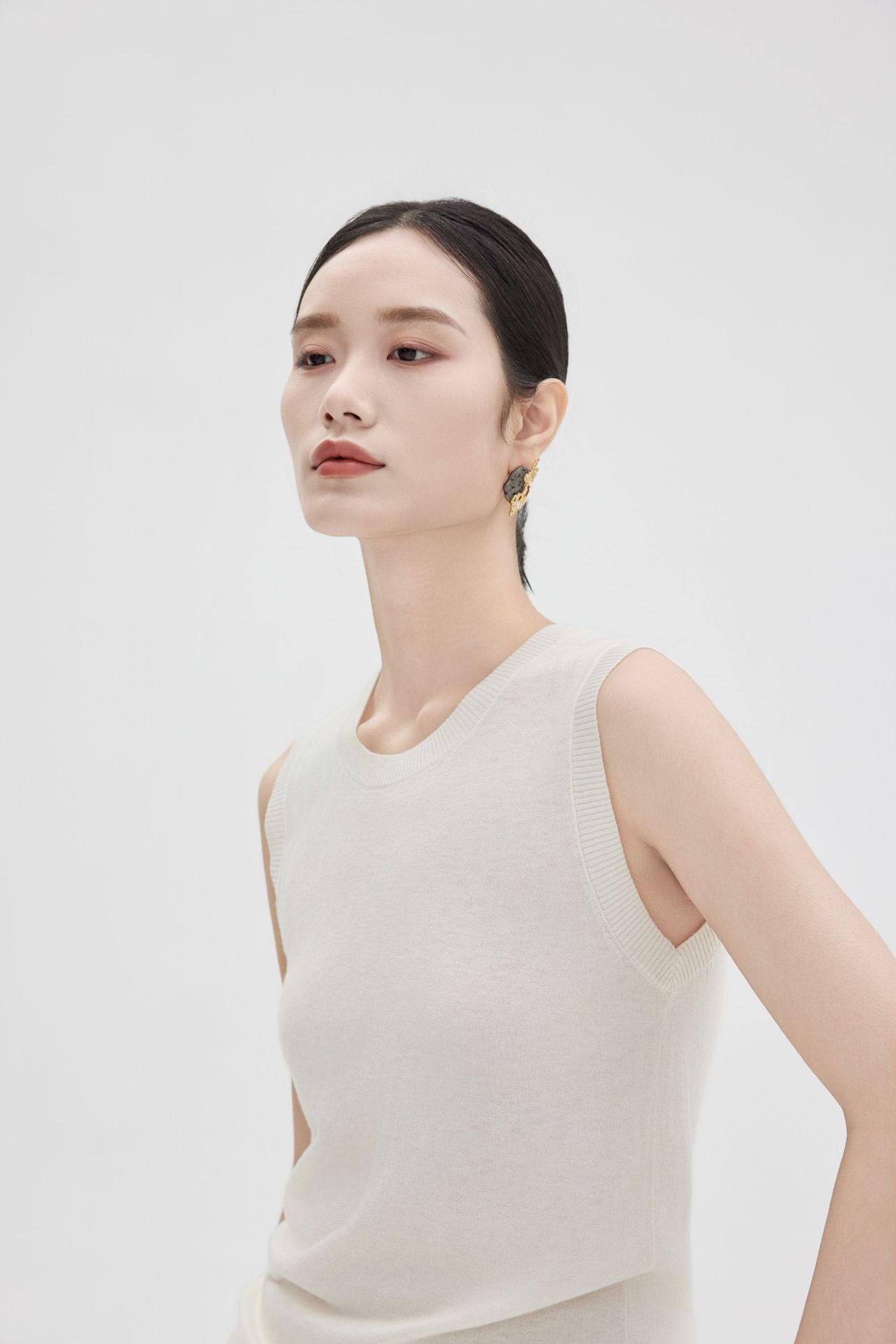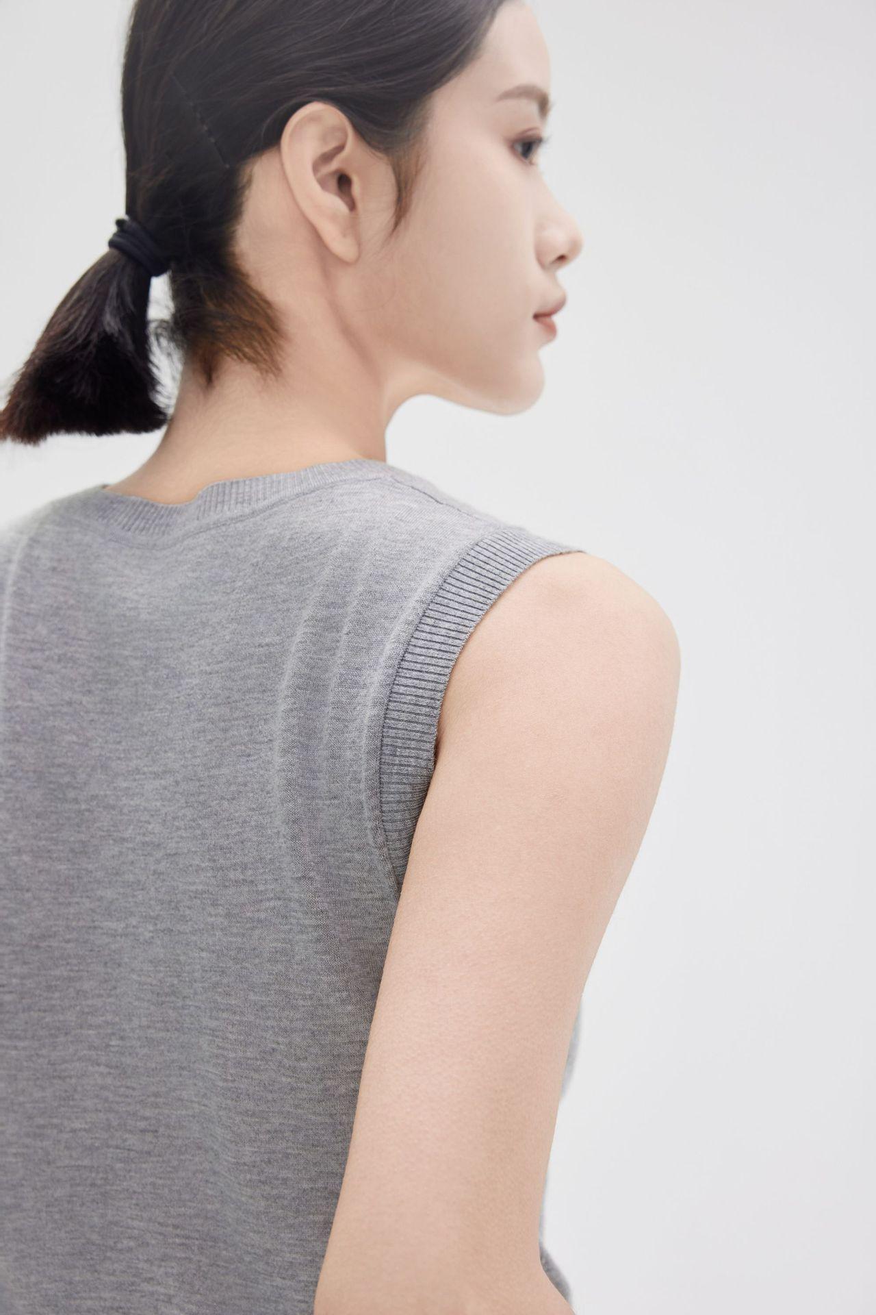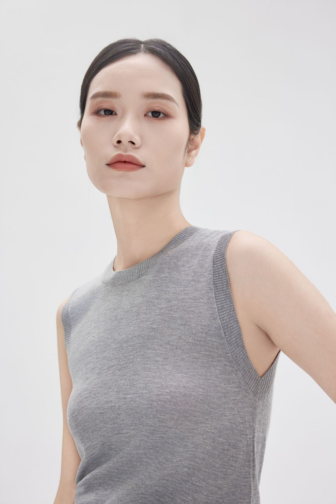 Top interior casual de punto sin mangas y cuello redondo de imitación de lana de alta calidad, chaleco de punto fino versátil para mujer
