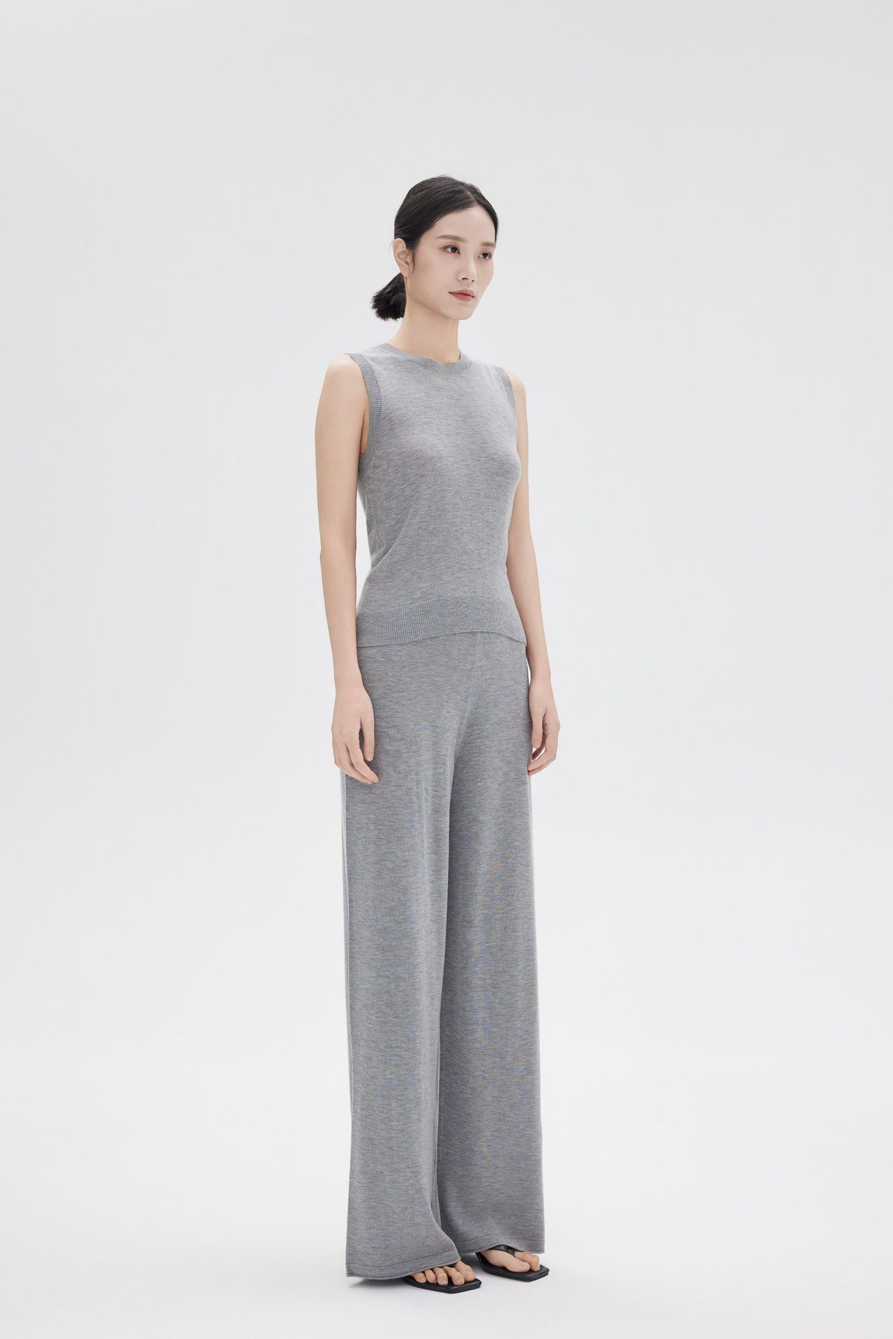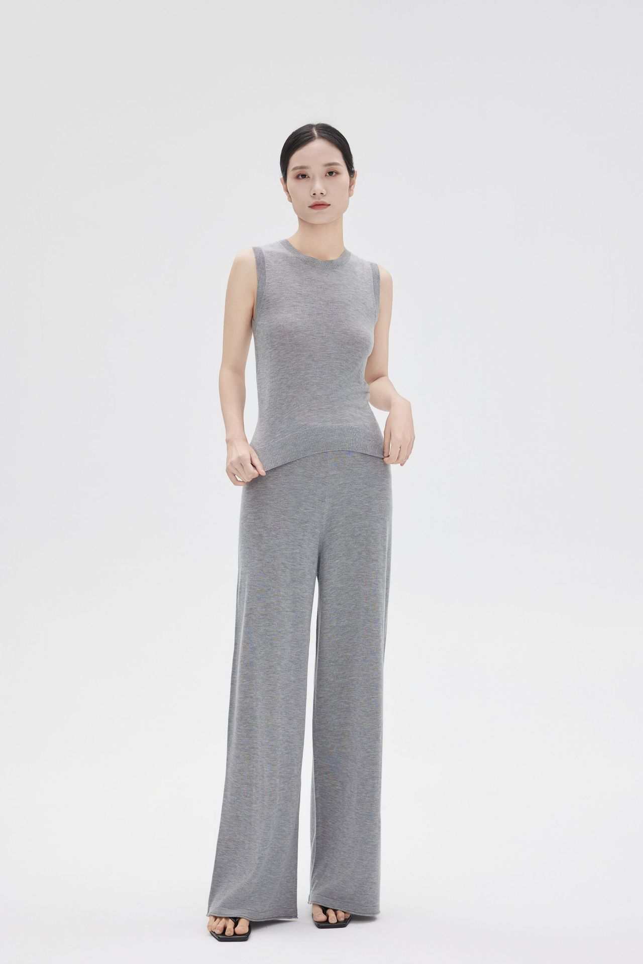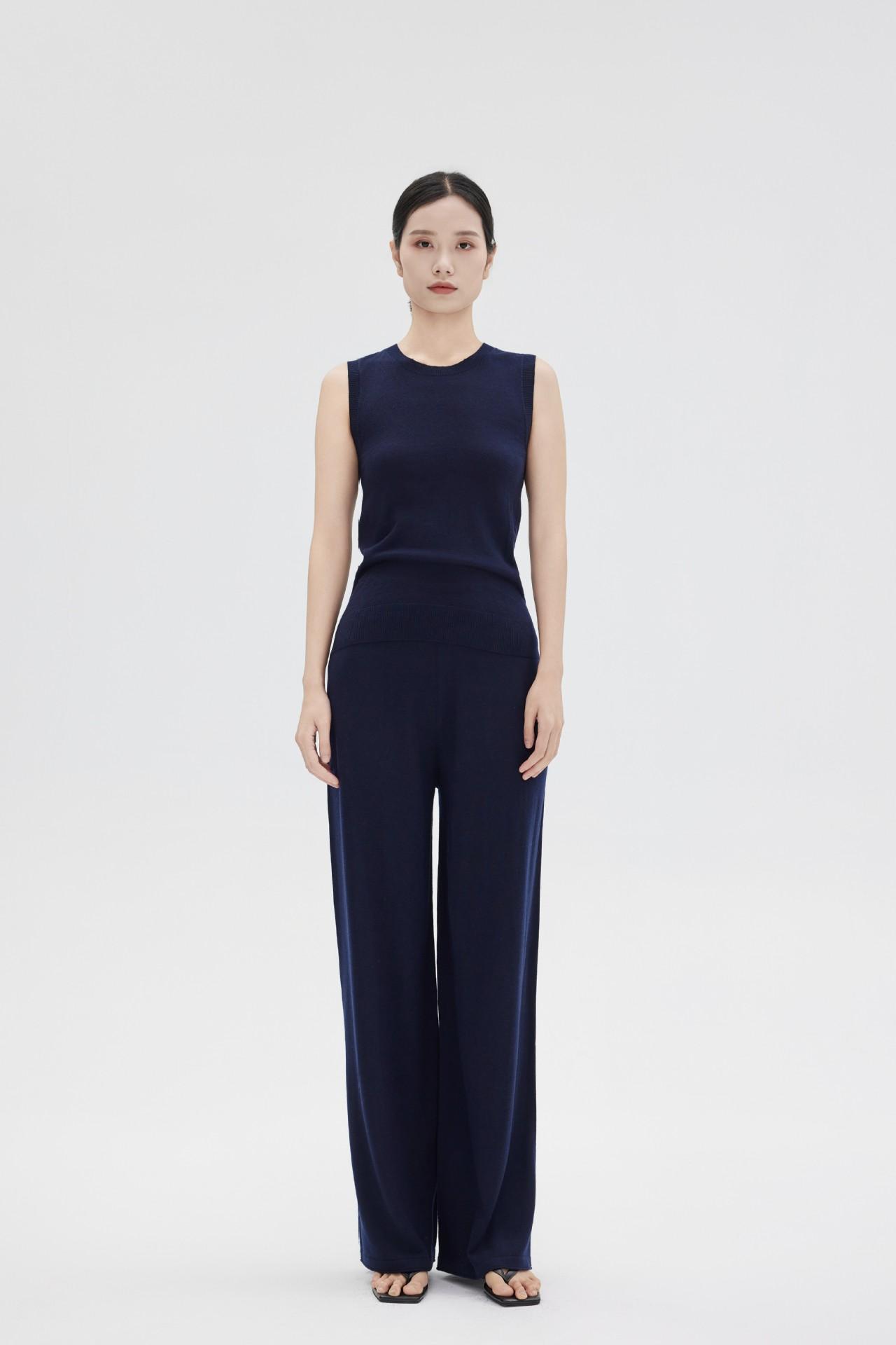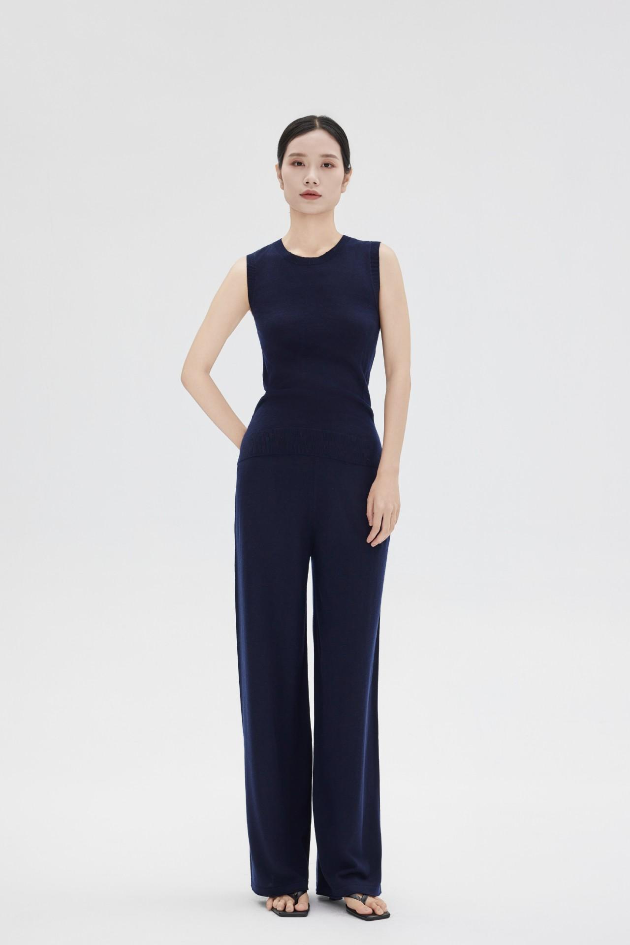 Top interior casual de punto sin mangas y cuello redondo de imitación de lana de alta calidad, chaleco de punto fino versátil para mujer