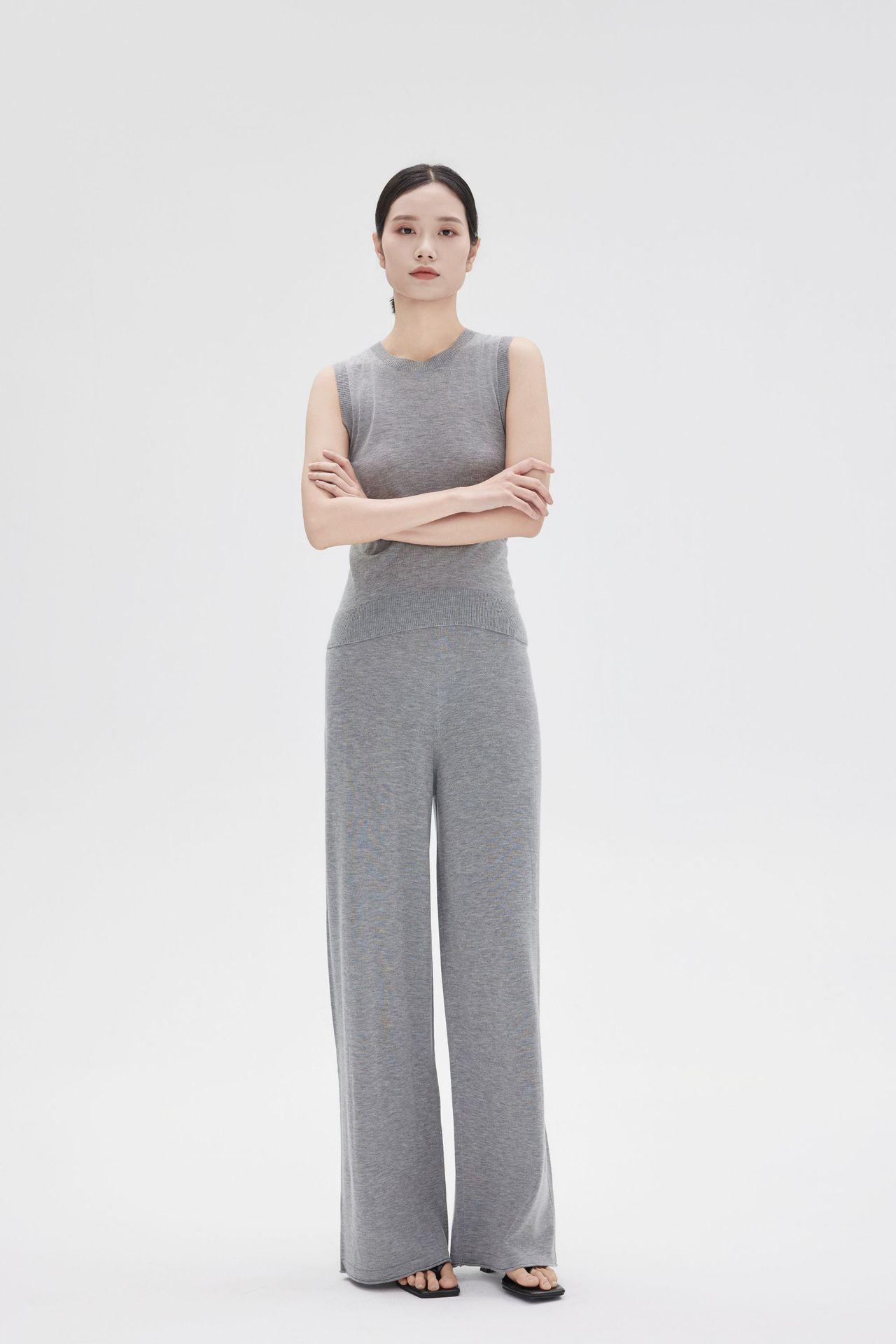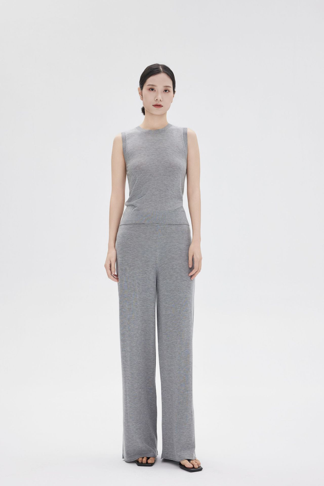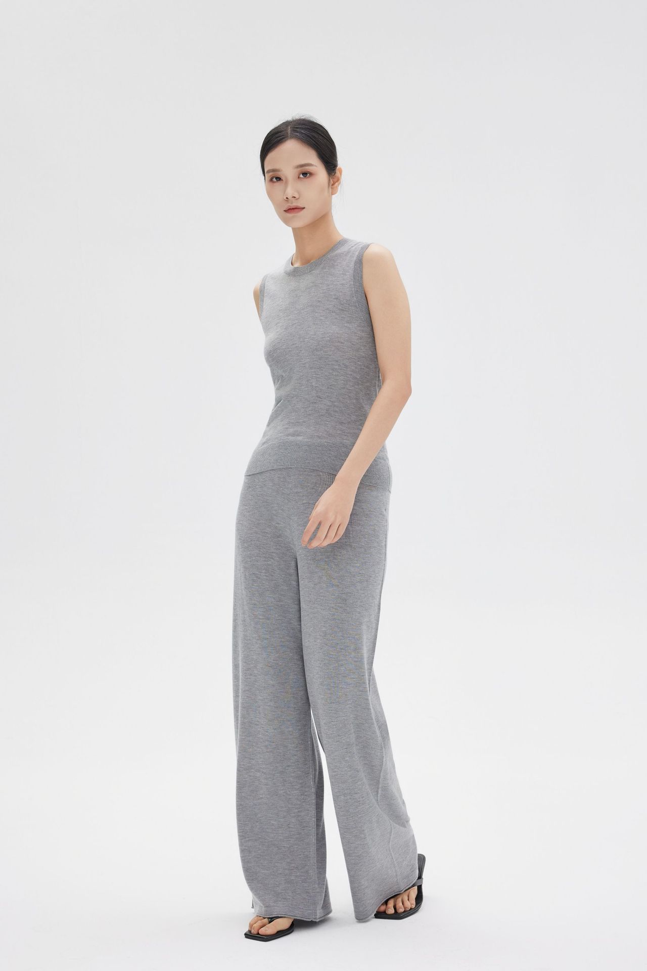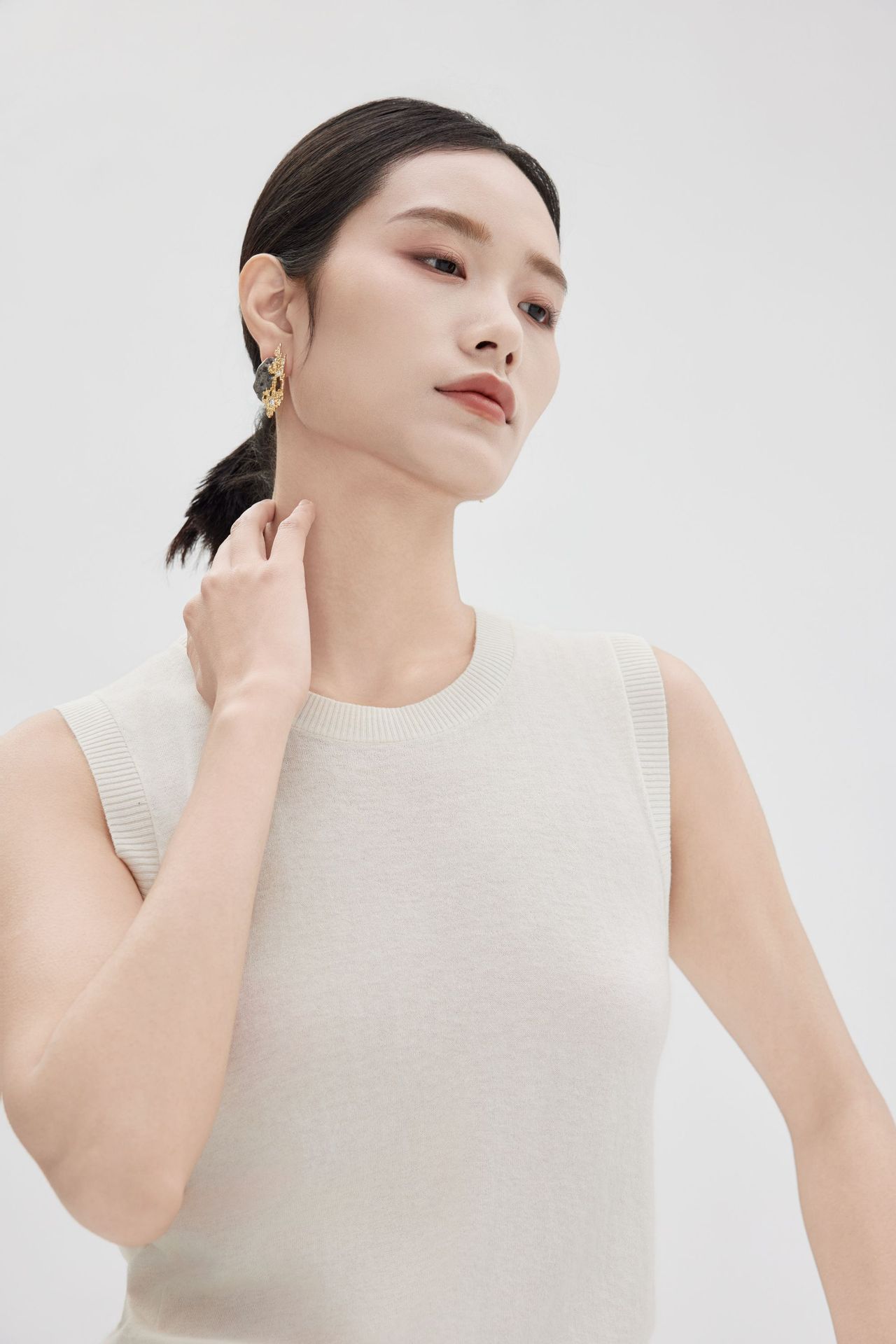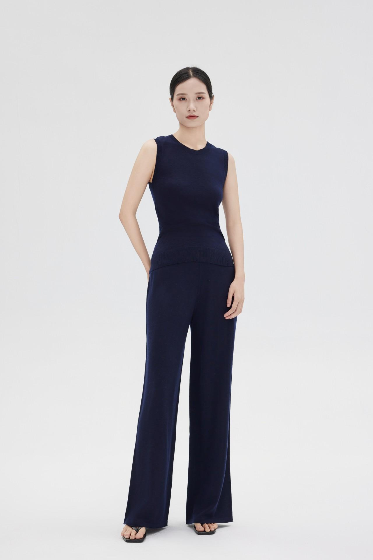 Top interior casual de punto sin mangas y cuello redondo de imitación de lana de alta calidad, chaleco de punto fino versátil para mujer