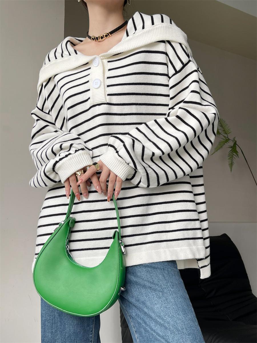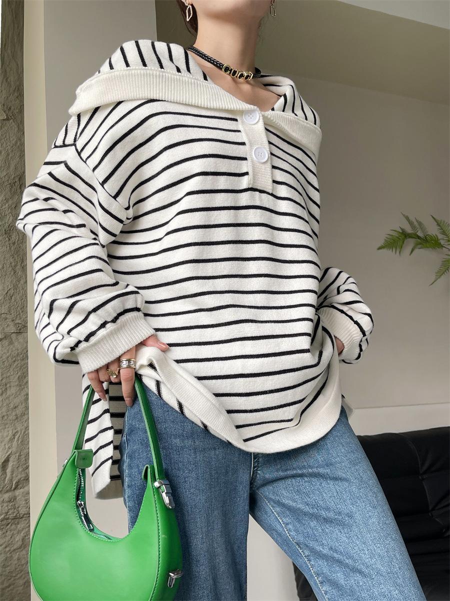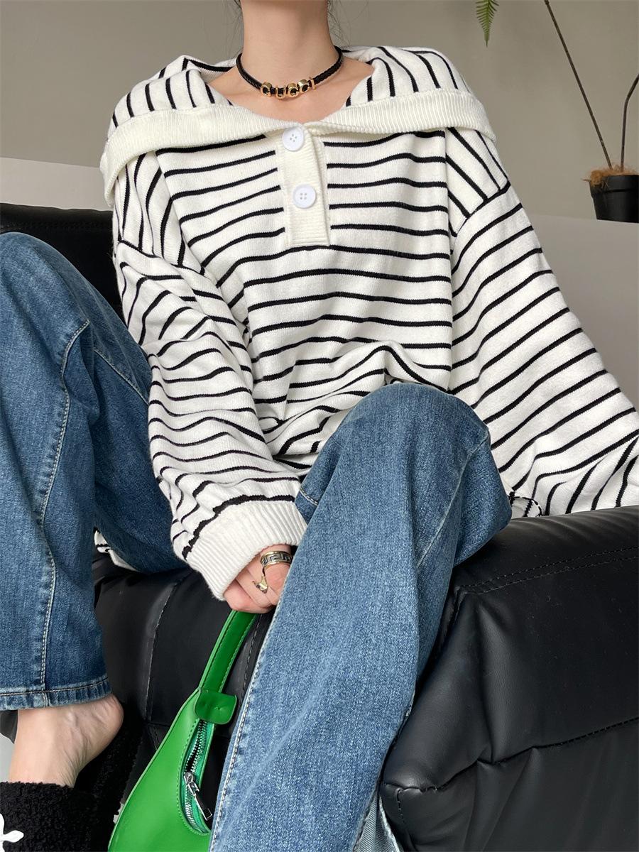Suéter Mengzi Xi de Solapa Grande para Mujer Ropa Interior Coreano Suelto Casual Jersey Tejido Top X343