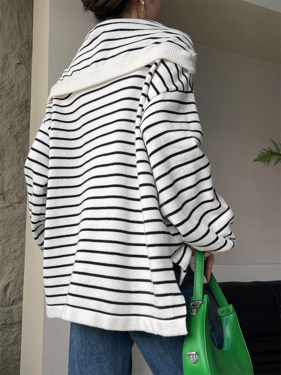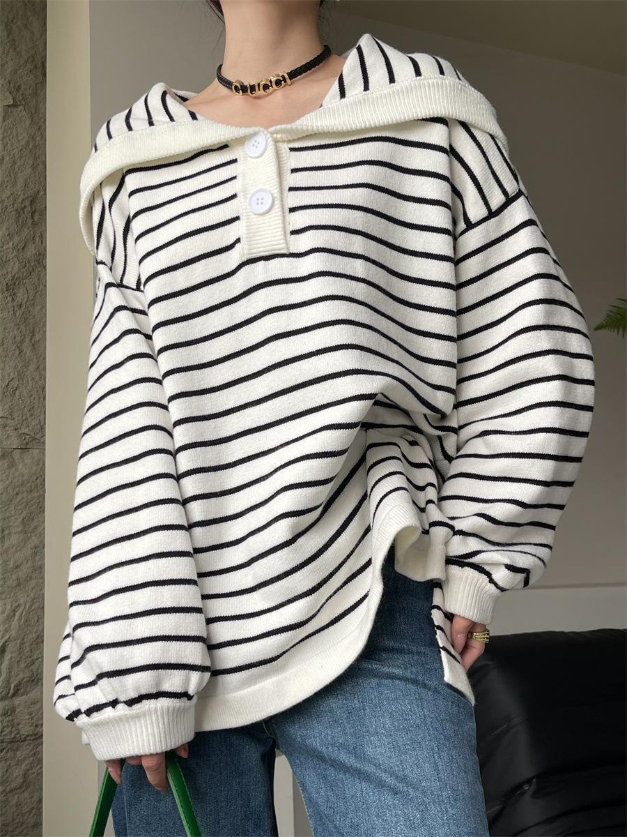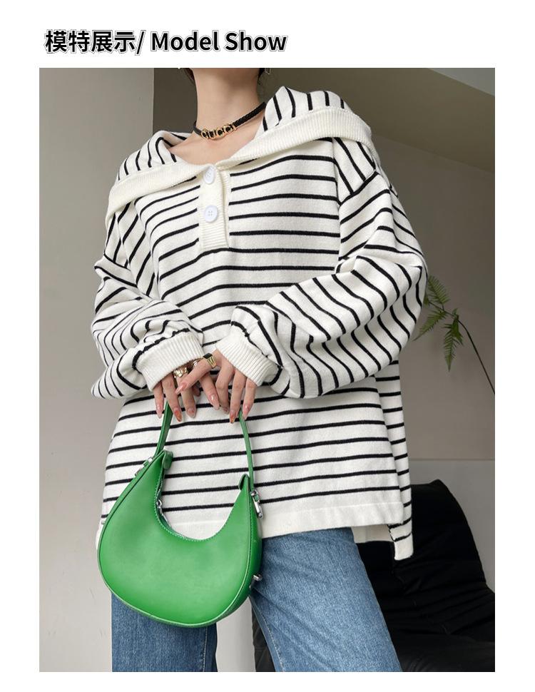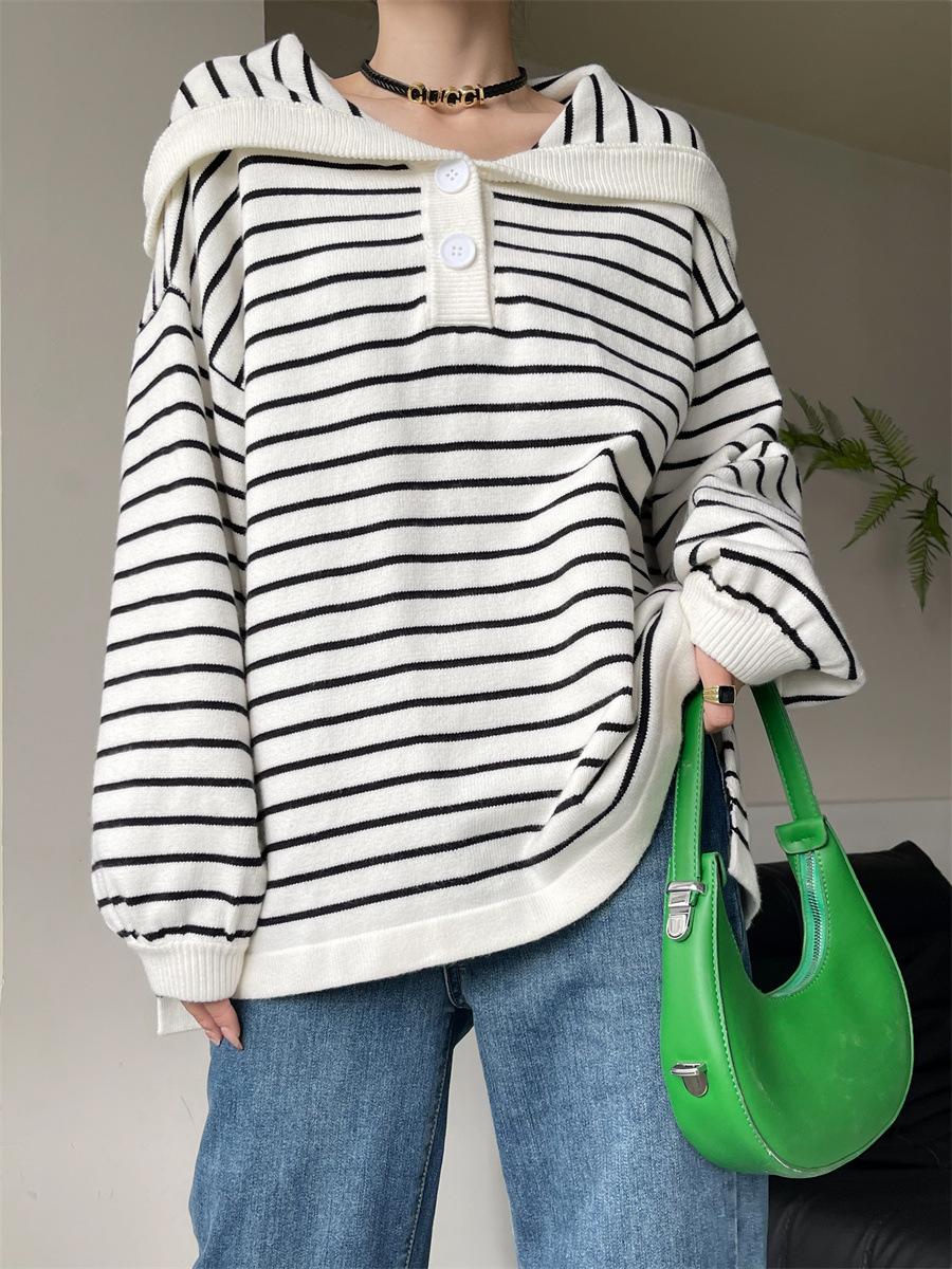 Suéter Mengzi Xi de Solapa Grande para Mujer Ropa Interior Coreano Suelto Casual Jersey Tejido Top X343