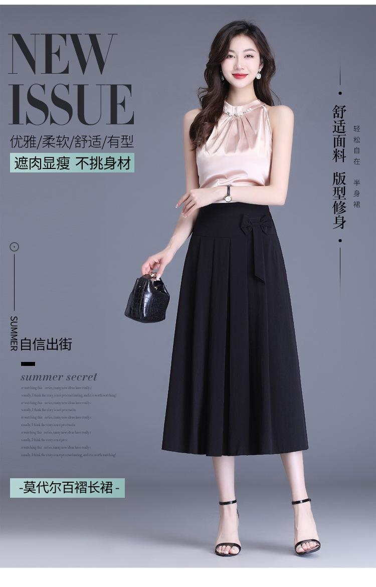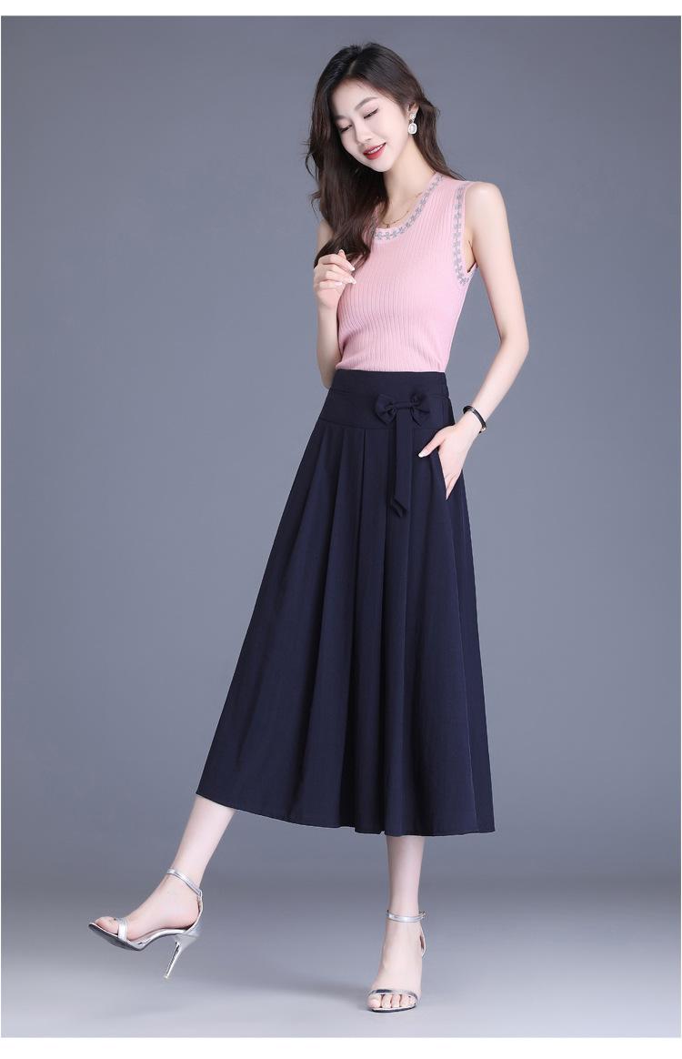 Falda Midi Acampanada Casual de Modal para Mujer Verano 2023 Nuevo Estilo Coreano Cintura Alta Slim