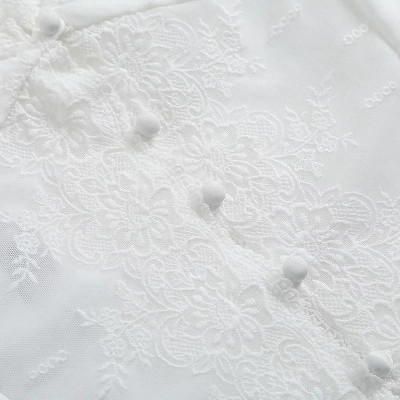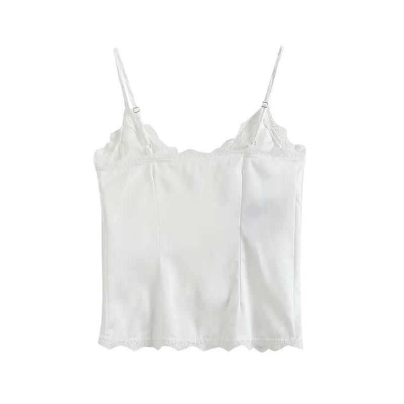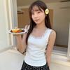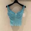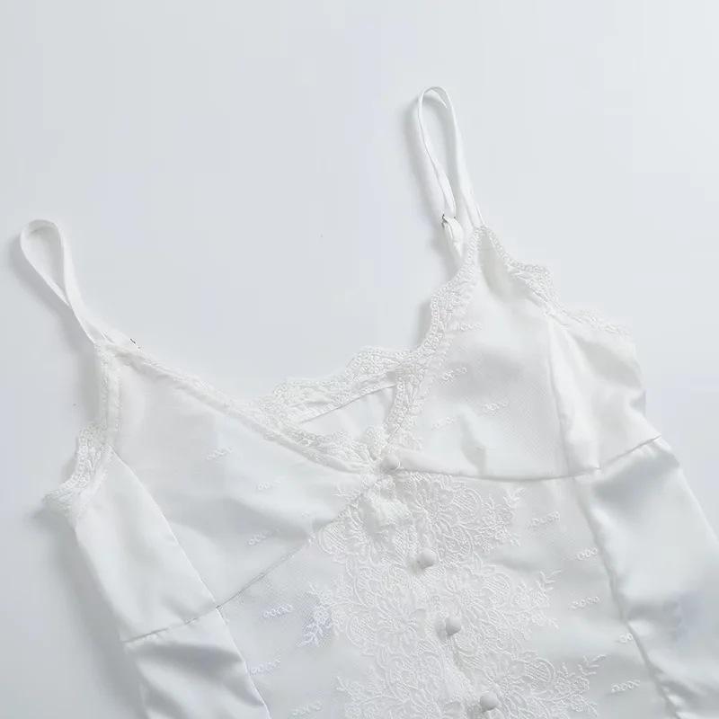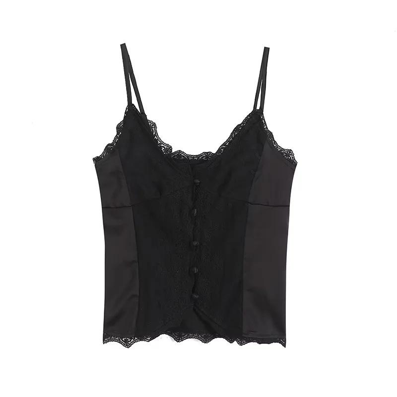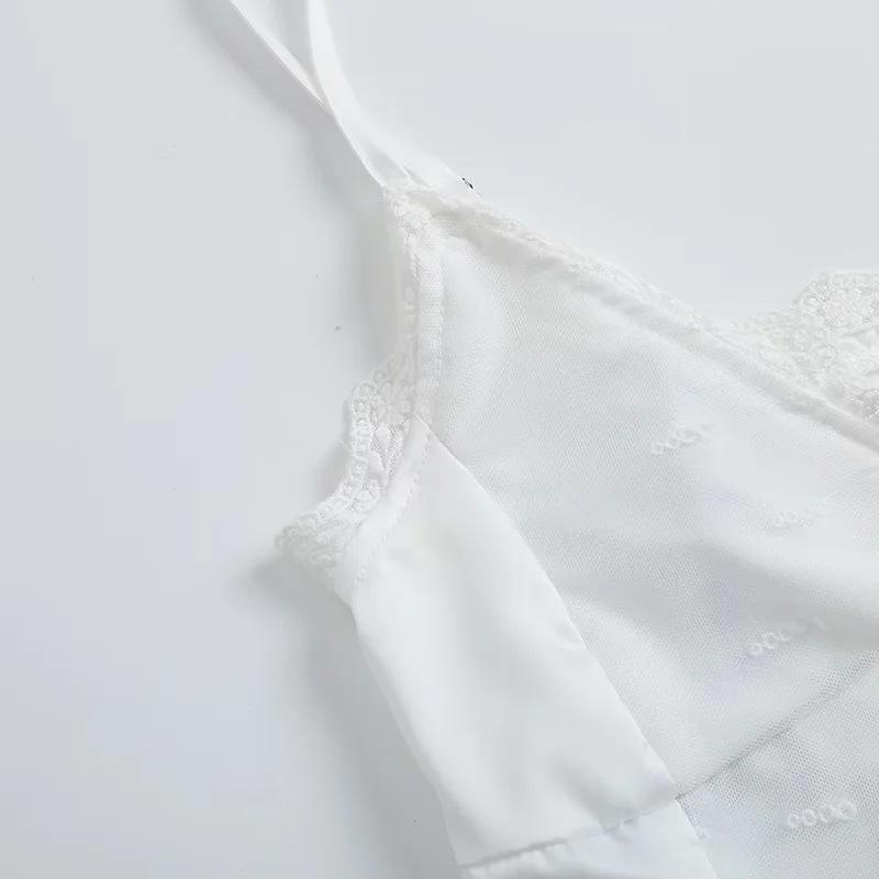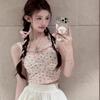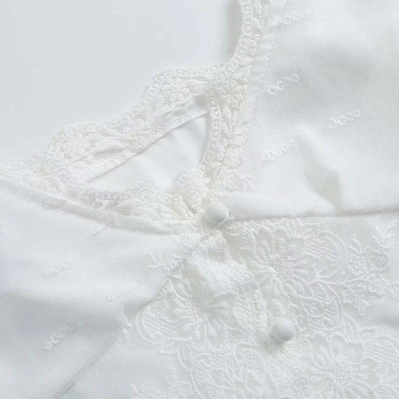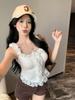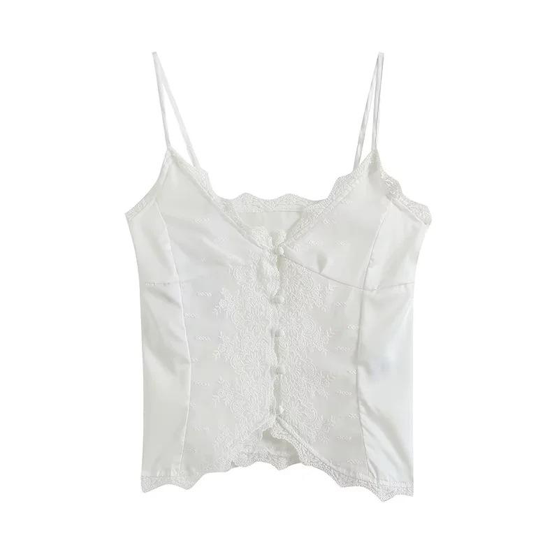 Nuevo estilo de verano, estilo puro deseo, encaje bordado, cuello en V, chica sexy, pequeño cabestrillo, dulce, picante, ajustado, chaleco, cárdigan sexy