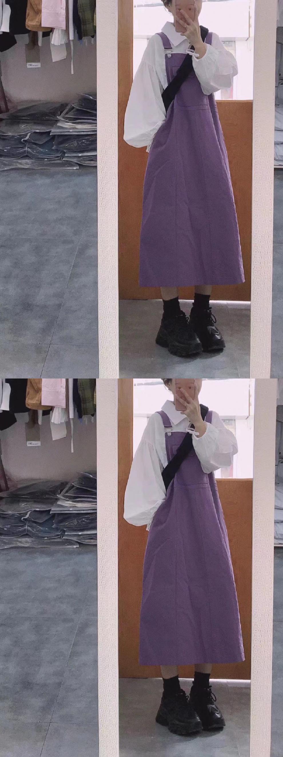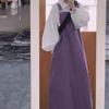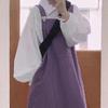 Conjunto/pieza única estilo japonés para estudiante, camisa holgada blanca de manga farol + vestido de tirantes de nicho, conjunto de dos piezas moderno