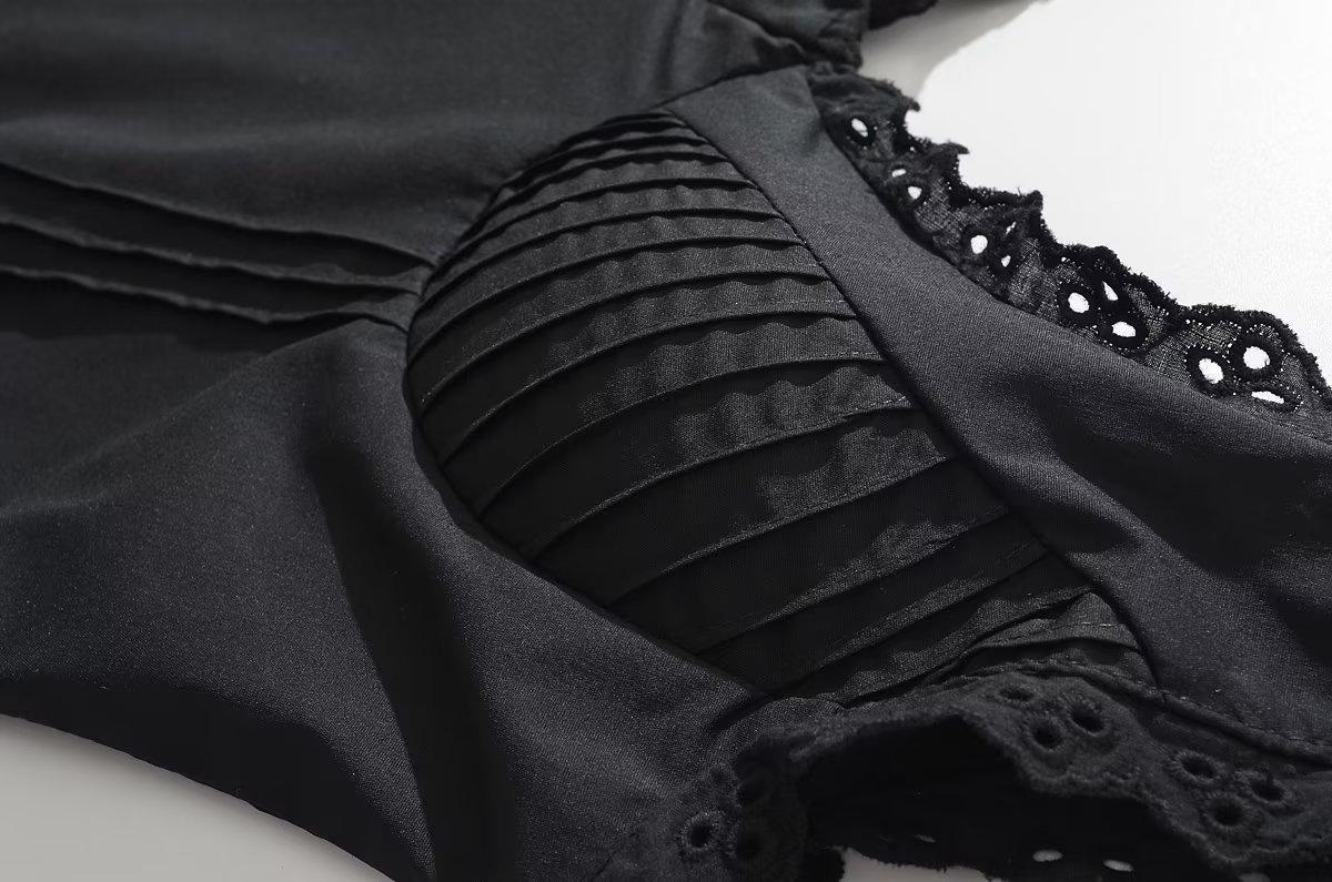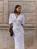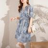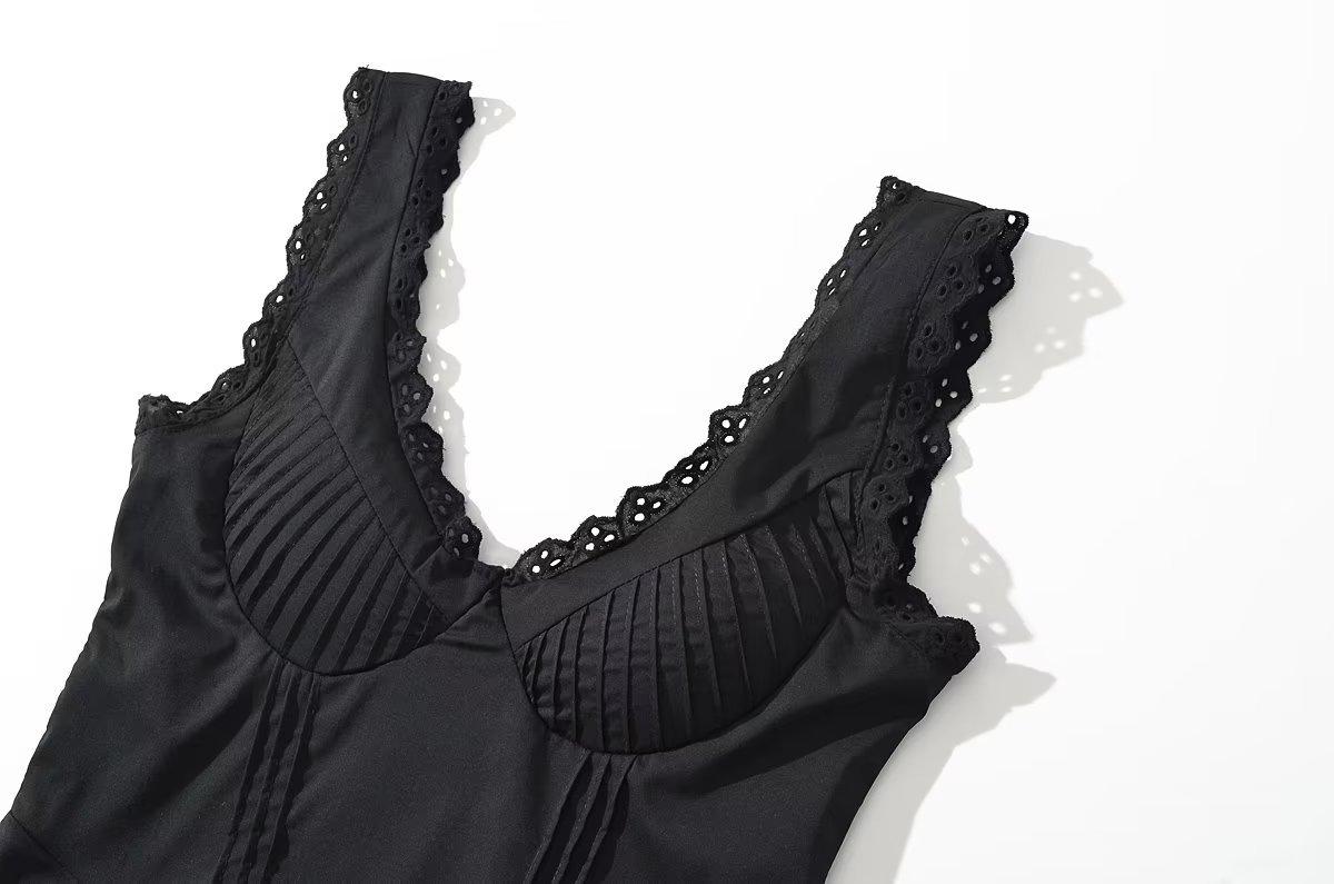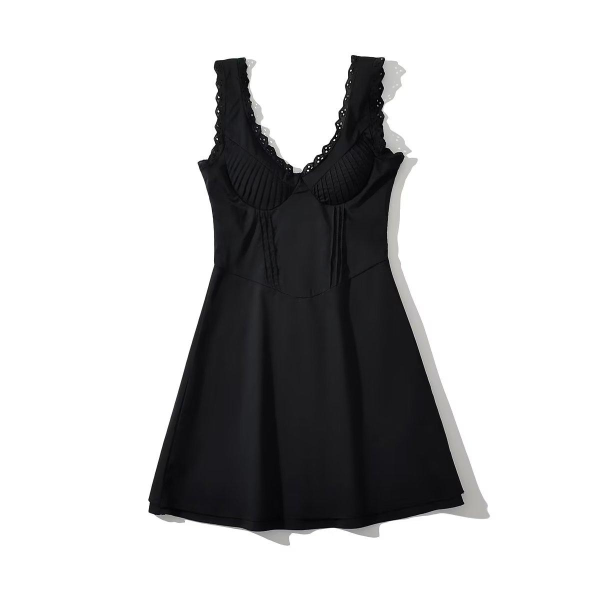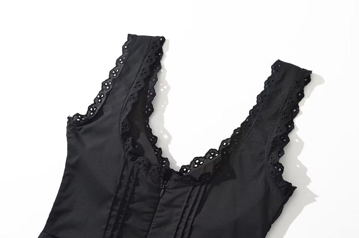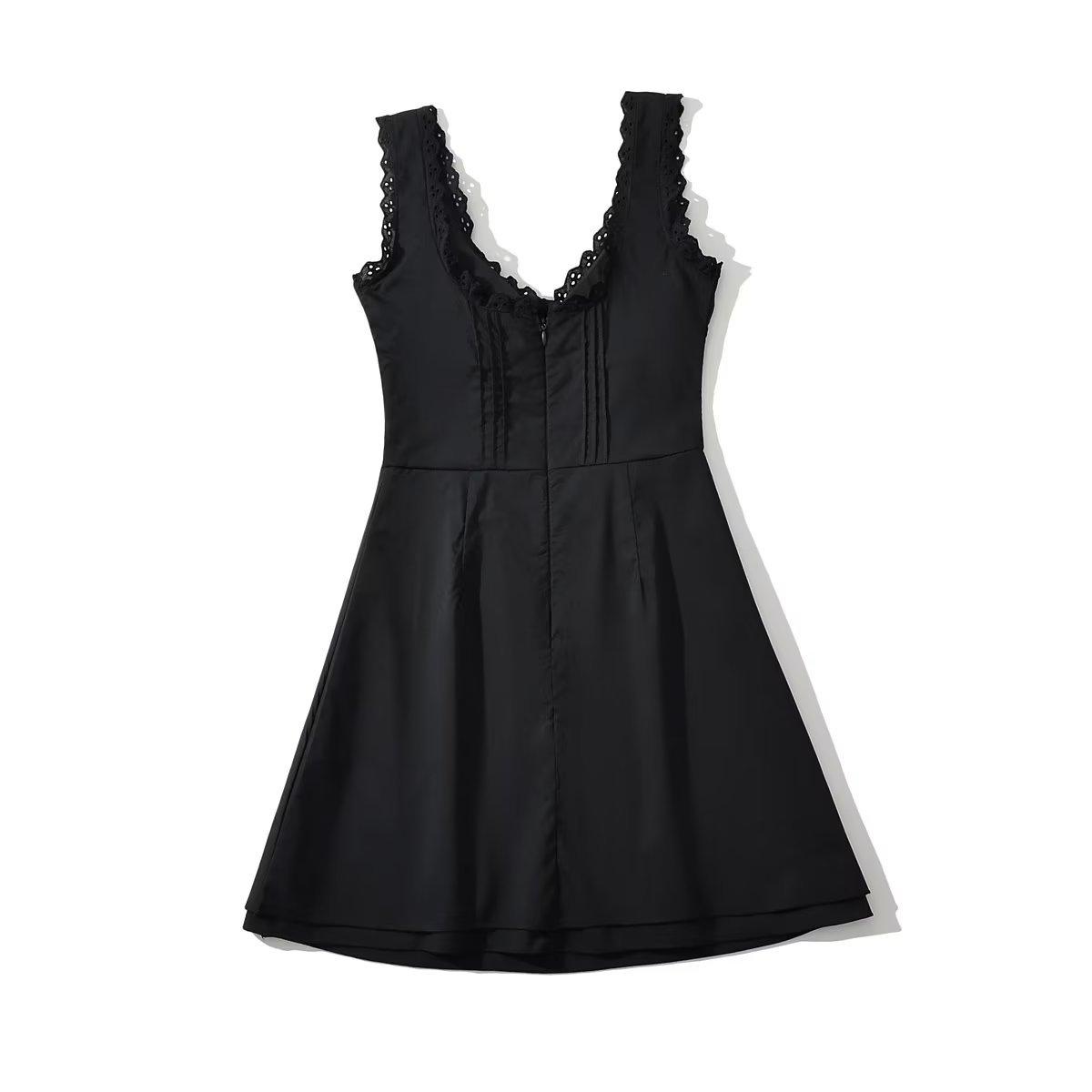 Vestido de verano nuevo con escote en V y costuras de encaje para mujer europea y americana S17111