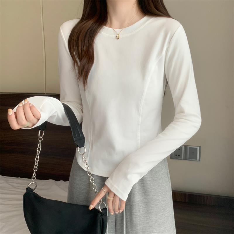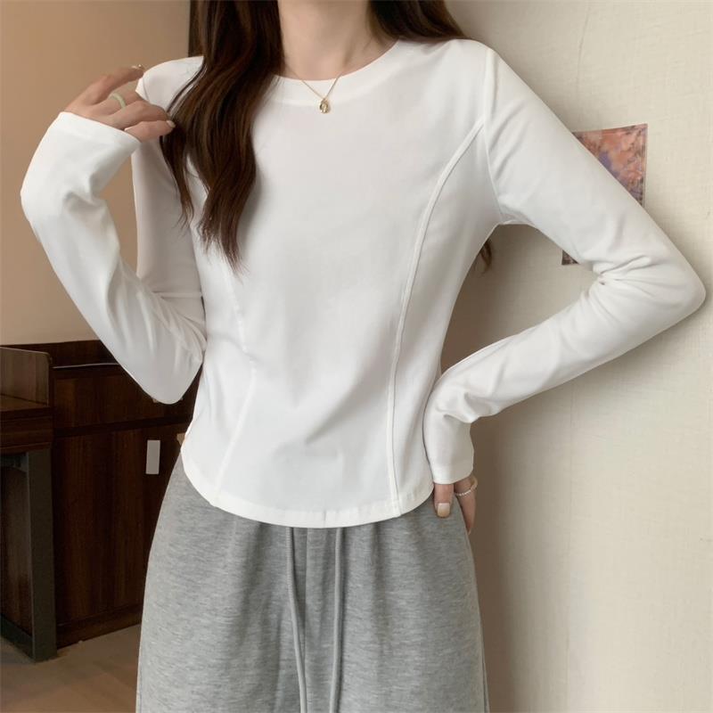 Camiseta básica de otoño 2022 para mujer, corte entallado, diseño Spice Girl, camiseta de manga larga, top blanco de otoño