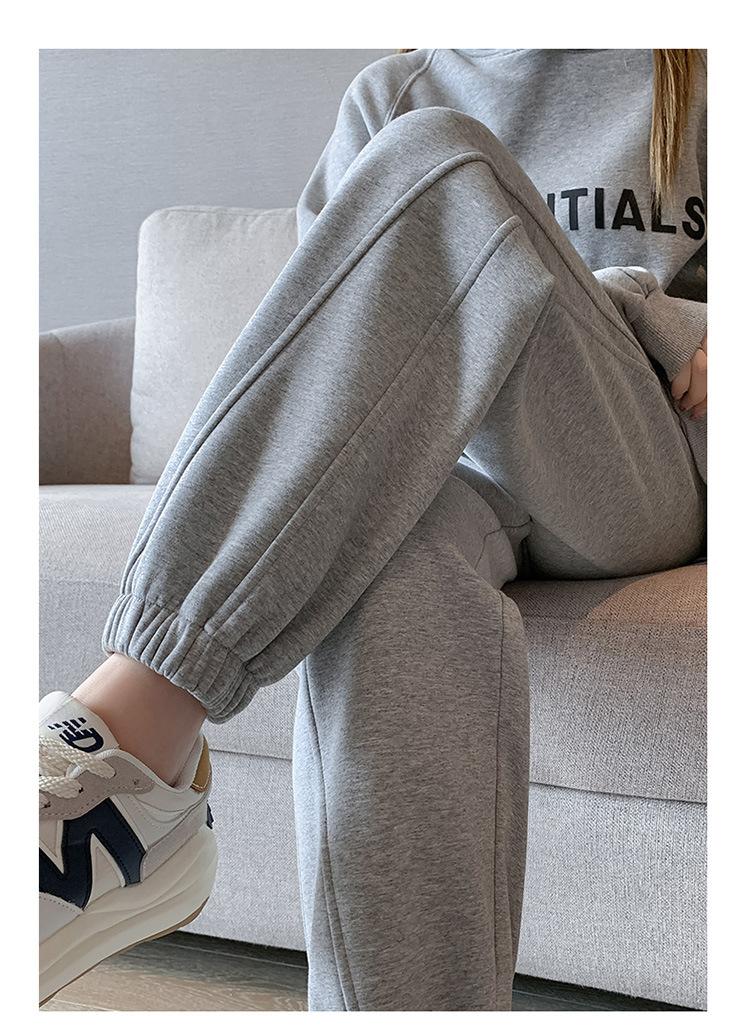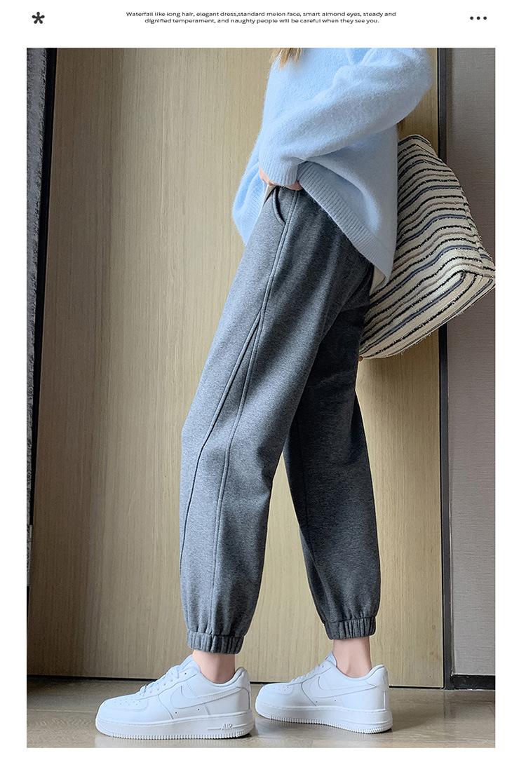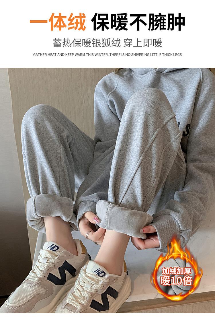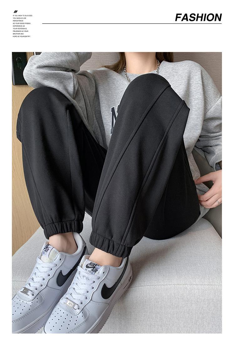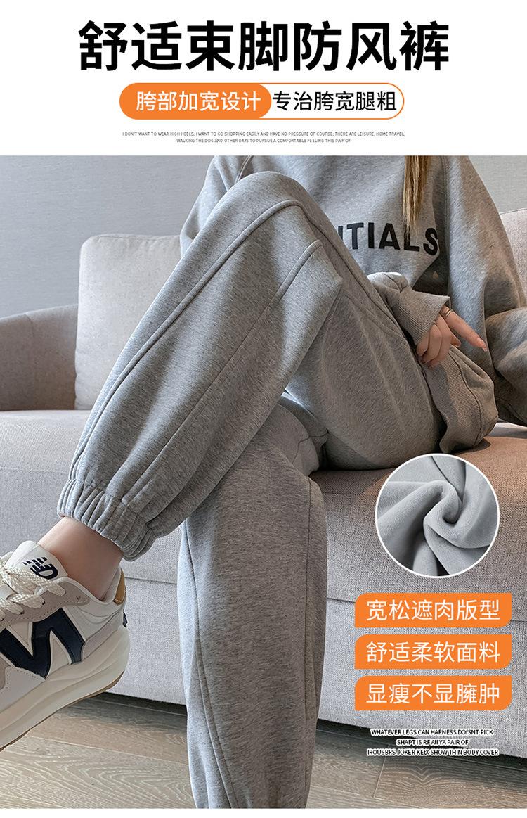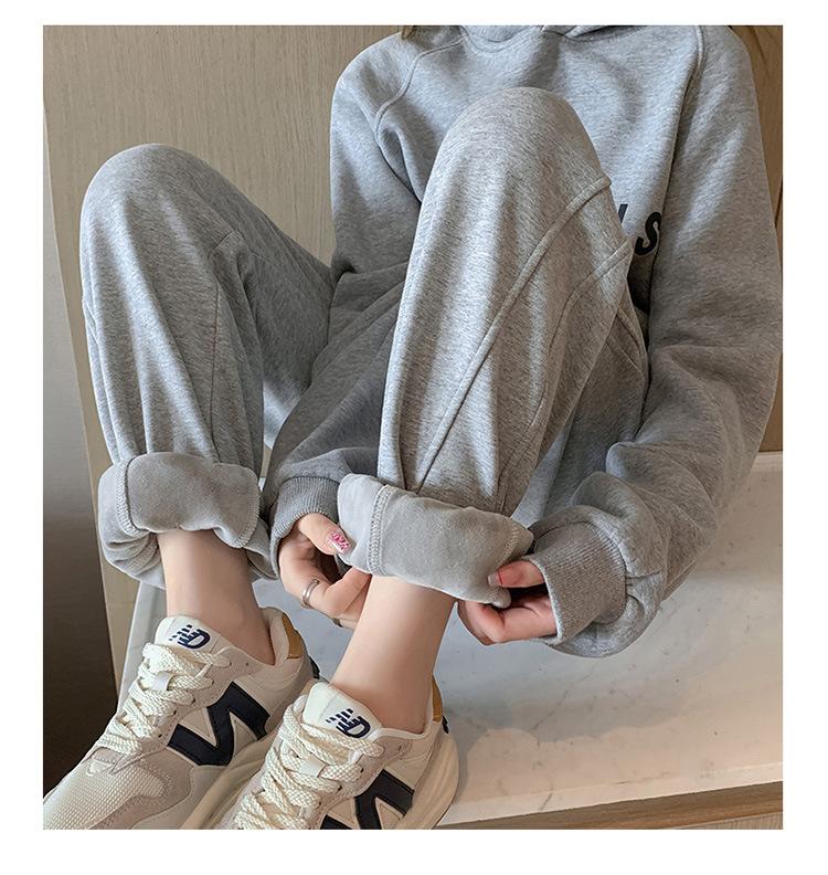 Pantalones deportivos grises para mujer, nuevos pantalones casuales adelgazantes con forro polar, gruesos, sueltos y atados al tobillo, populares para otoño e invierno de 2024