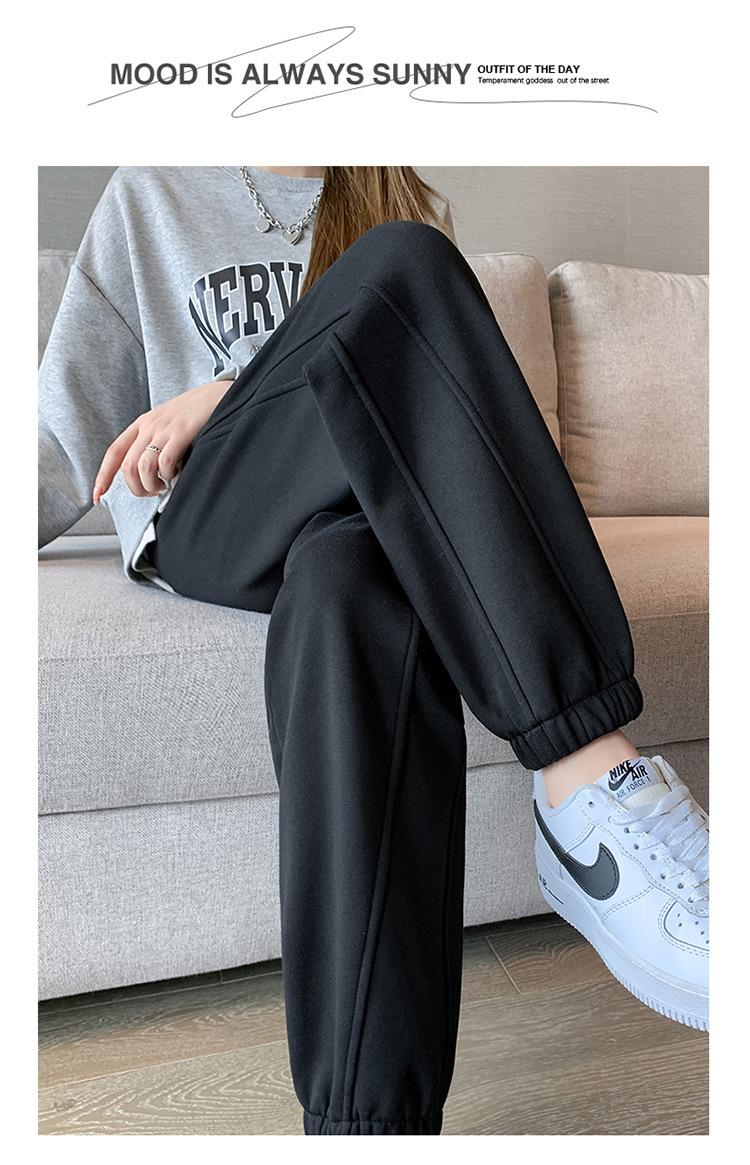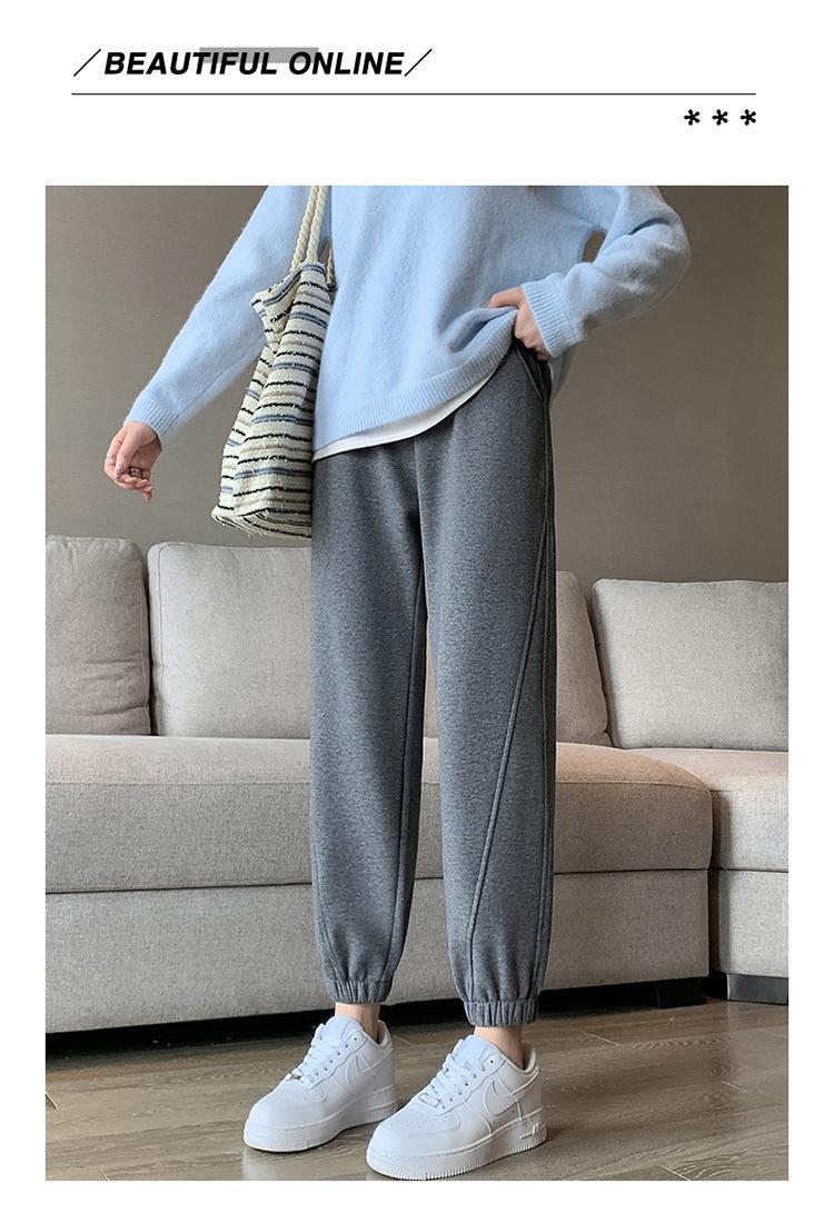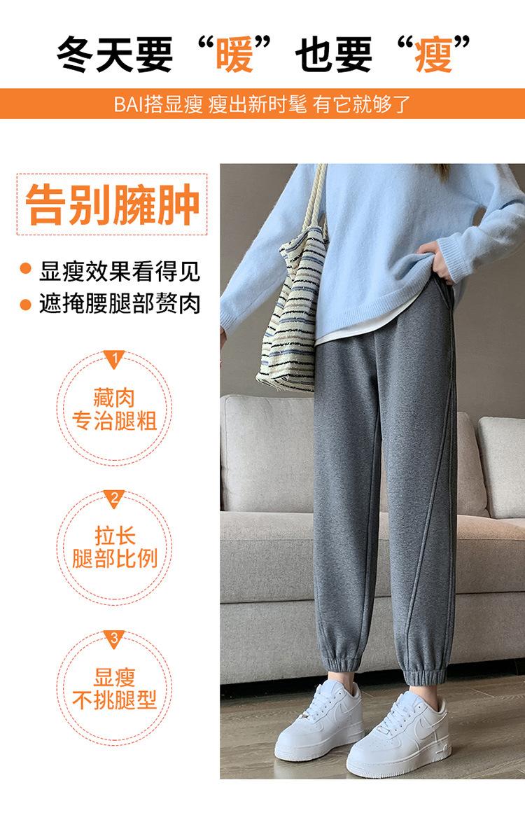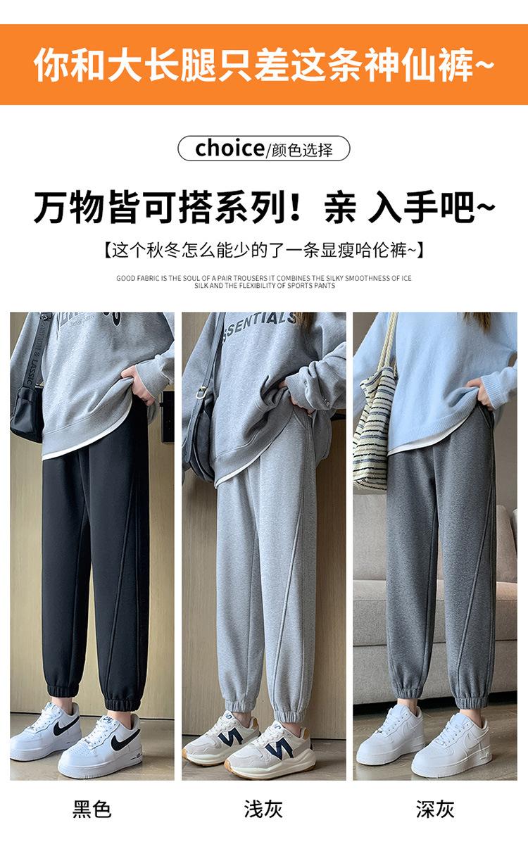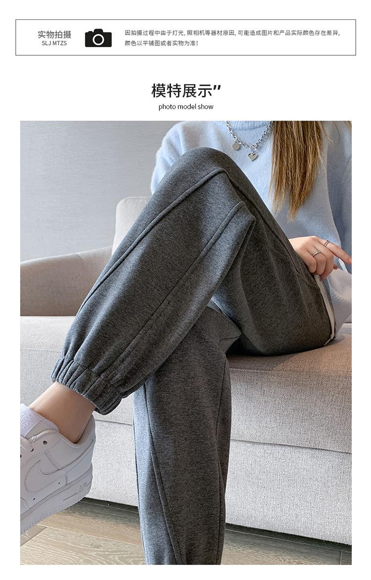 Pantalones deportivos grises para mujer, nuevos pantalones casuales adelgazantes con forro polar, gruesos, sueltos y atados al tobillo, populares para otoño e invierno de 2024