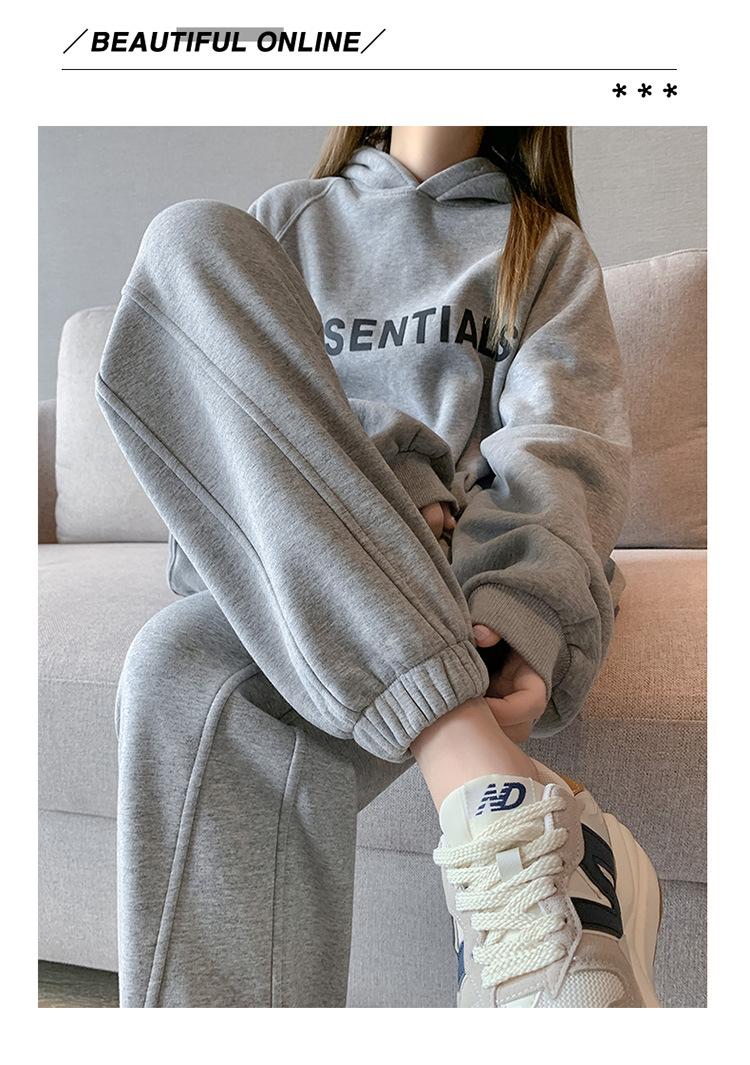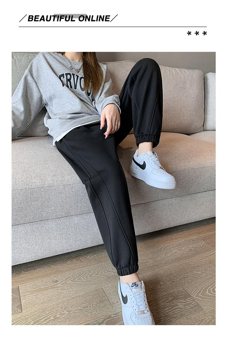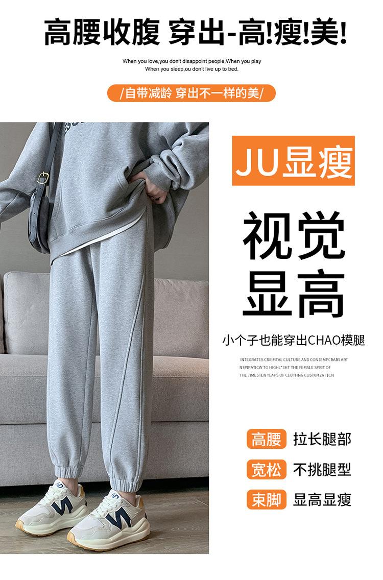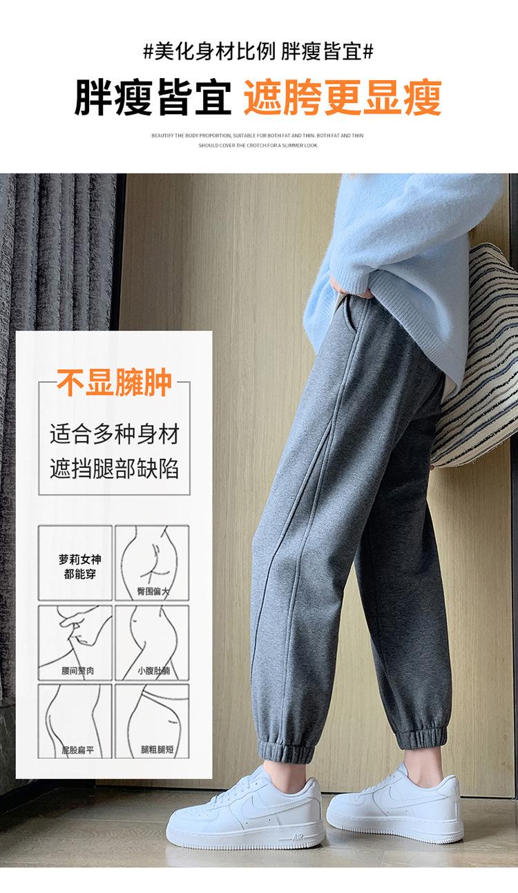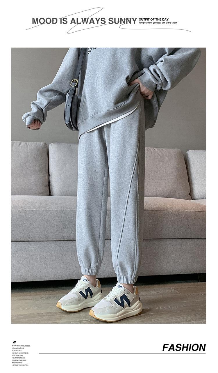 Pantalones deportivos grises para mujer, nuevos pantalones casuales adelgazantes con forro polar, gruesos, sueltos y atados al tobillo, populares para otoño e invierno de 2024