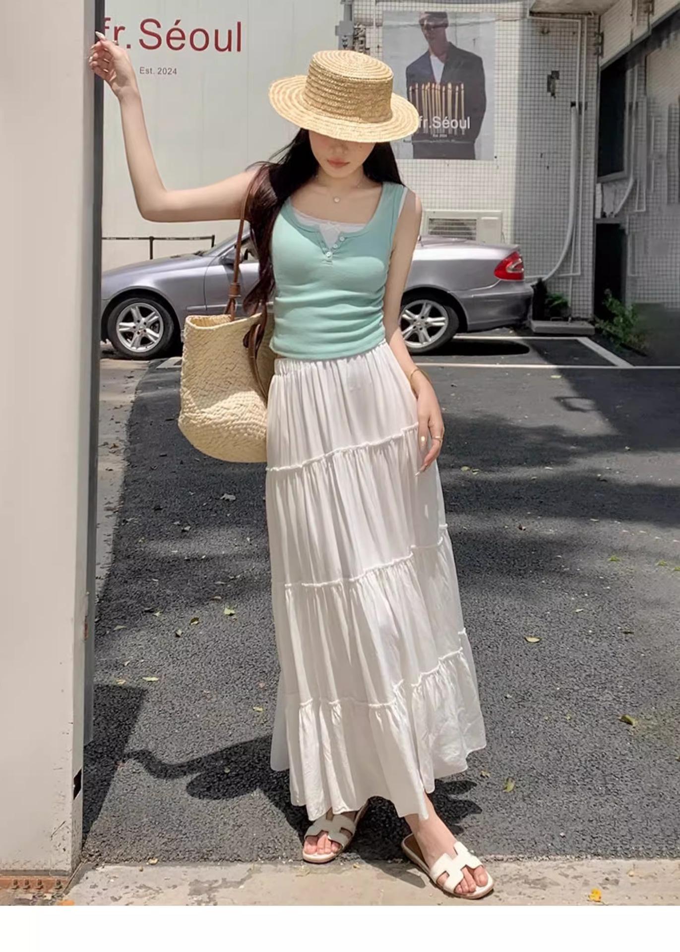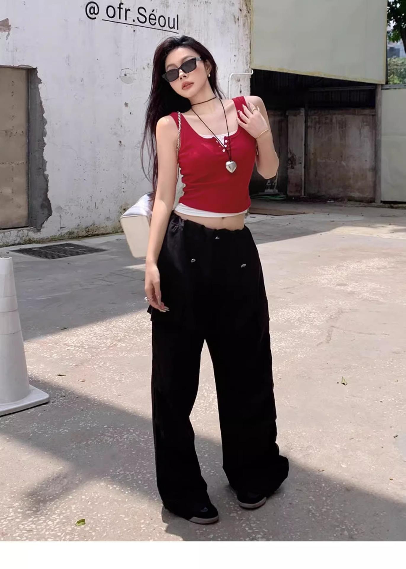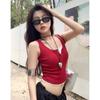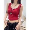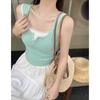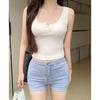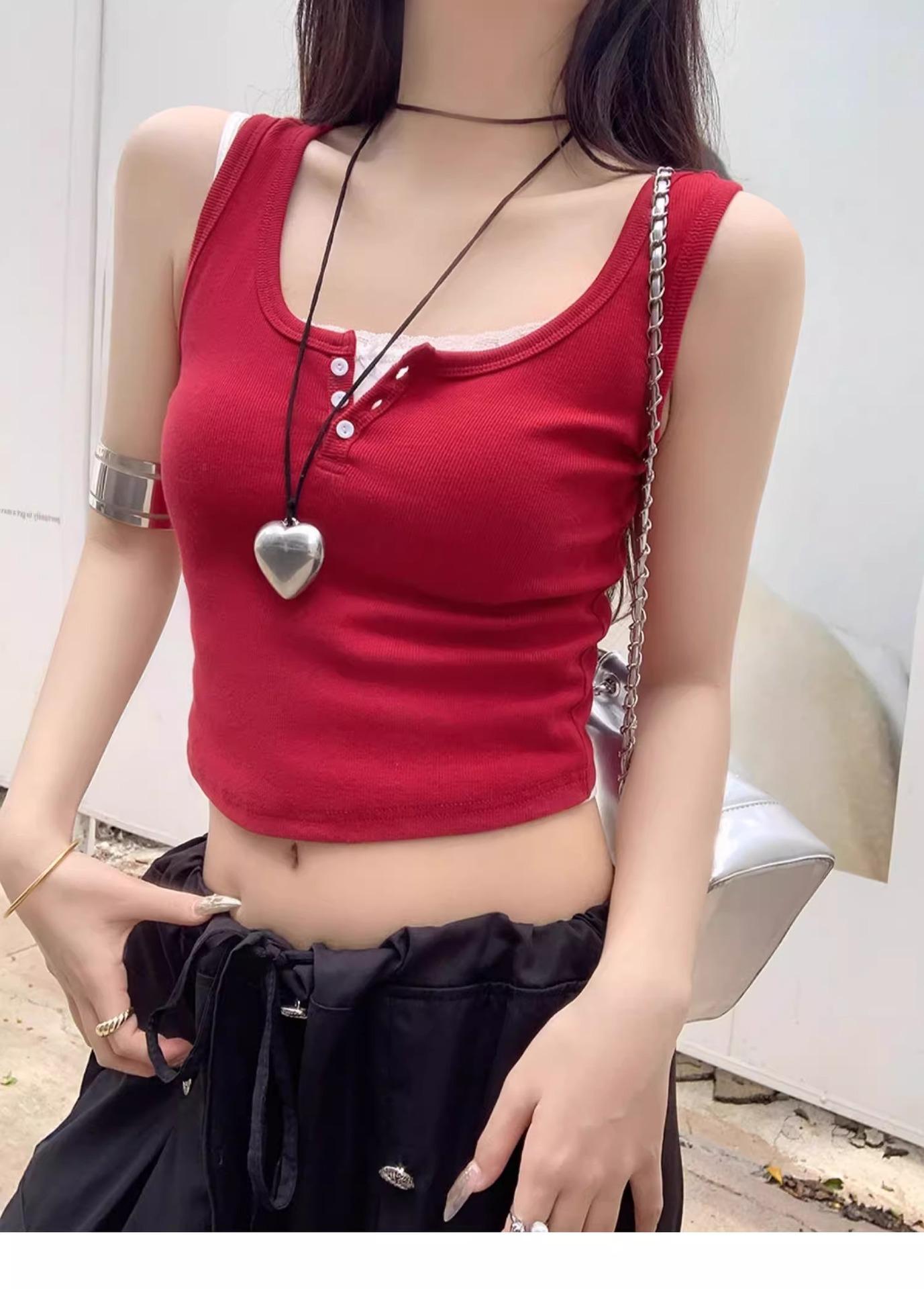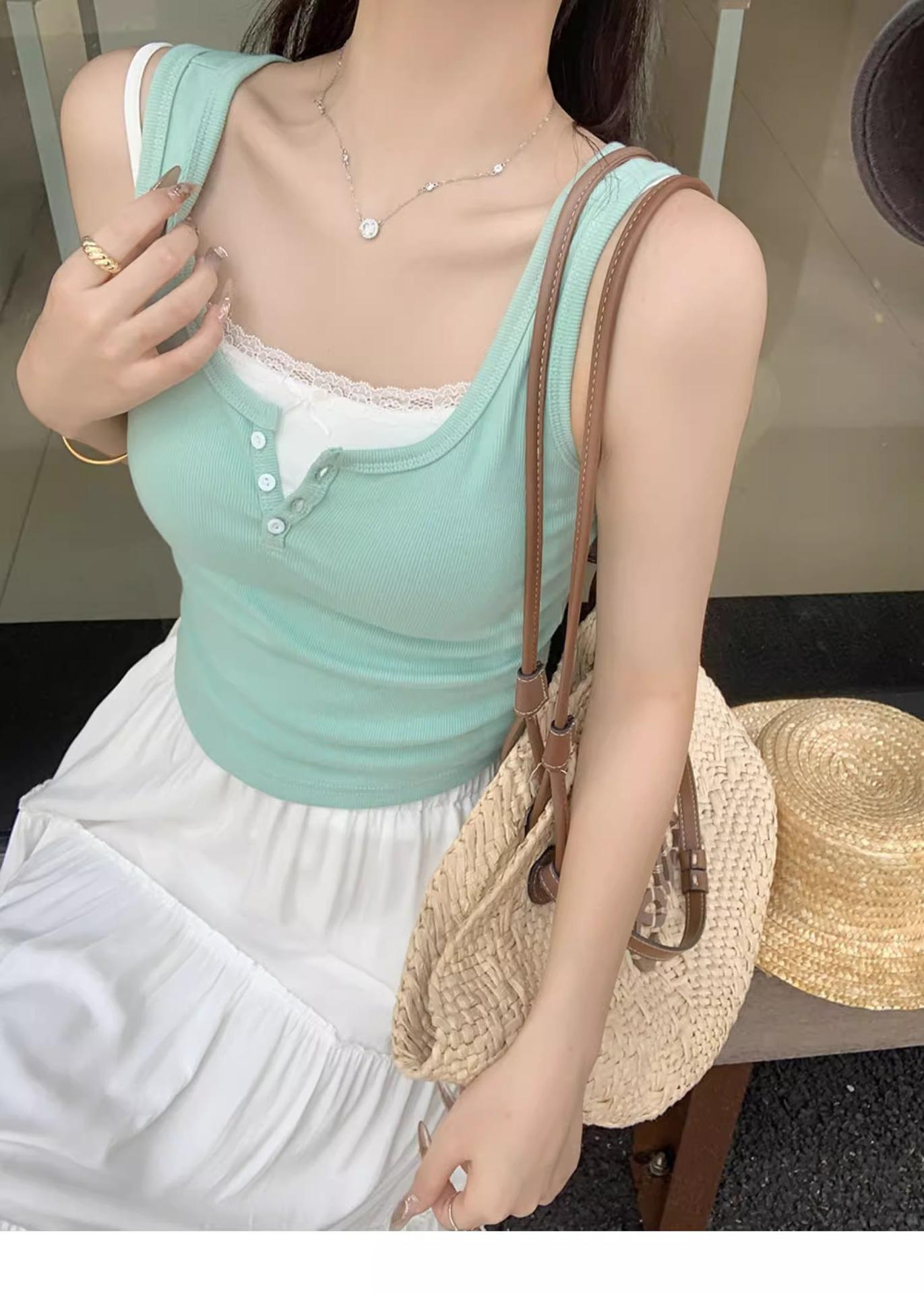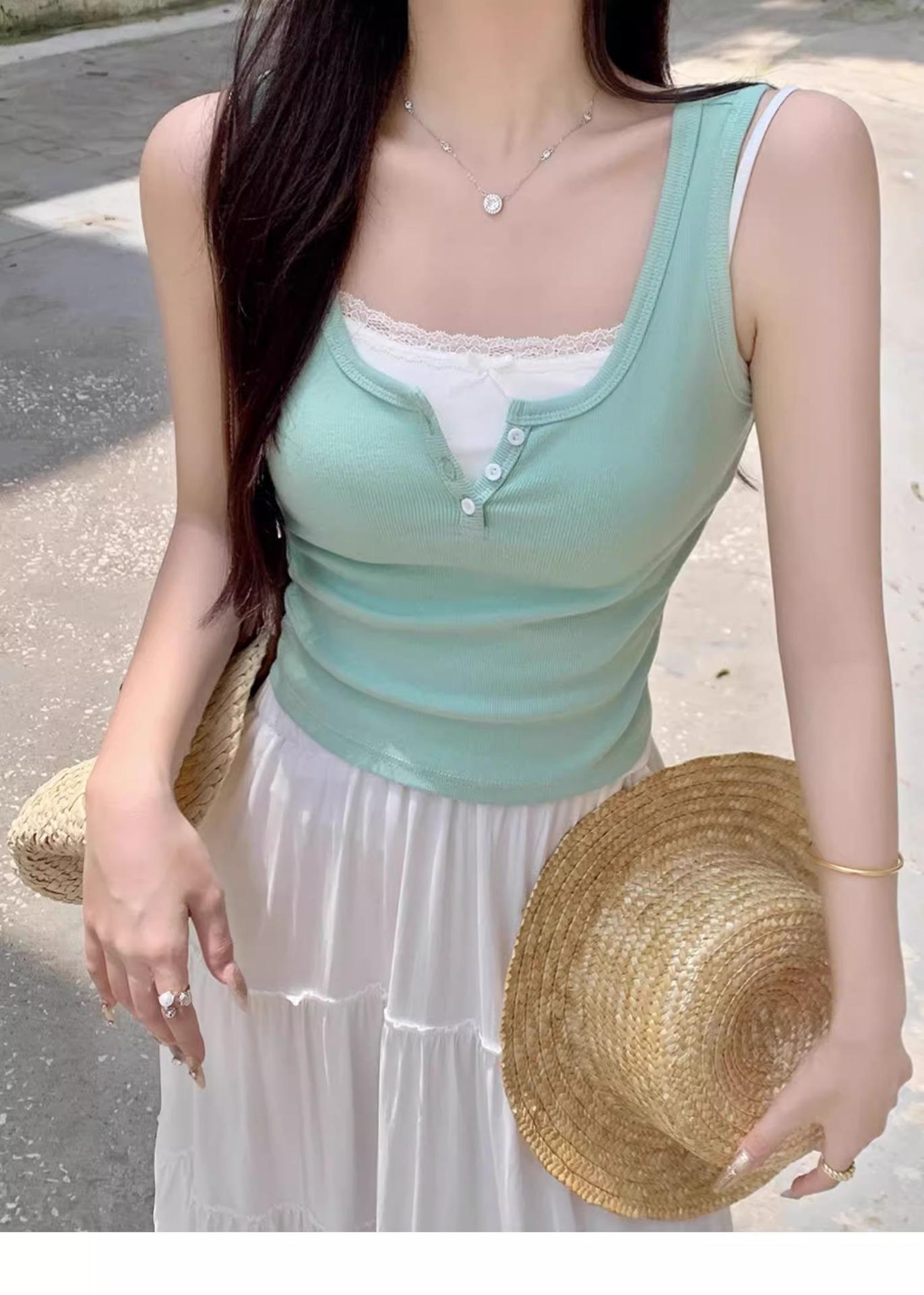 Top sin mangas de color puro estilo coreano con botones de encaje, chica dulce y sexy, estilo corto blanco, clavículas expuestas, chaleco de verano para mujer 2025
