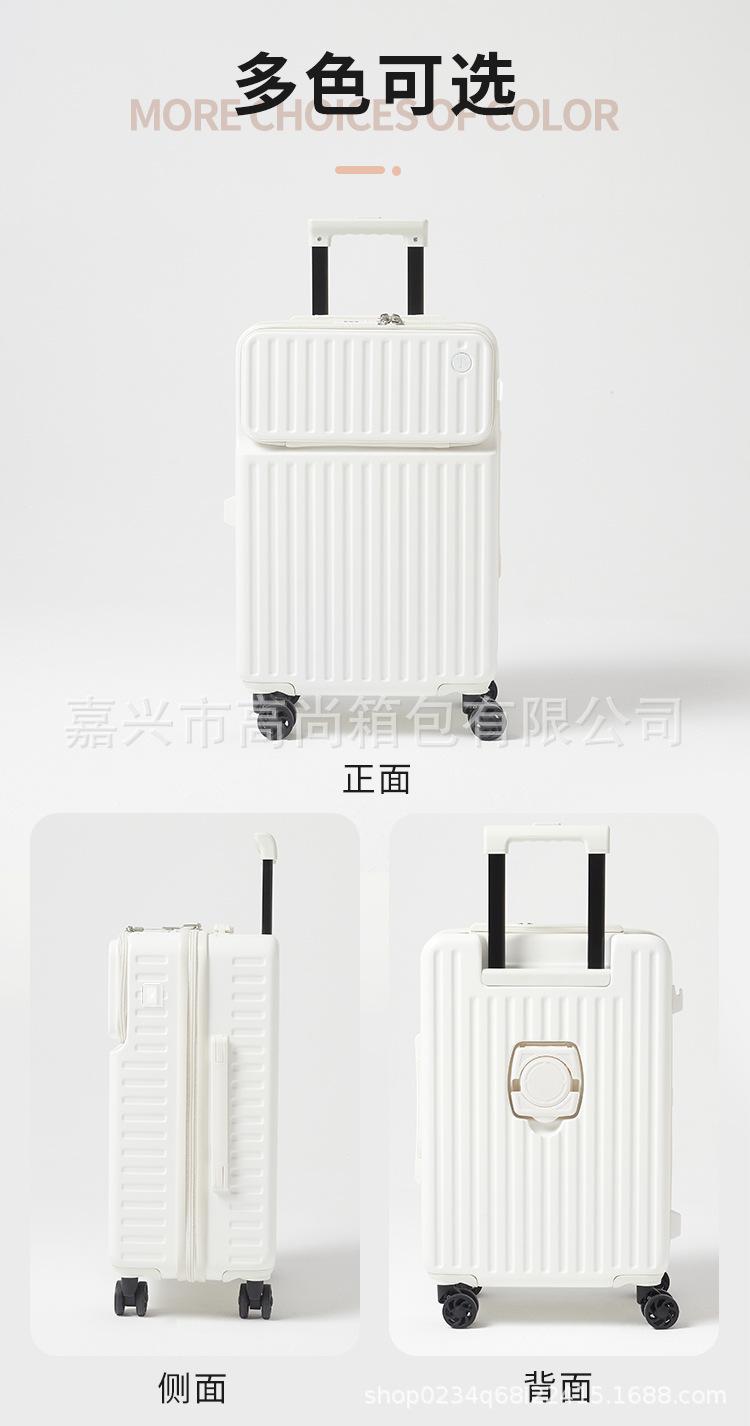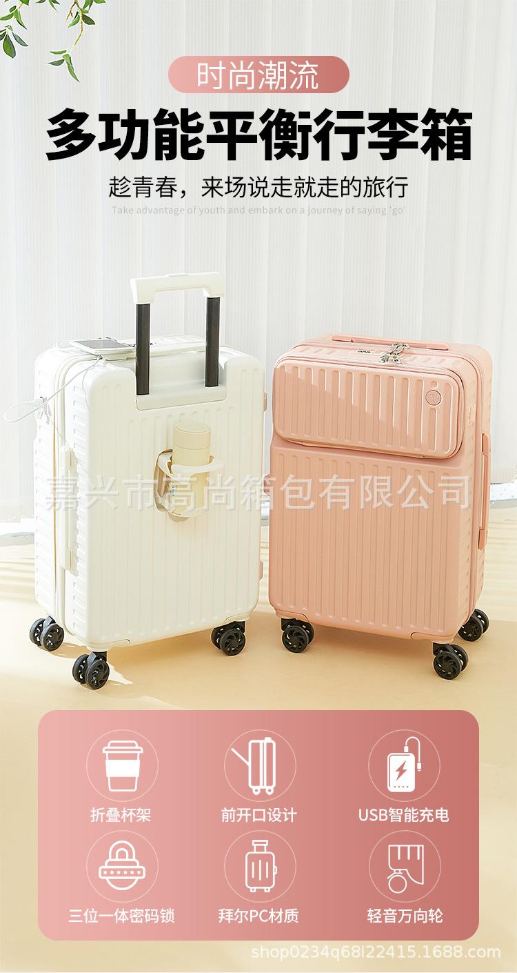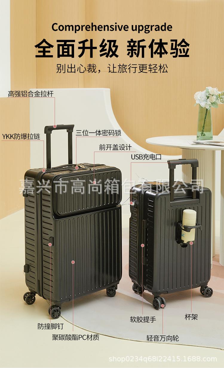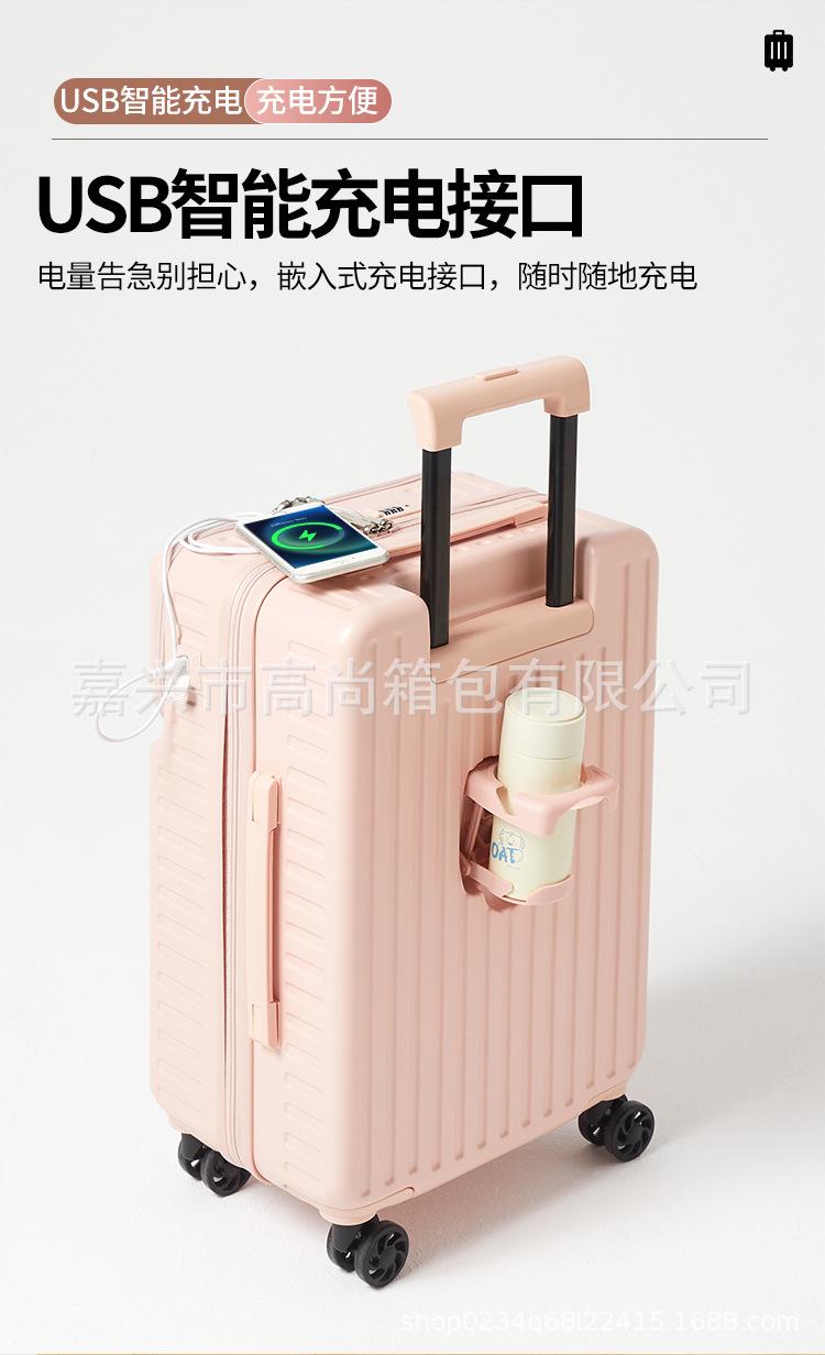 Maleta de Apertura Frontal para Mujer de 20 Pulgadas Recargable Maleta con Ruedas Universales Trolley con Portavasos Maleta de Cuero para Estudiantes 24