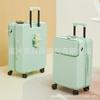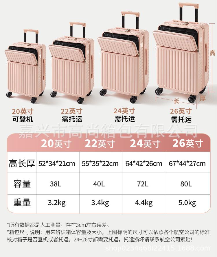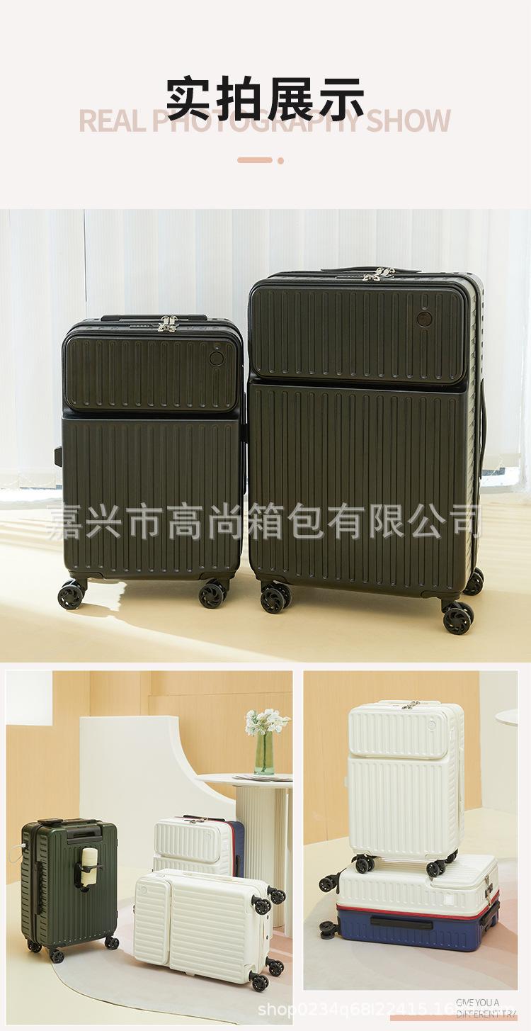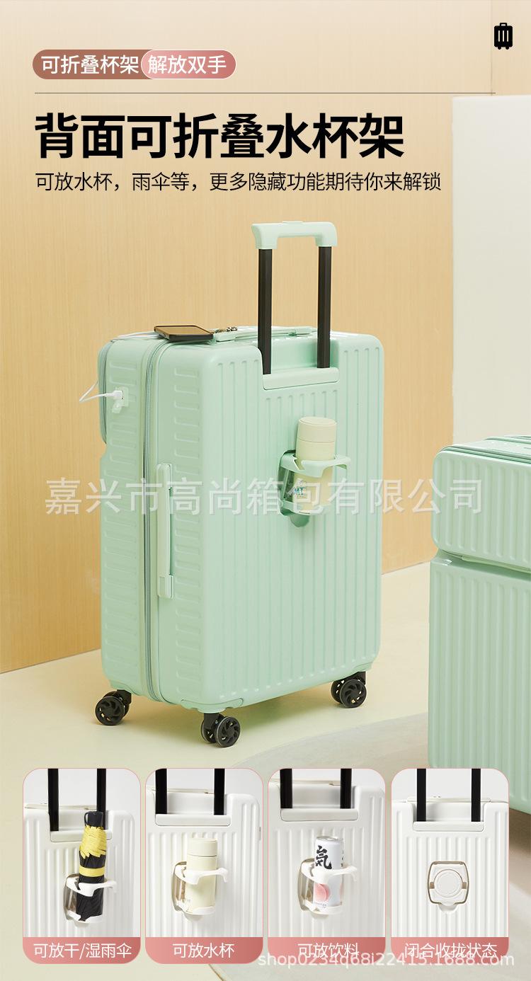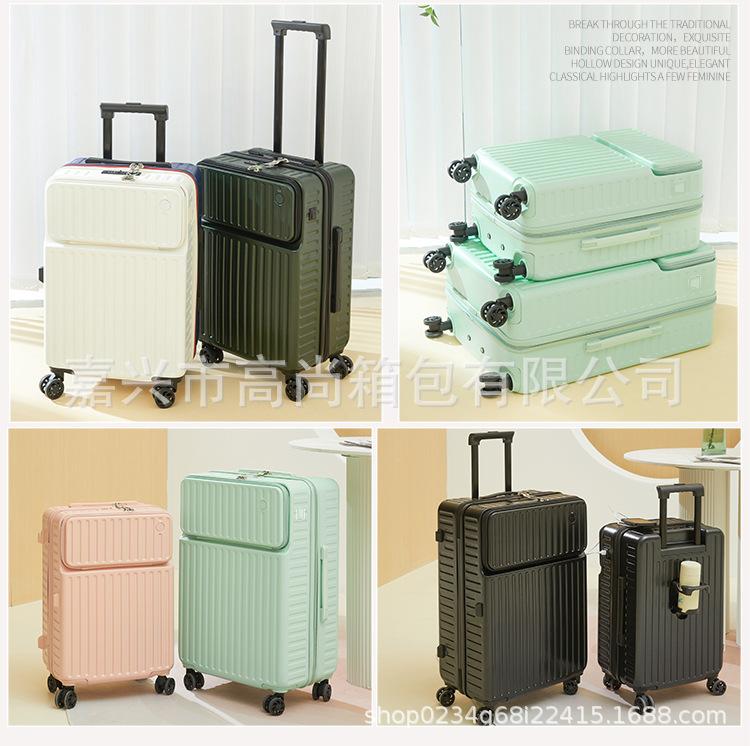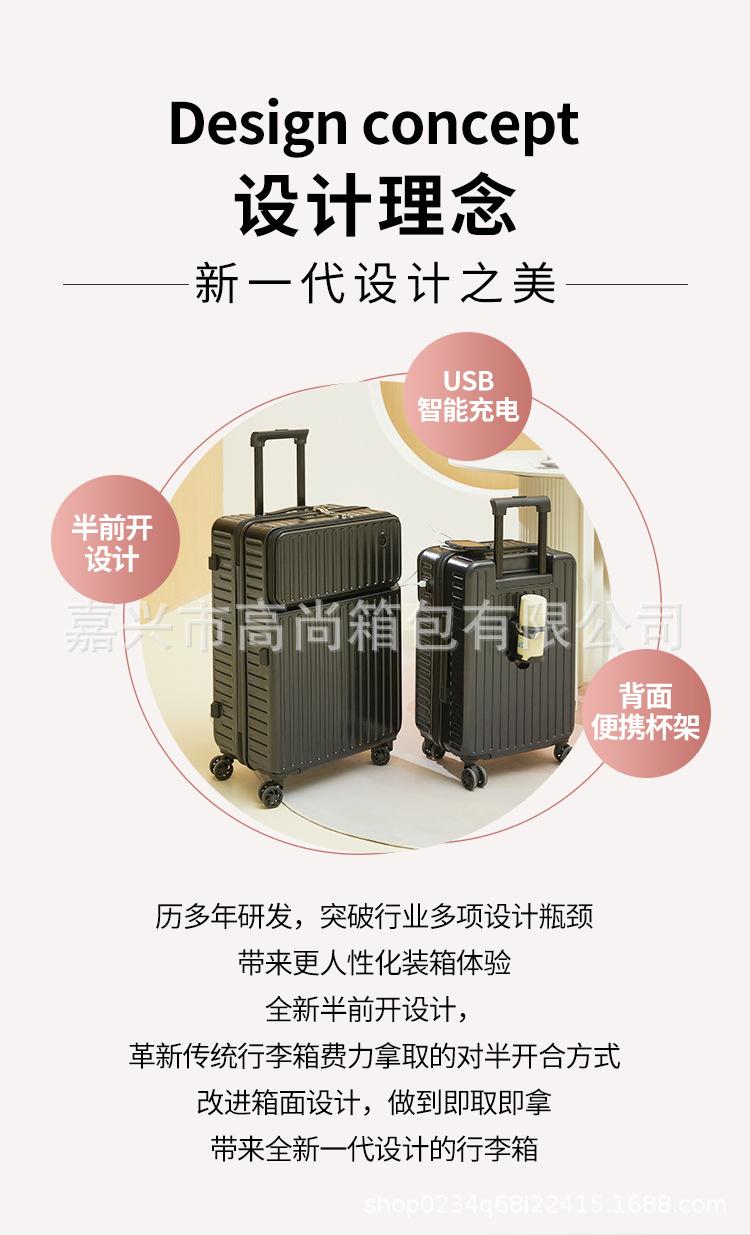 Maleta de Apertura Frontal para Mujer de 20 Pulgadas Recargable Maleta con Ruedas Universales Trolley con Portavasos Maleta de Cuero para Estudiantes 24