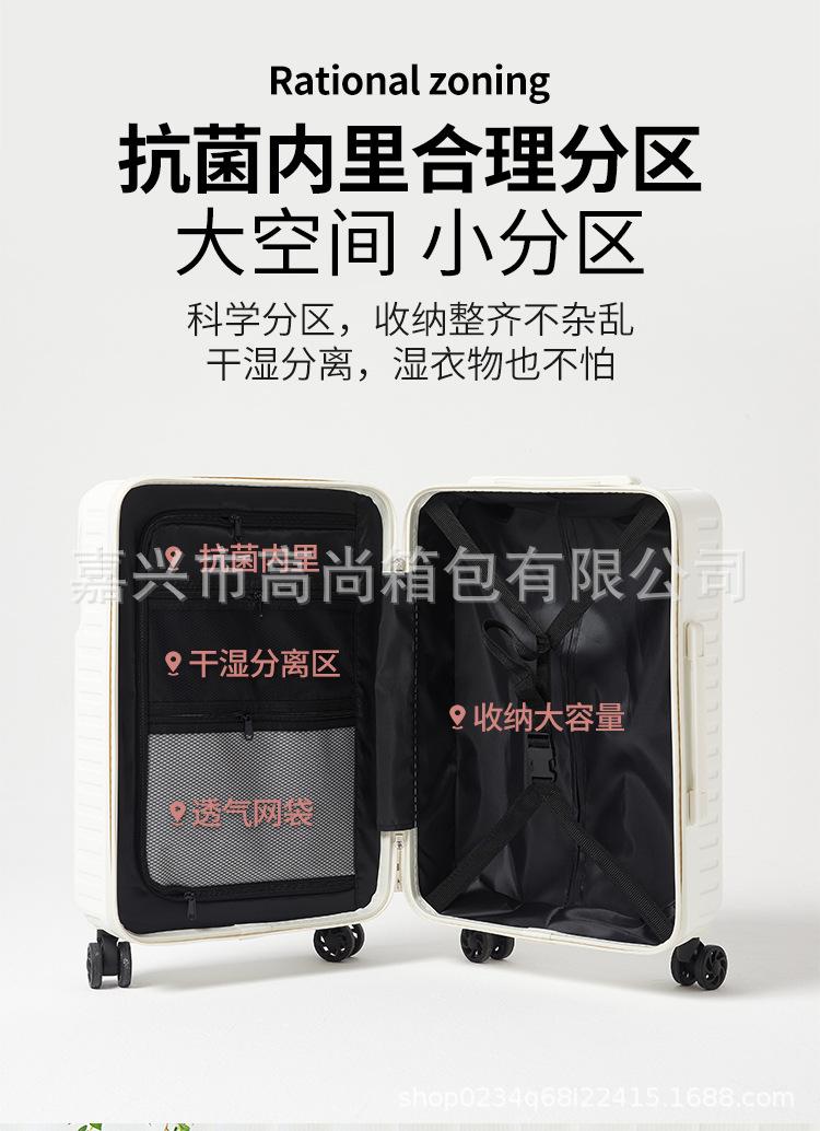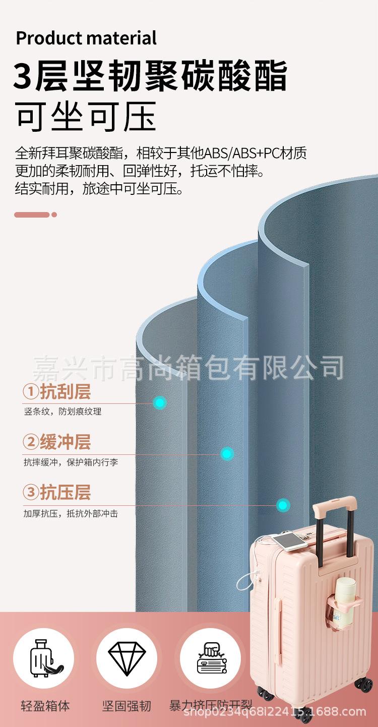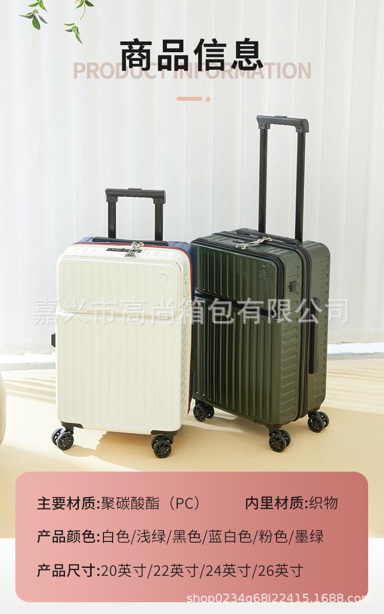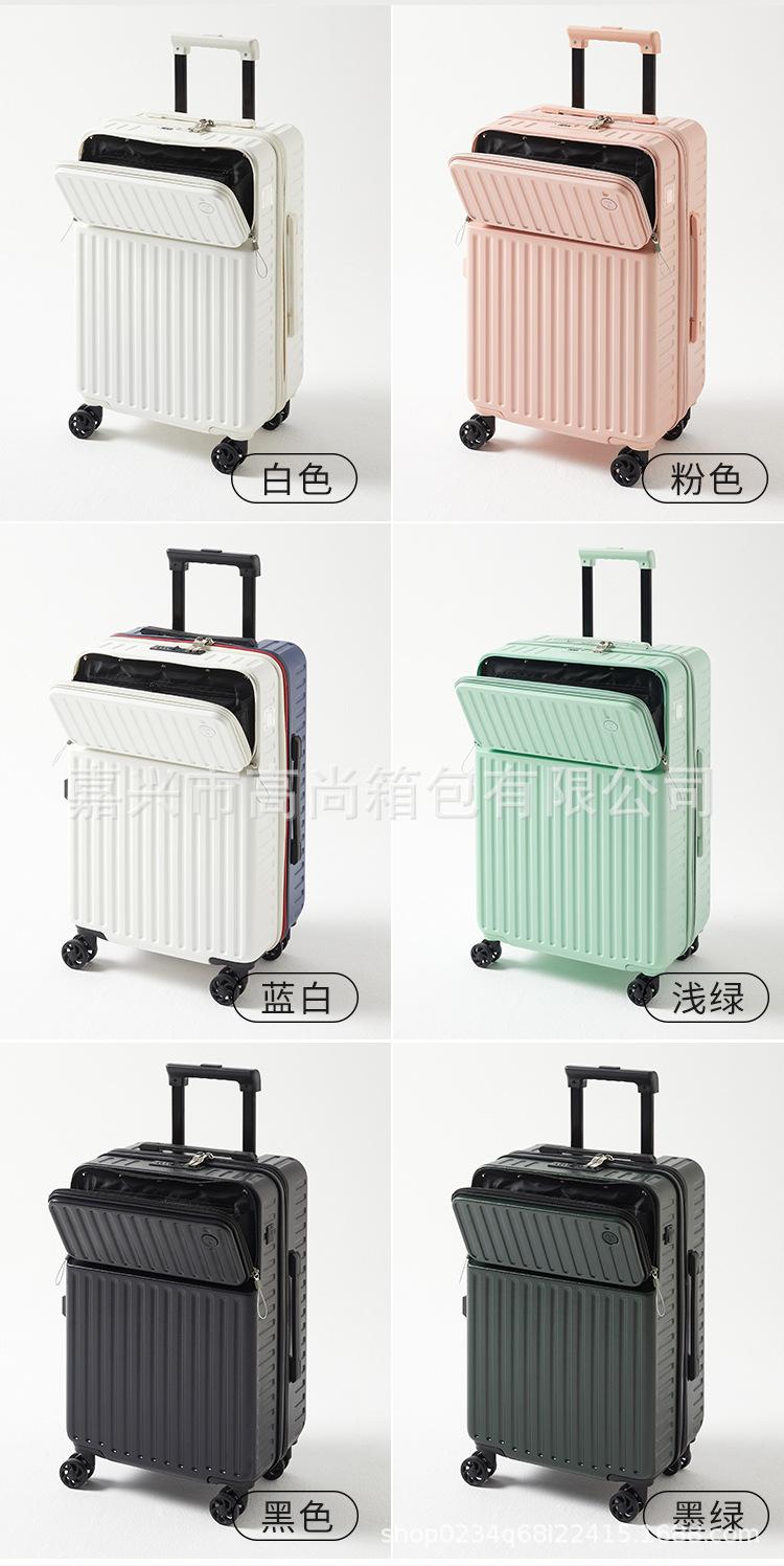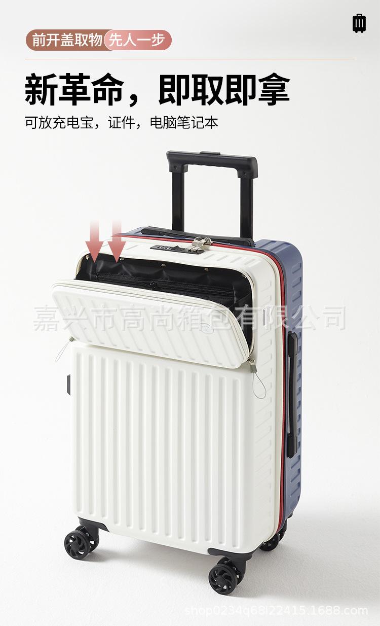 Maleta de Apertura Frontal para Mujer de 20 Pulgadas Recargable Maleta con Ruedas Universales Trolley con Portavasos Maleta de Cuero para Estudiantes 24