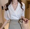 Camisa blanca elegante de moda de verano 2023 para mujer, diseño de nicho, blusa holgada de manga corta, camisa base