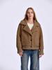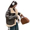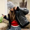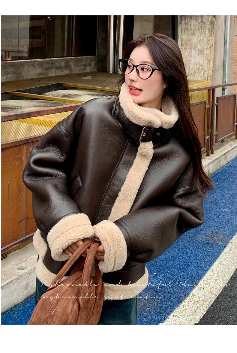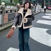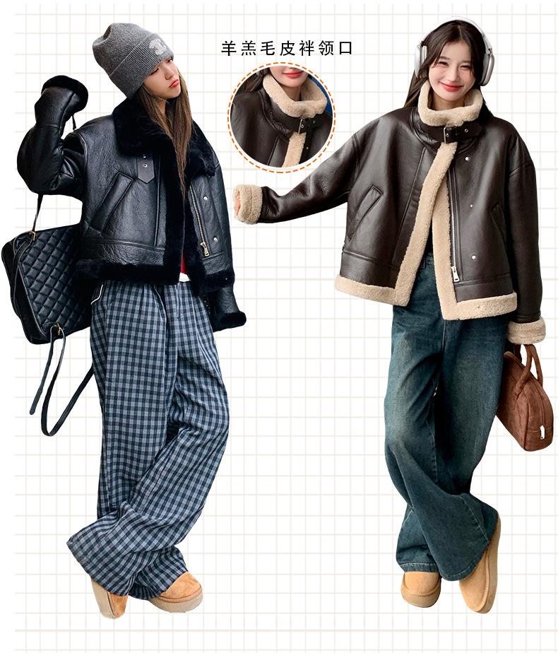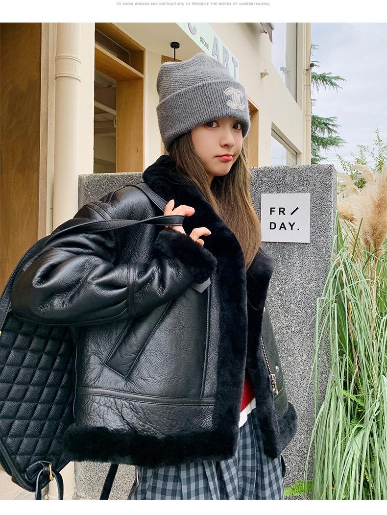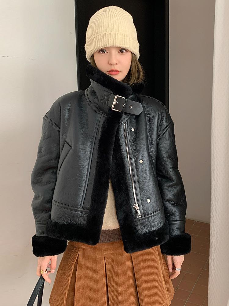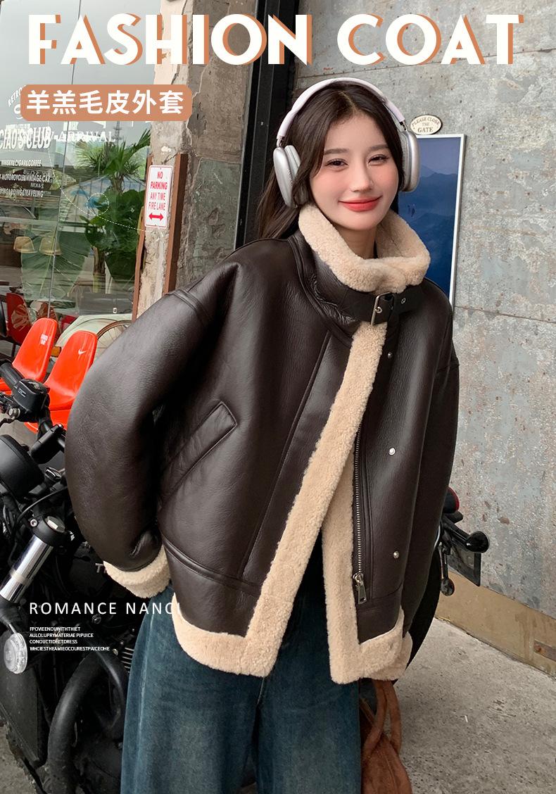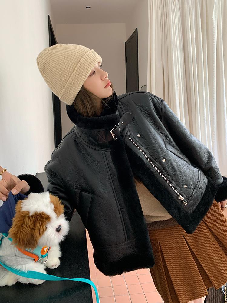 Abrigo de piel para mujer holgado de piel de cordero ropa de motociclista abrigo de cuero en stock