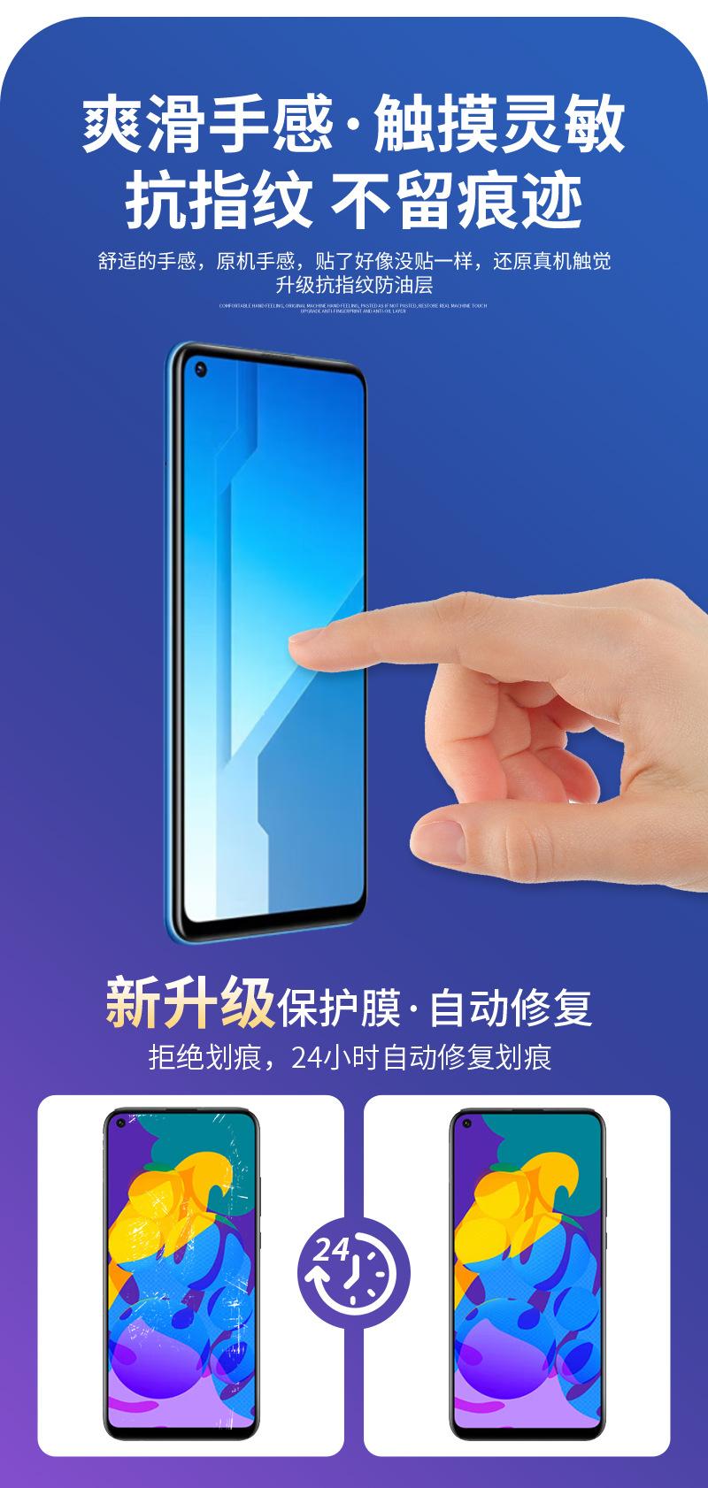 6. Si solo tiene la etiqueta n.° 1, retire la capa protectora de la película protectora n.° 1 (la película ultratransparente antiarañazos, la película nanoantiexplosiones y la película antihuellas esmerilada son películas duras, aptas solo para superficies planas; el hidrogel de alta transparencia, el nano-TPU, la película blanca de TPU y la película anti-luz azul son películas blandas, aptas tanto para superficies planas como curvas).