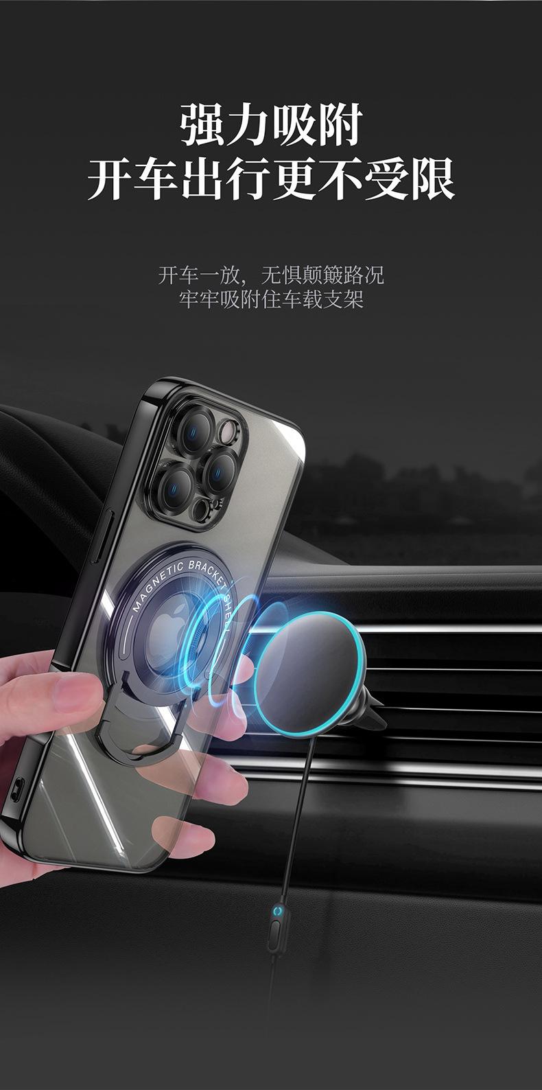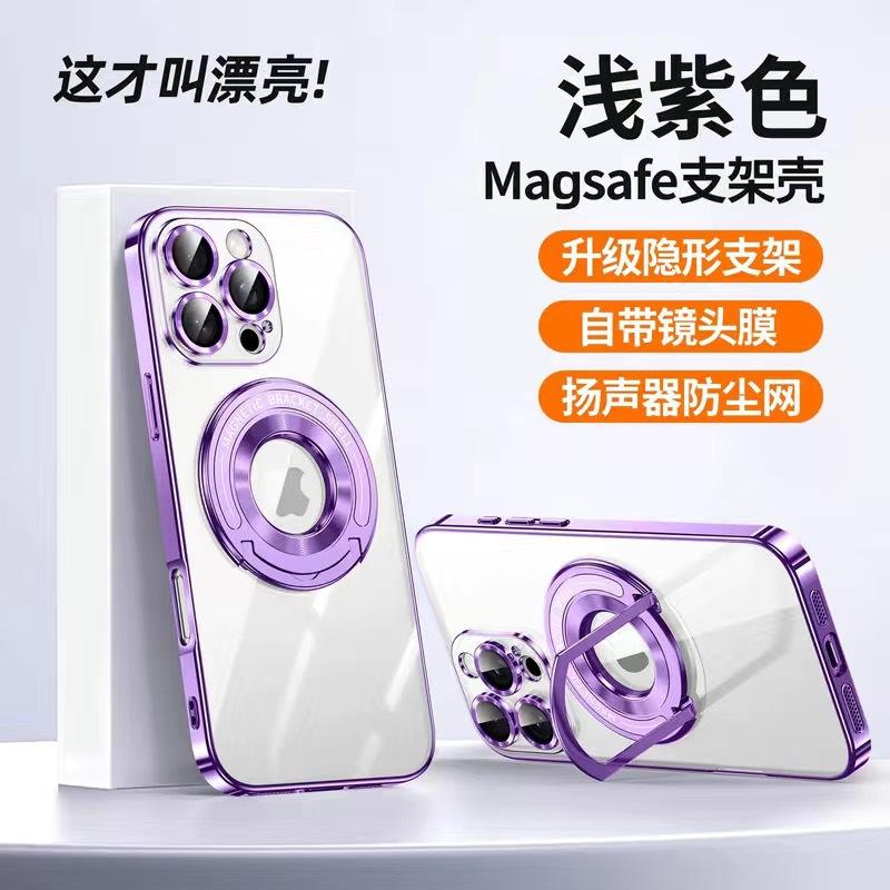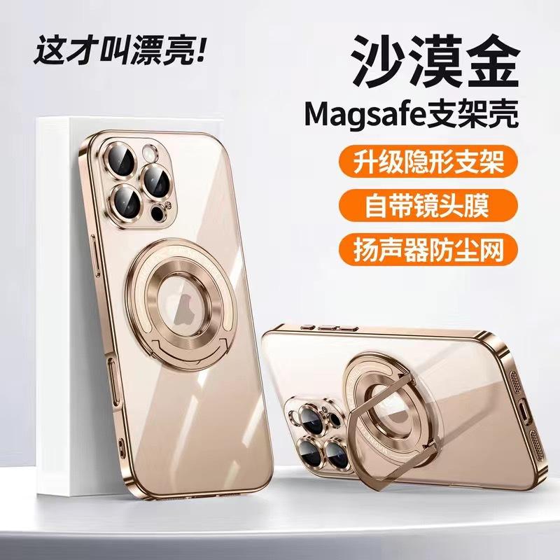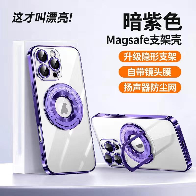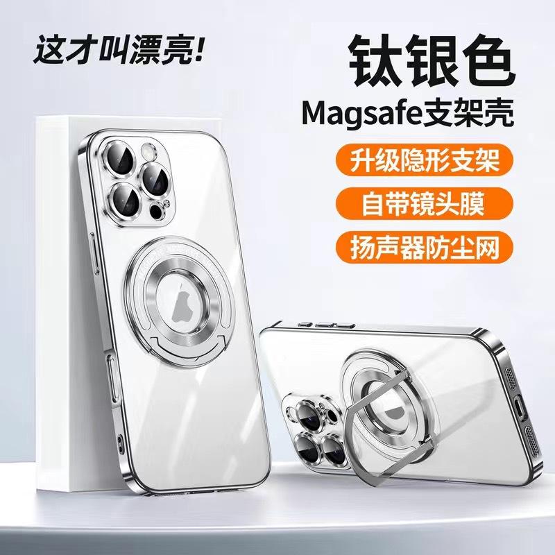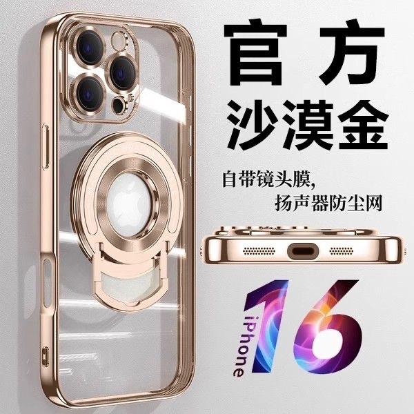Adecuado para Iphone16Pro Soporte Magnético Electrochapado Funda para Teléfono Móvil Película para Lente Todo Incluido Apple 15 Funda Blanda de Tpu Transparente