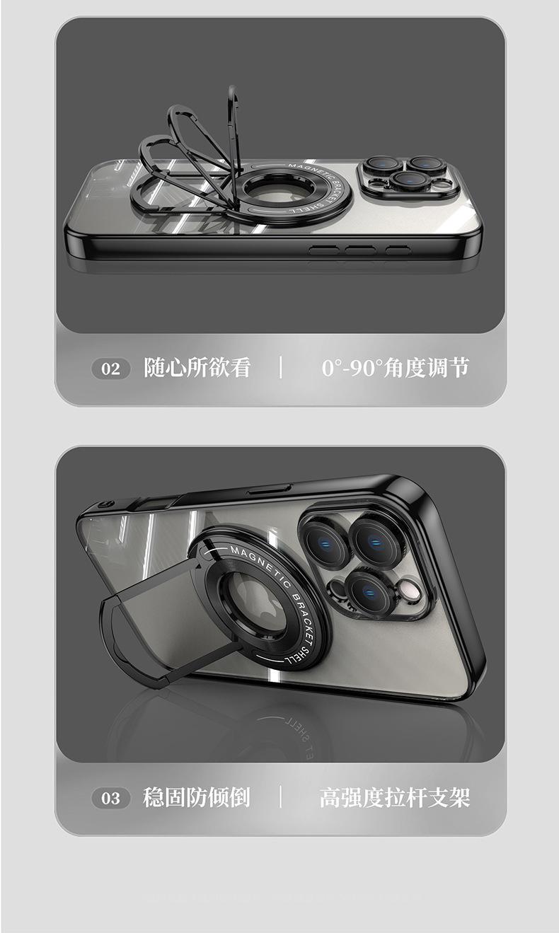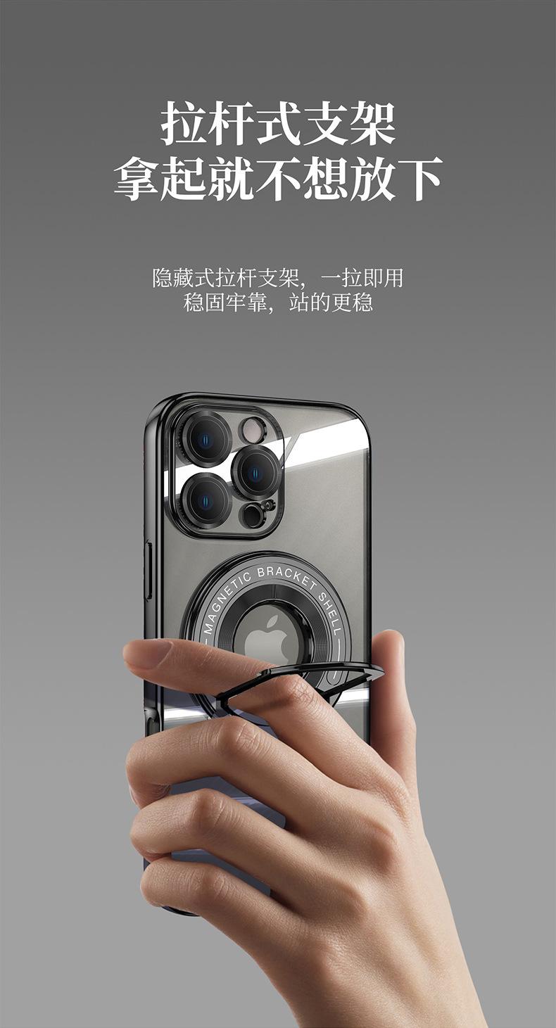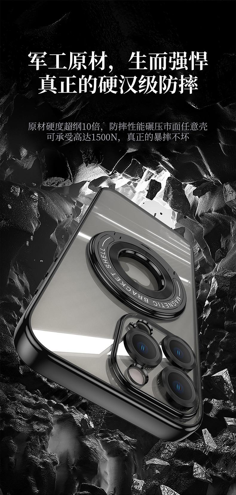 Adecuado para Iphone16Pro Soporte Magnético Electrochapado Funda para Teléfono Móvil Película para Lente Todo Incluido Apple 15 Funda Blanda de Tpu Transparente