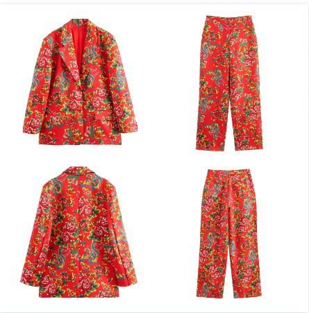 Chaqueta de traje estampada para mujer + pantalón recto, nueva chaqueta de traje europea y americana de invierno 2023 w021 81165