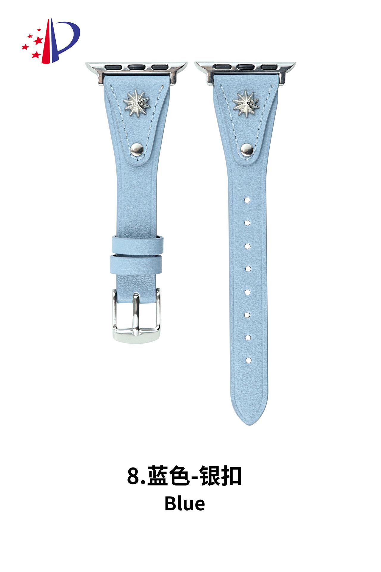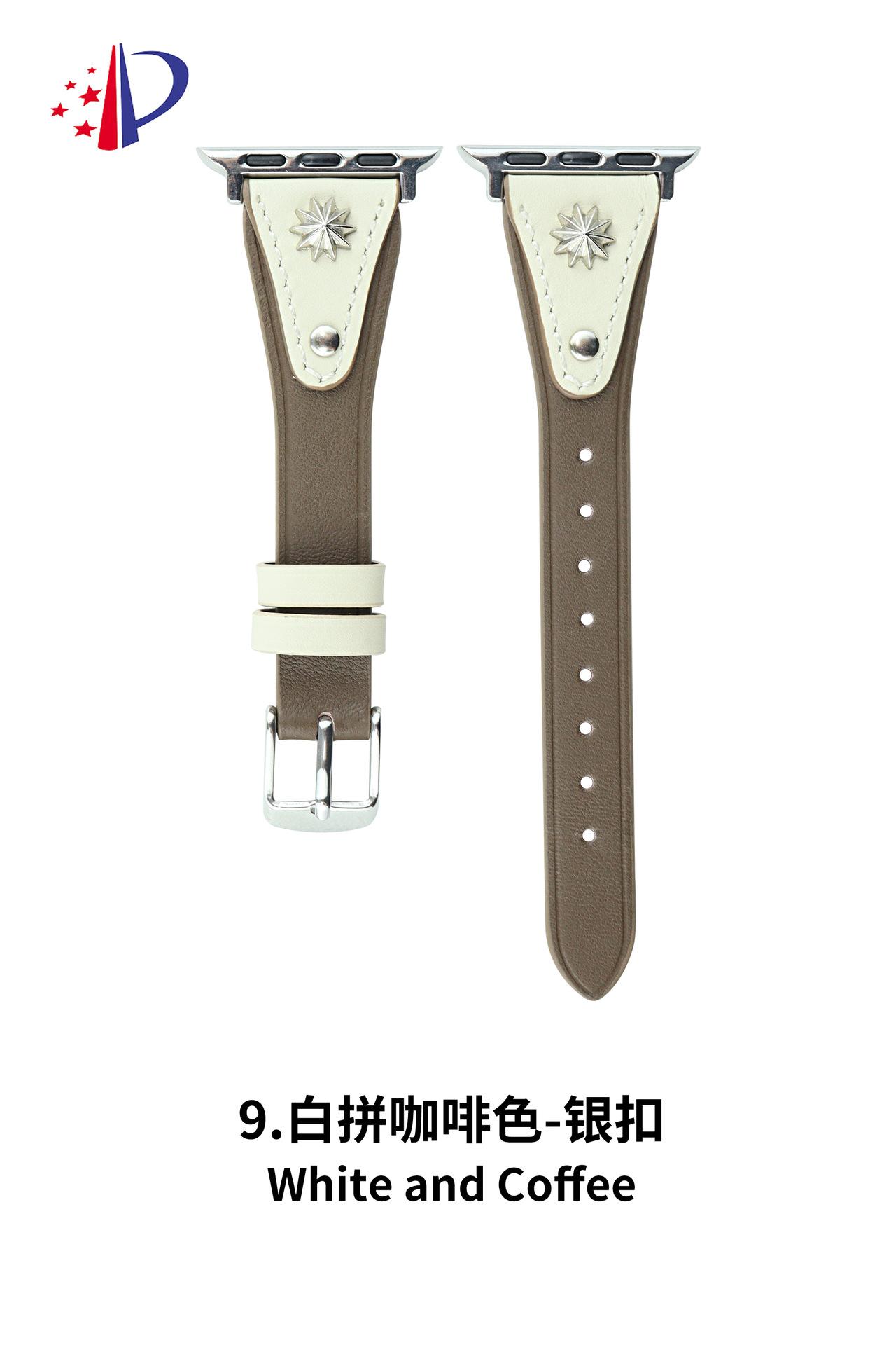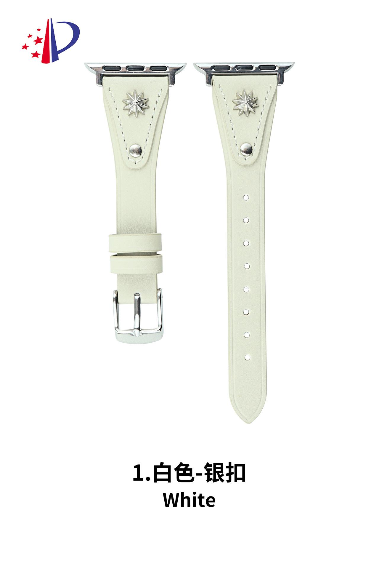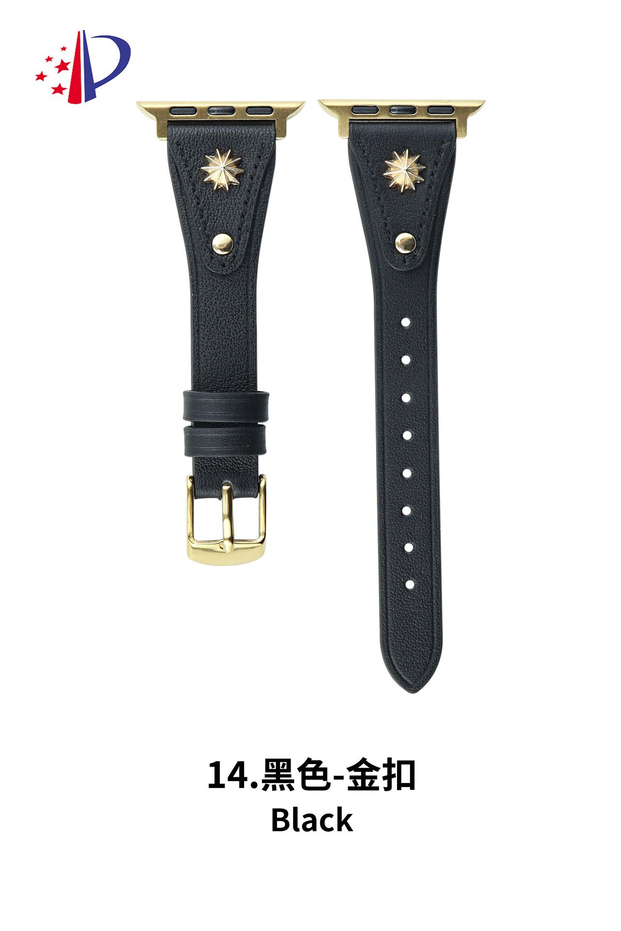 Correa de Cuero Delgada con Remaches Starburst Adecuada para Apple iWatch 11 Generación 10/987