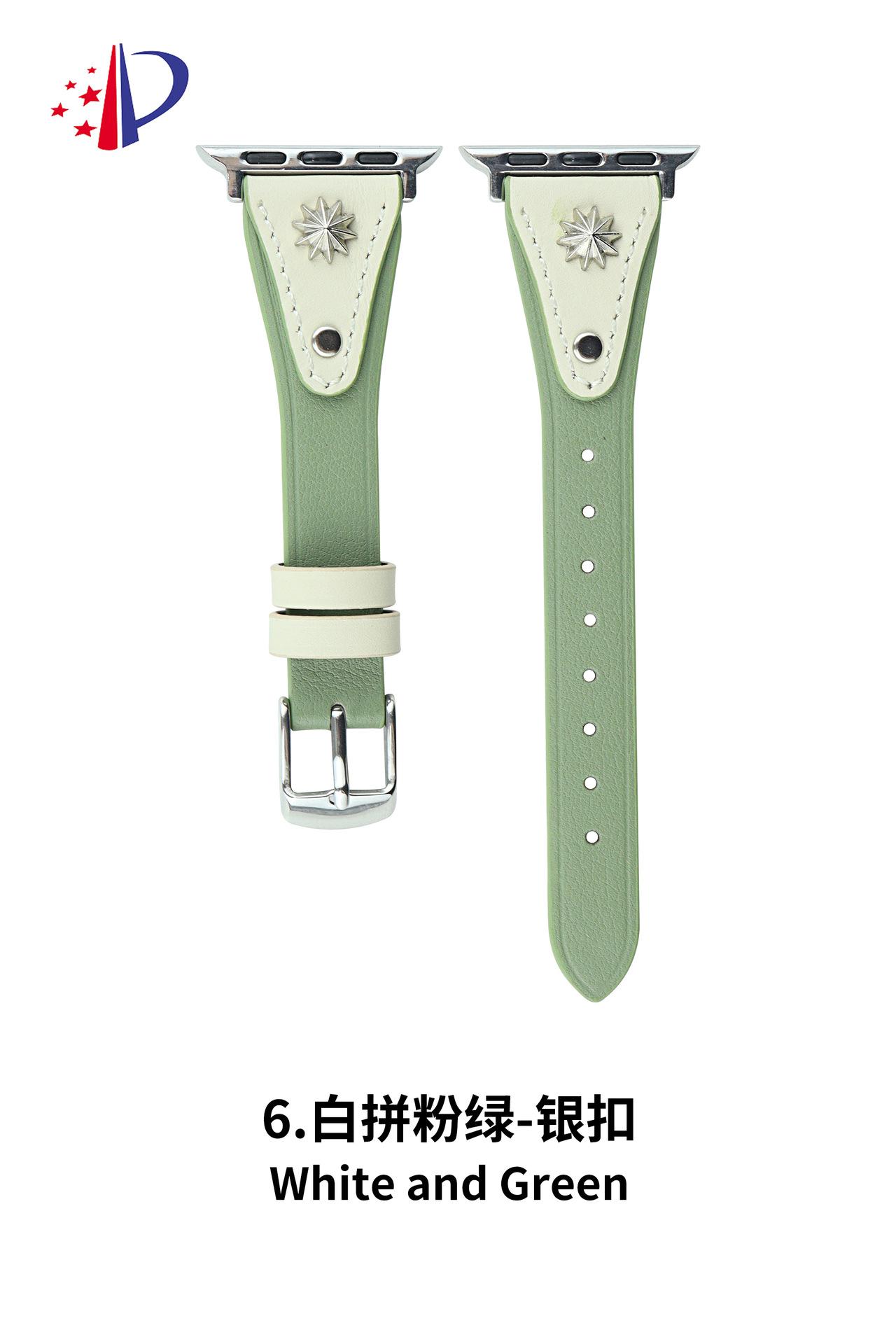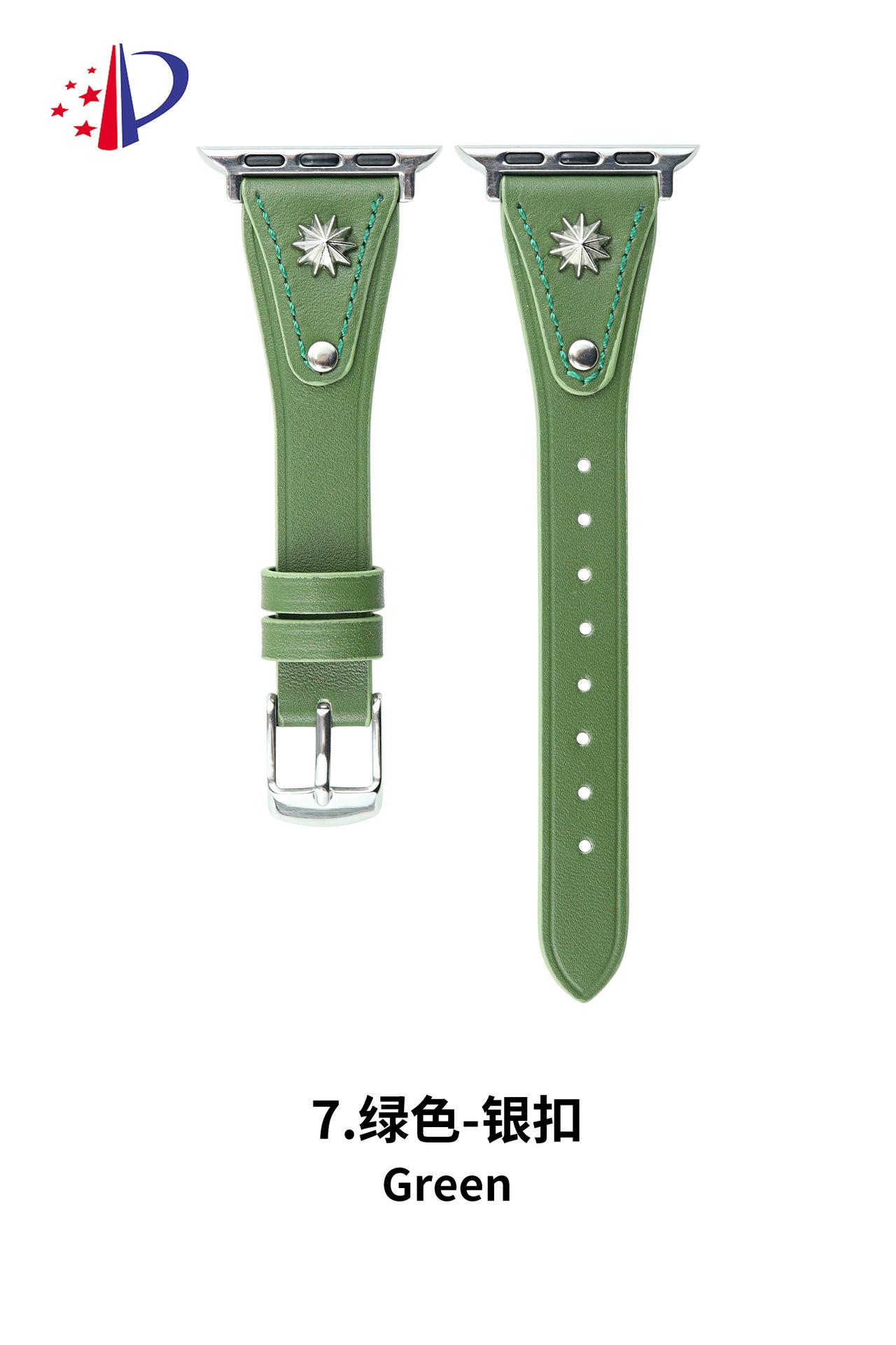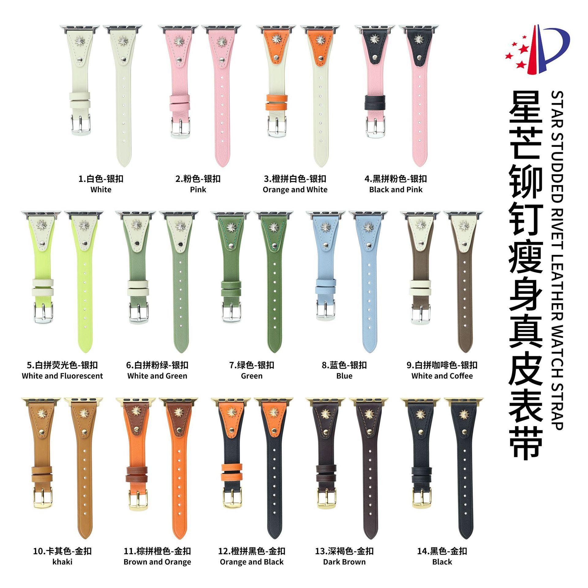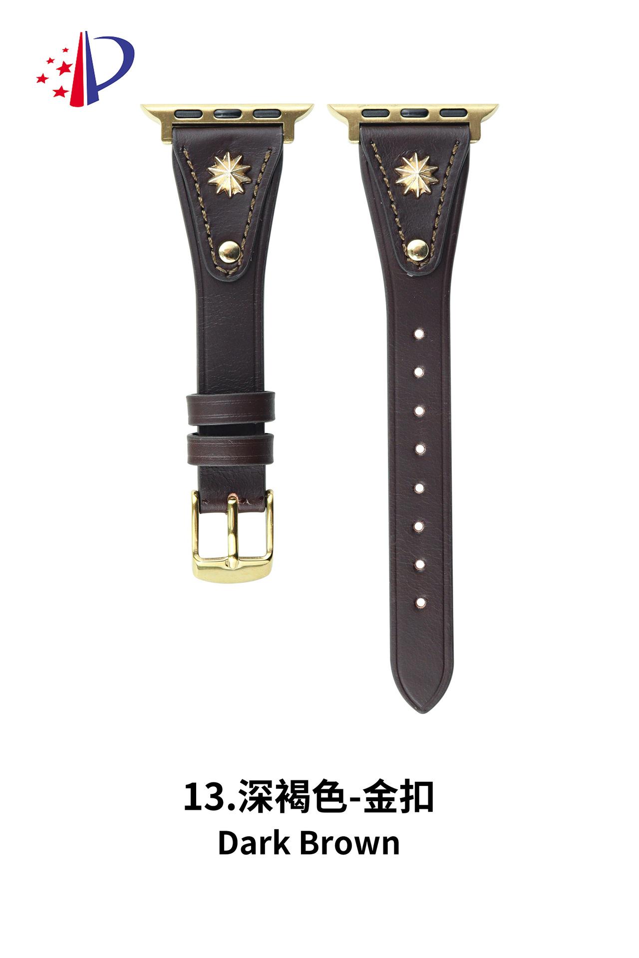 Correa de Cuero Delgada con Remaches Starburst Adecuada para Apple iWatch 11 Generación 10/987