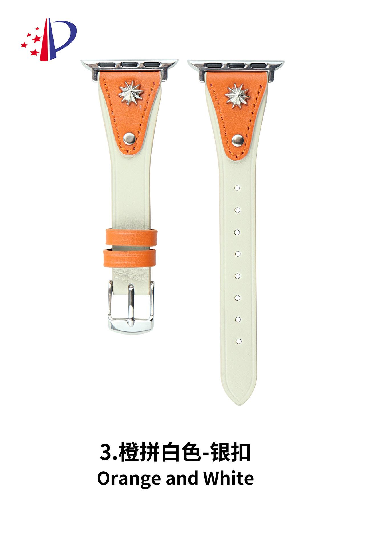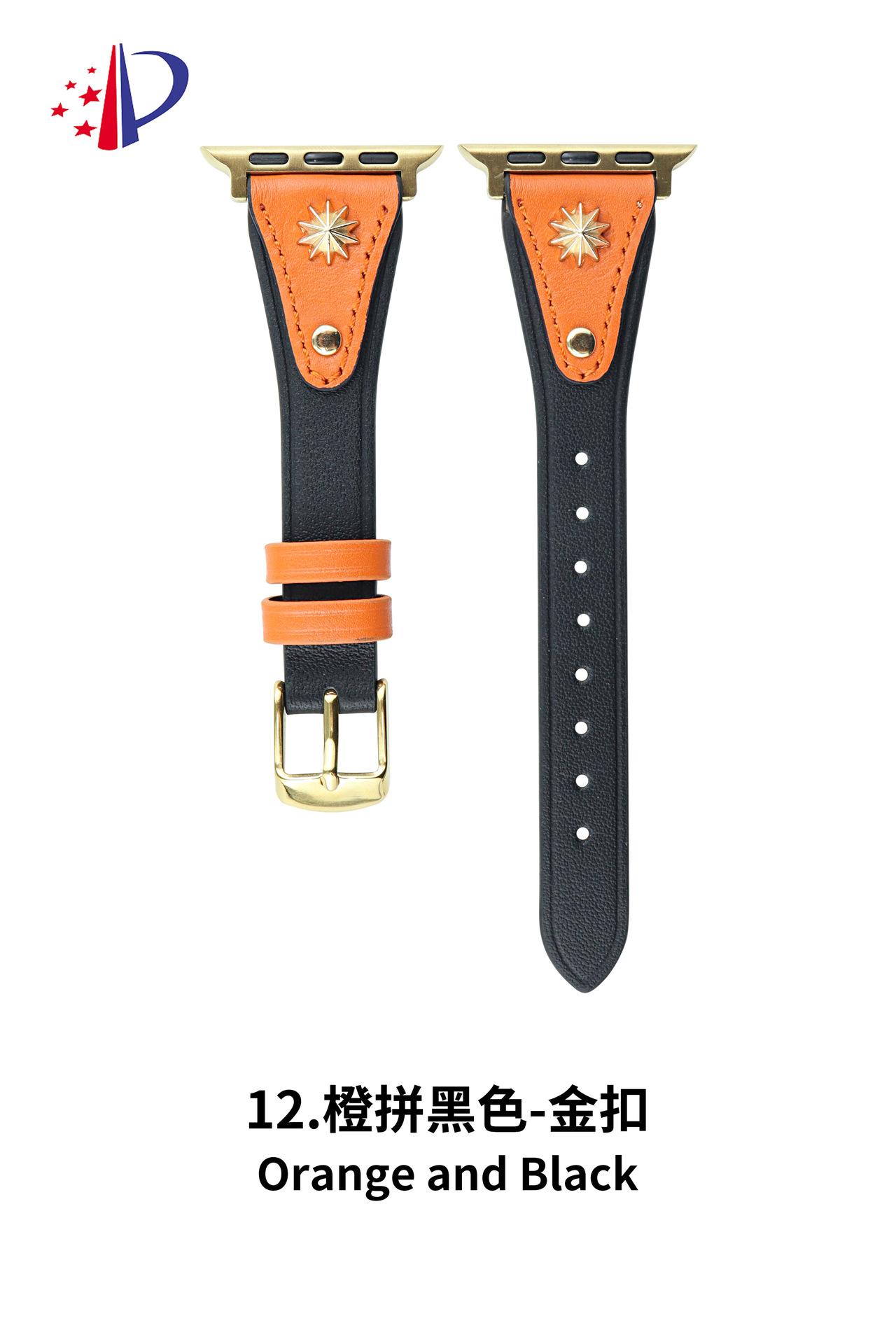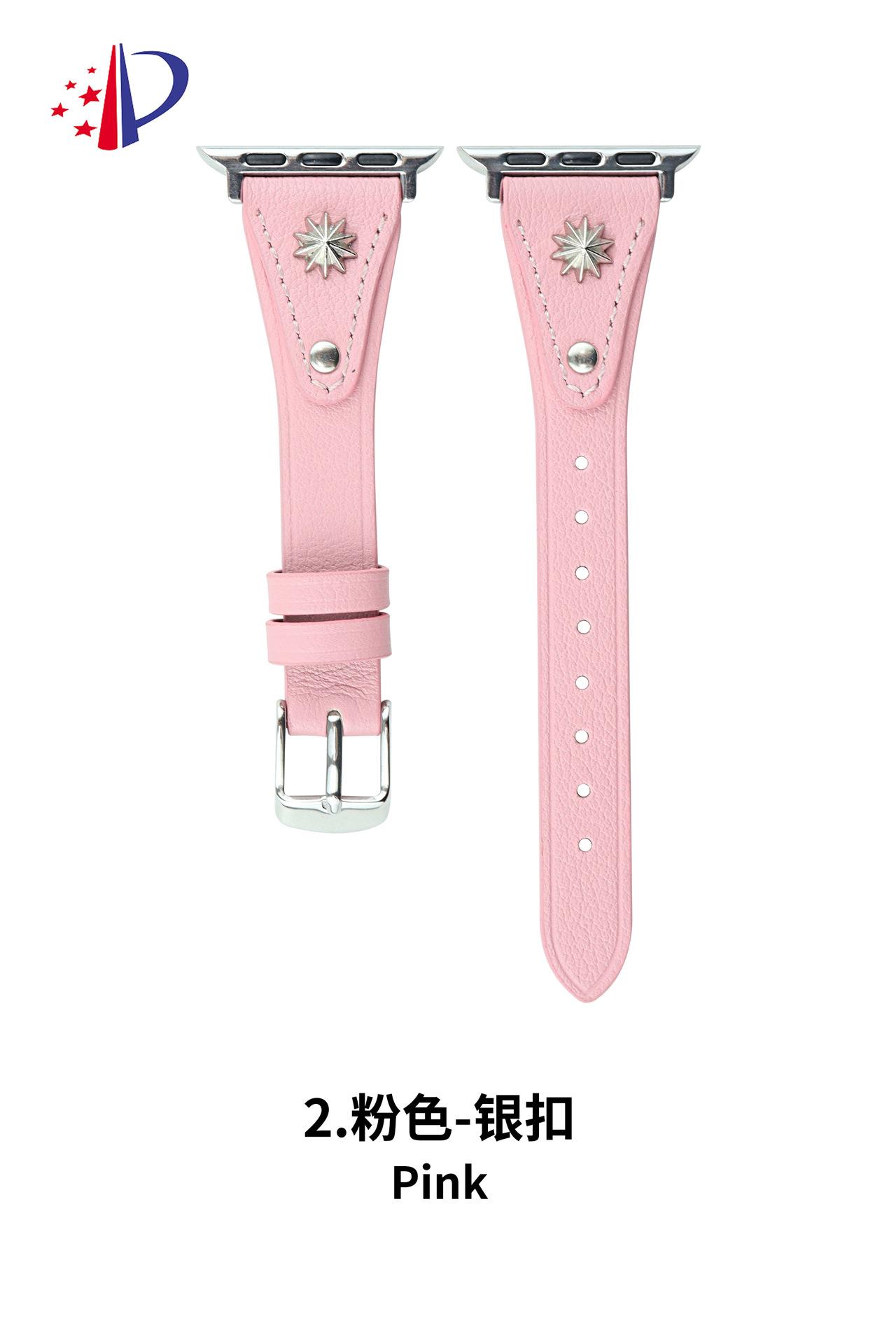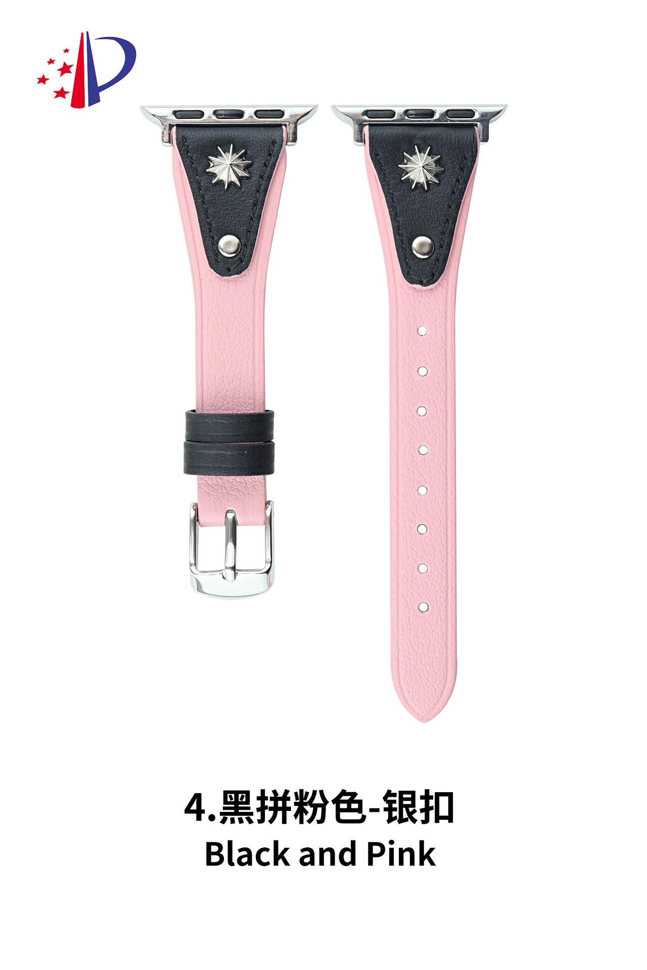 Correa de Cuero Delgada con Remaches Starburst Adecuada para Apple iWatch 11 Generación 10/987