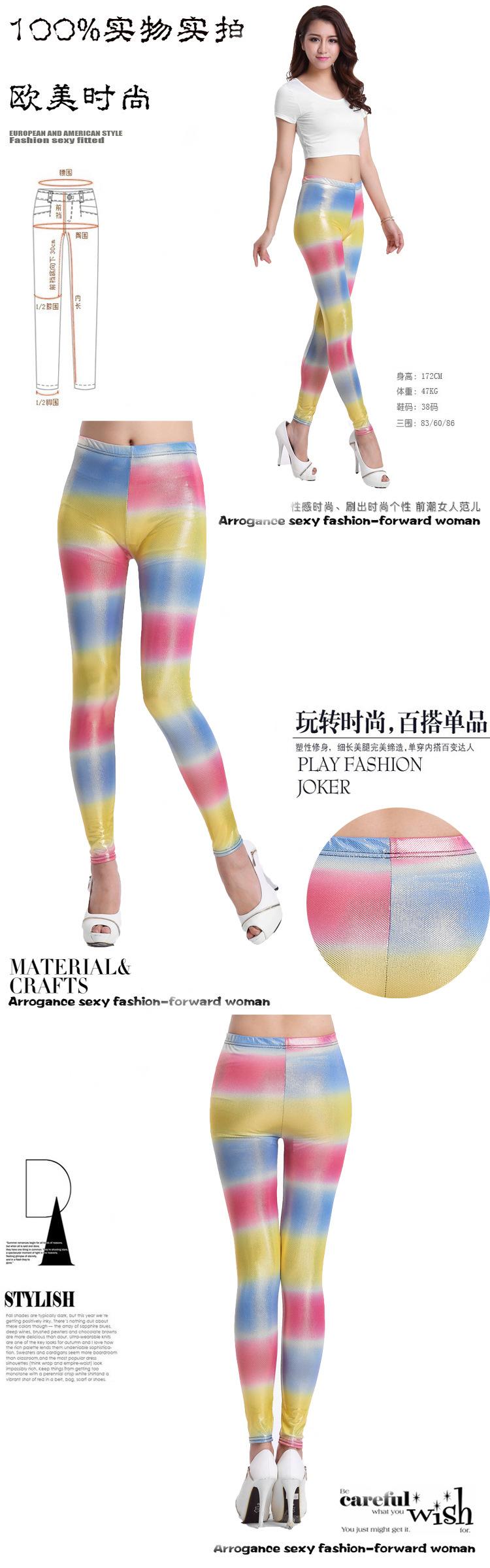 Leggings Nuevos de Primavera y Otoño Europeos y Americanos de Imitación de Cuero PU Bronceado Coloridos Difuminados Cintura Alta Pantalones Ajustados Pantalones Adelgazantes de Nueve Puntos para Mujer