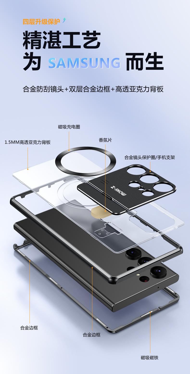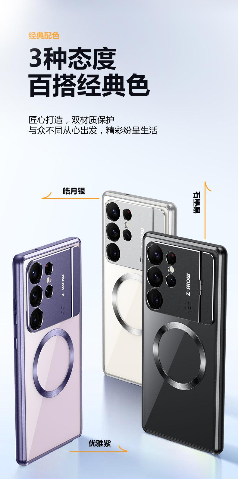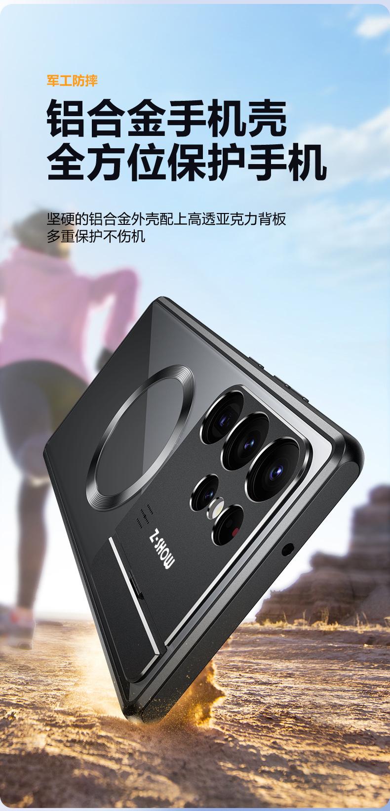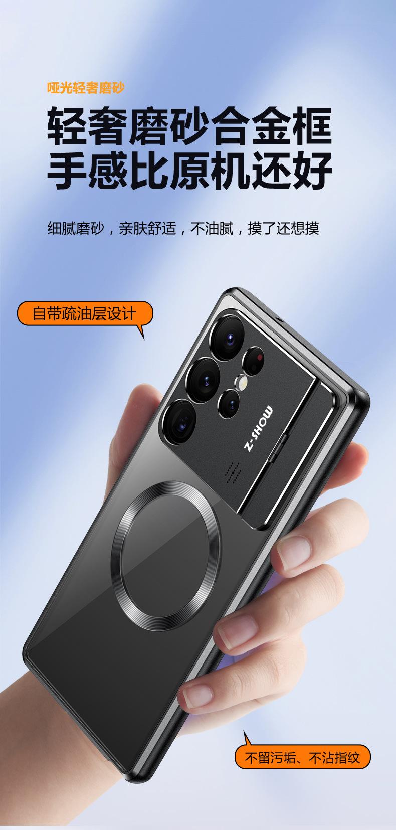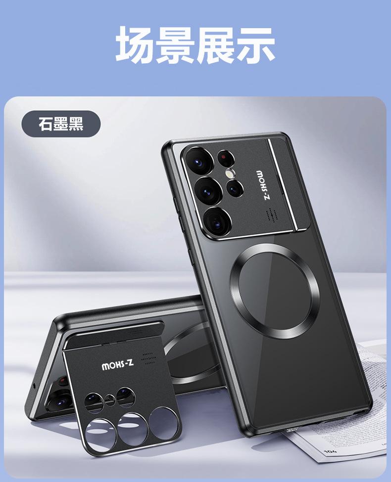 Adecuado para Samsung S25Ultra Soporte Funda para Teléfono Móvil S23U Aleación de Aluminio S24U Funda Ahumada Funda de Succión Magnética Transfronteriza Unilateral