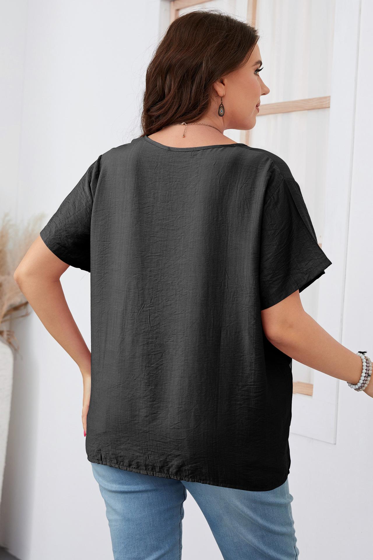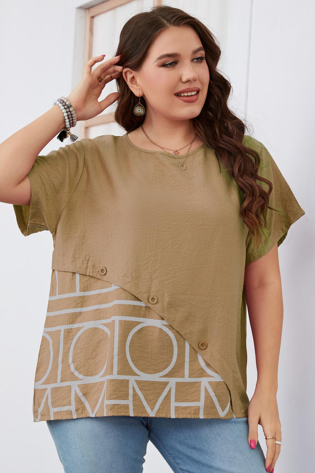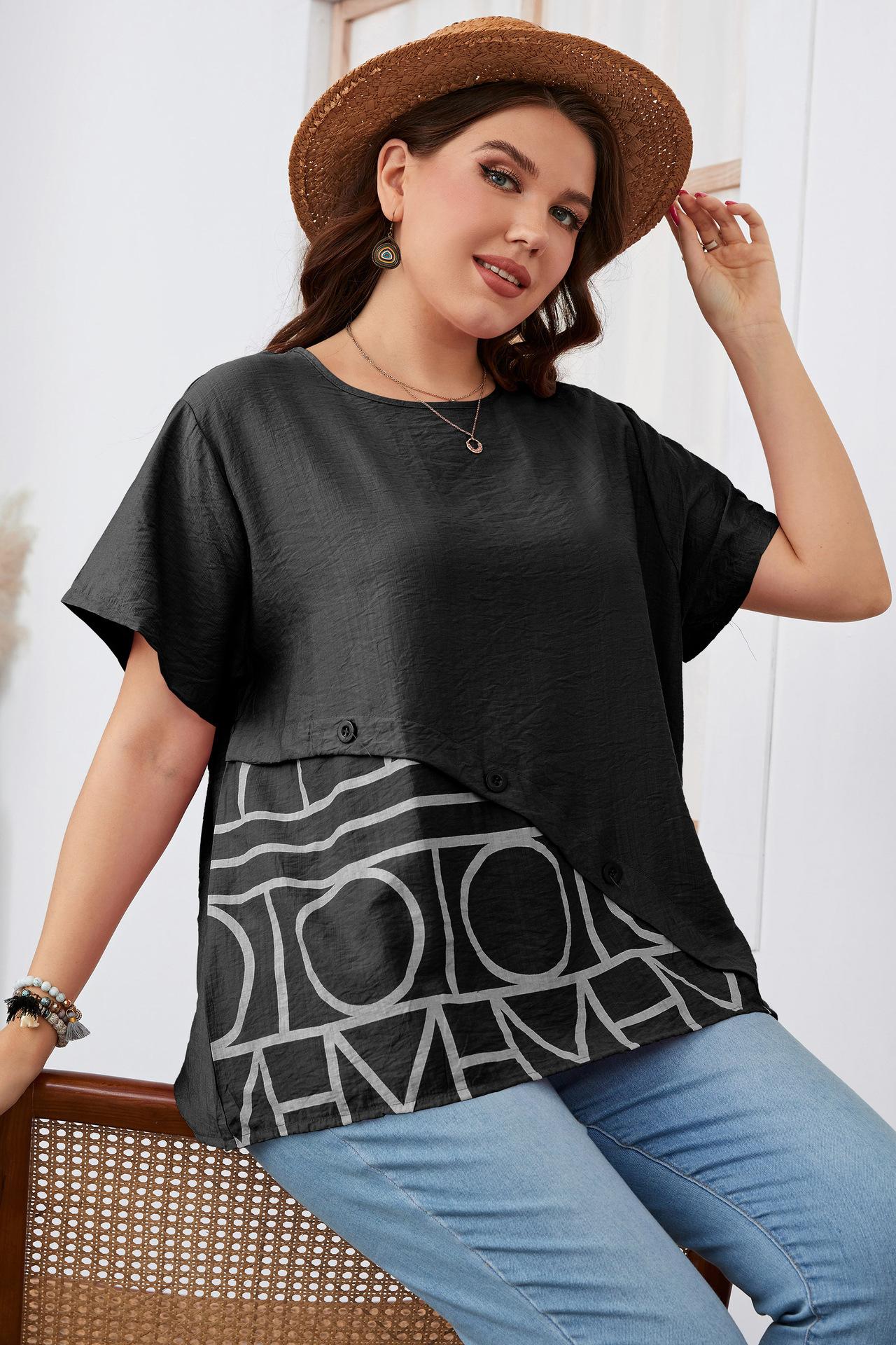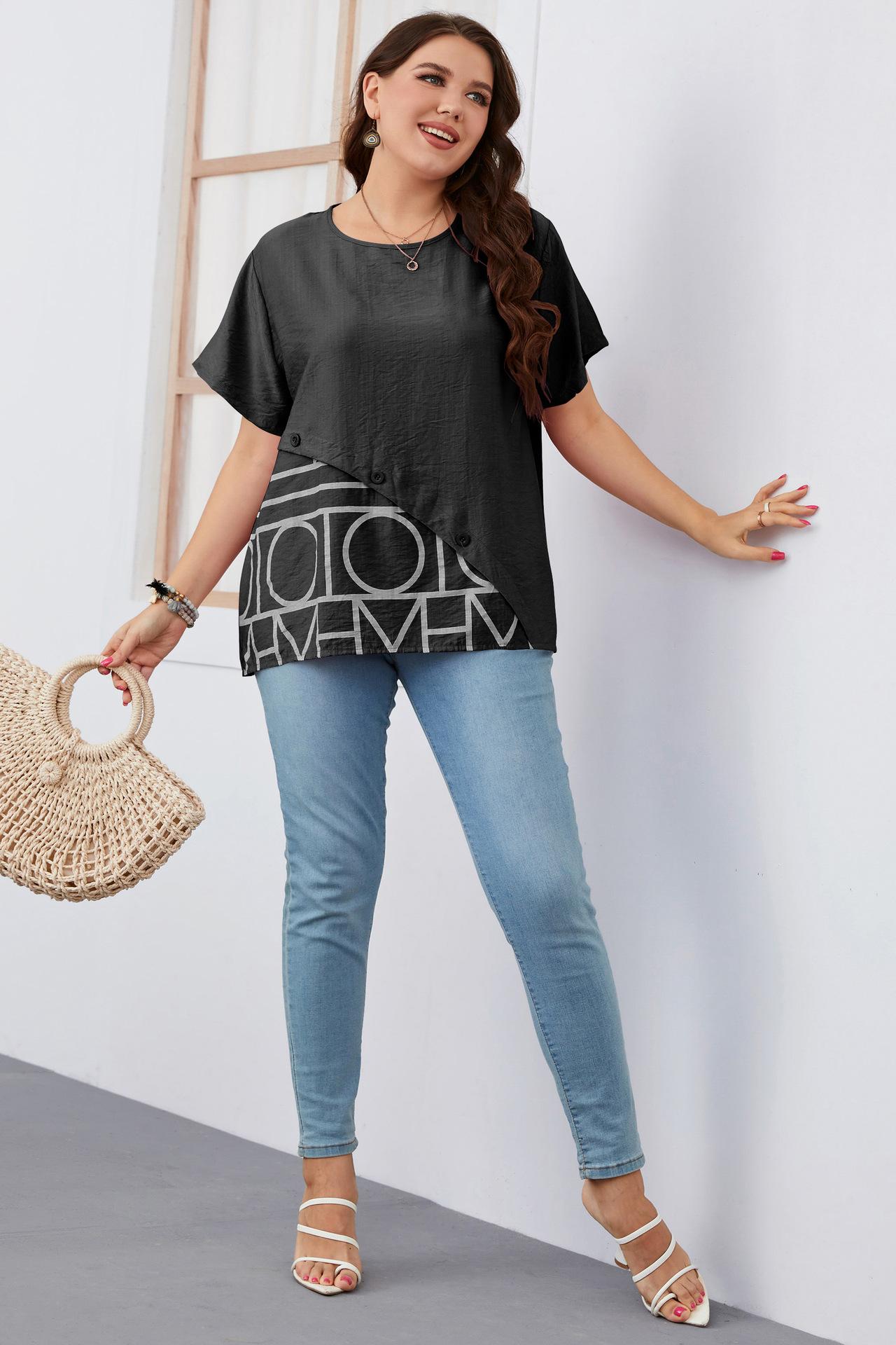 Camiseta Holgada de Manga Corta con Cuello Redondo Talla Grande 2023 para Niñas Gorditas, Estilo Europeo y Americano Comercio Exterior Transfronterizo Ropa de Mujer, Nuevo Estilo Trendy para Ir al Trabajo