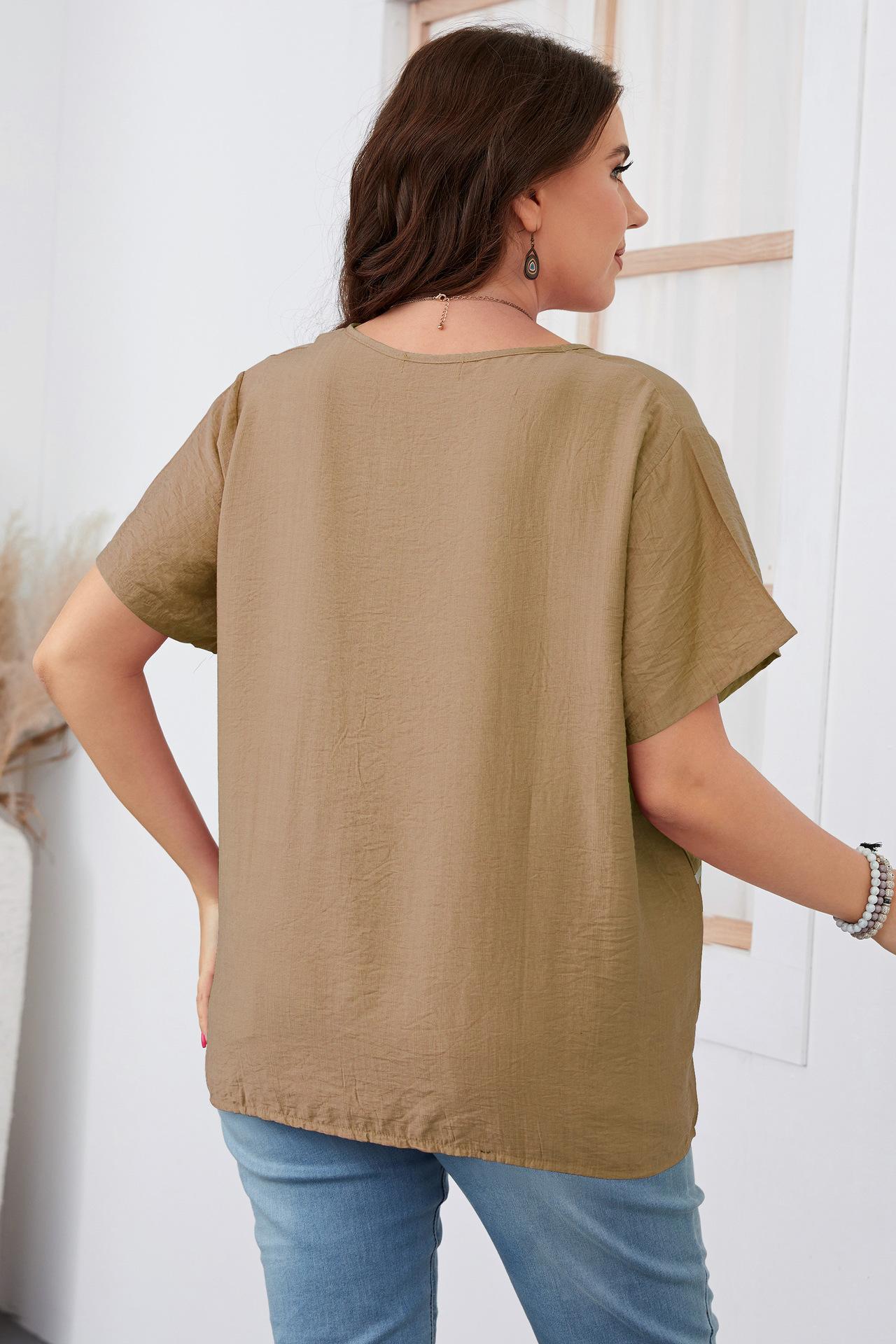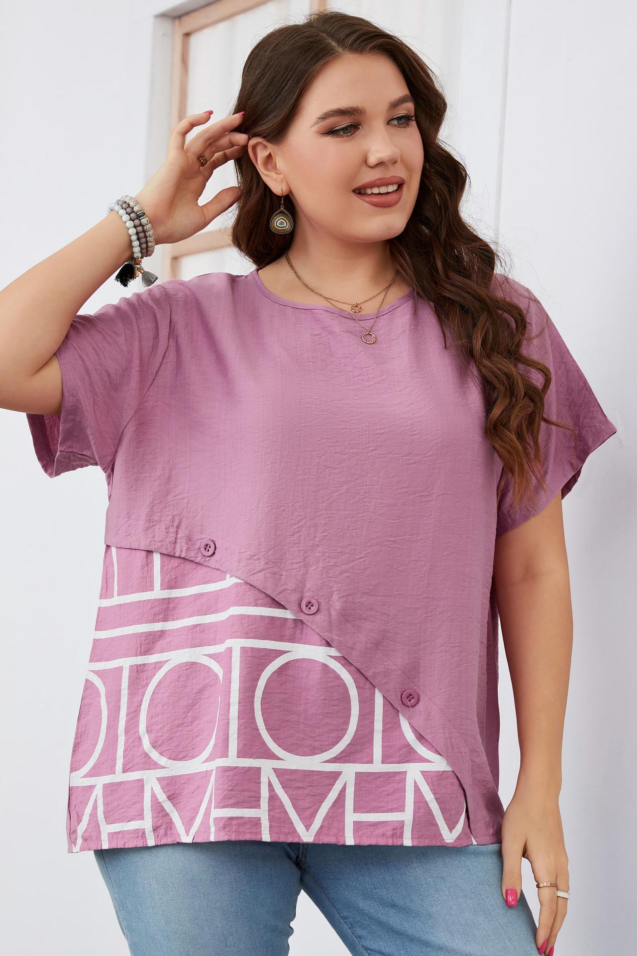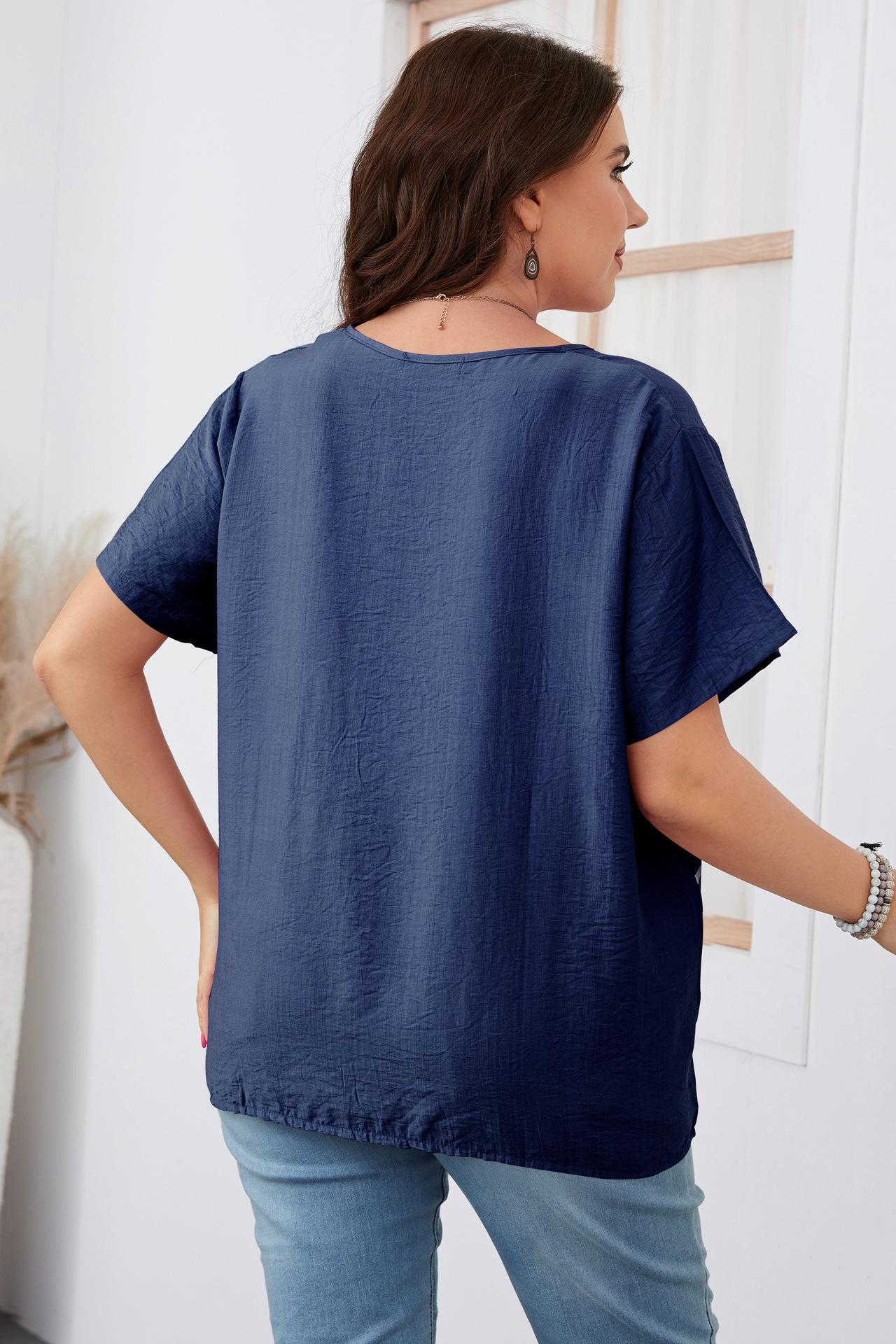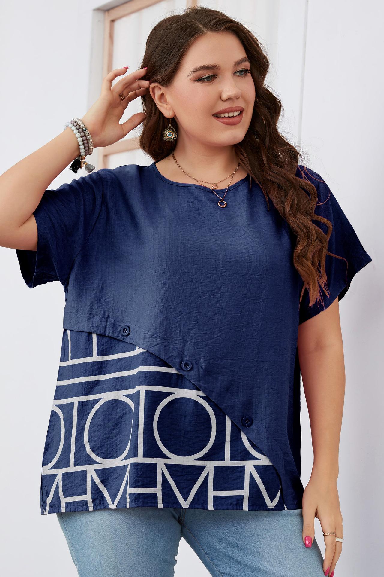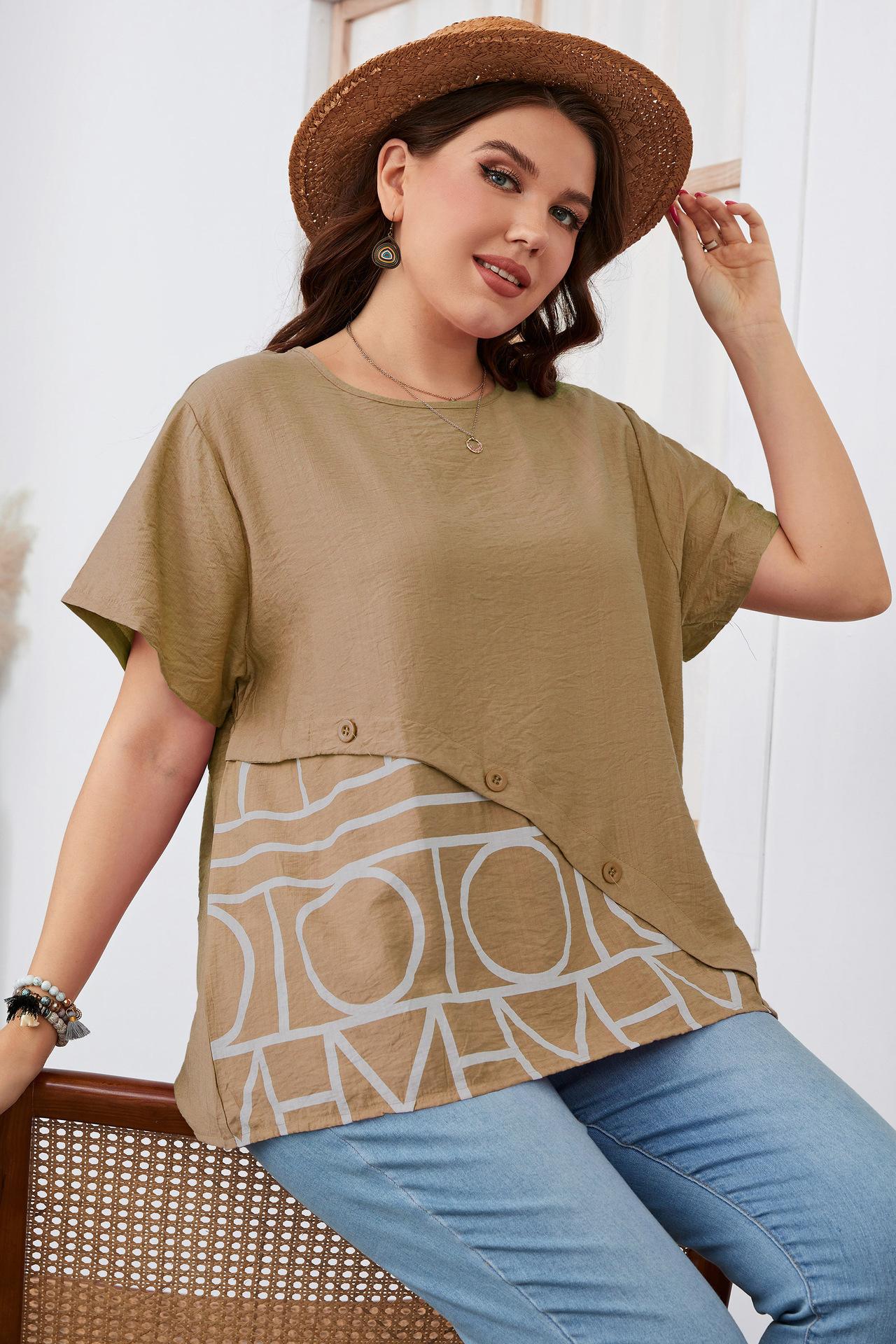 Camiseta Holgada de Manga Corta con Cuello Redondo Talla Grande 2023 para Niñas Gorditas, Estilo Europeo y Americano Comercio Exterior Transfronterizo Ropa de Mujer, Nuevo Estilo Trendy para Ir al Trabajo