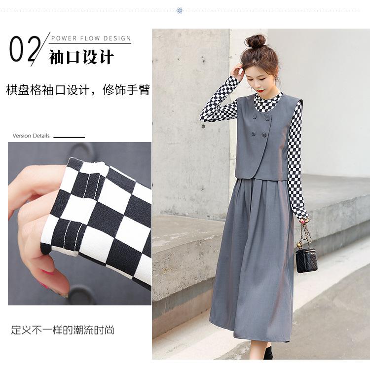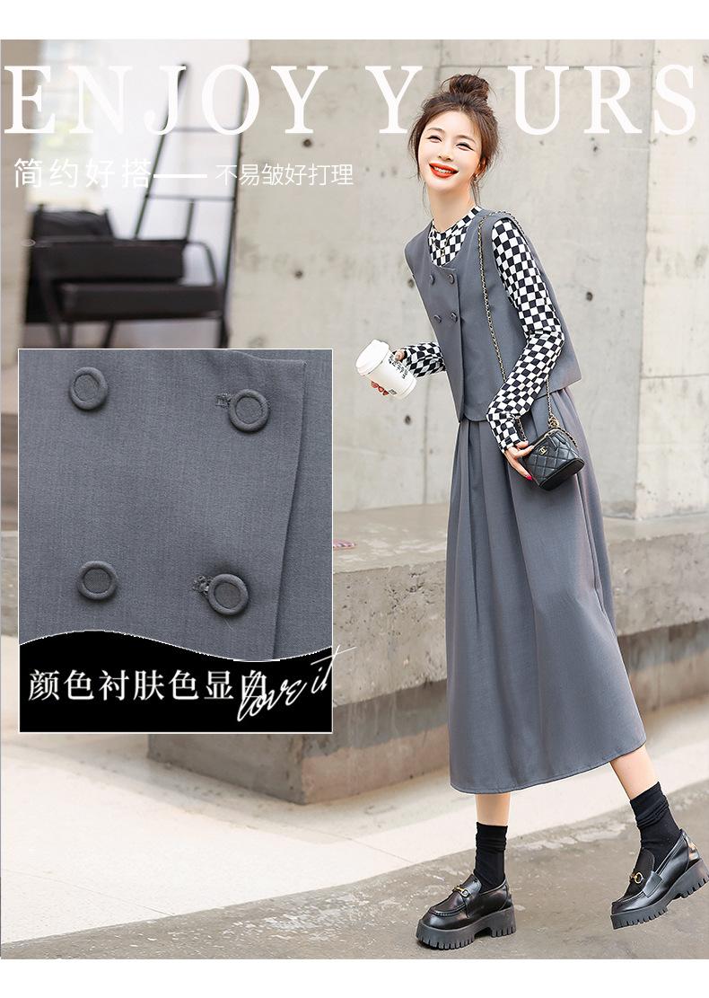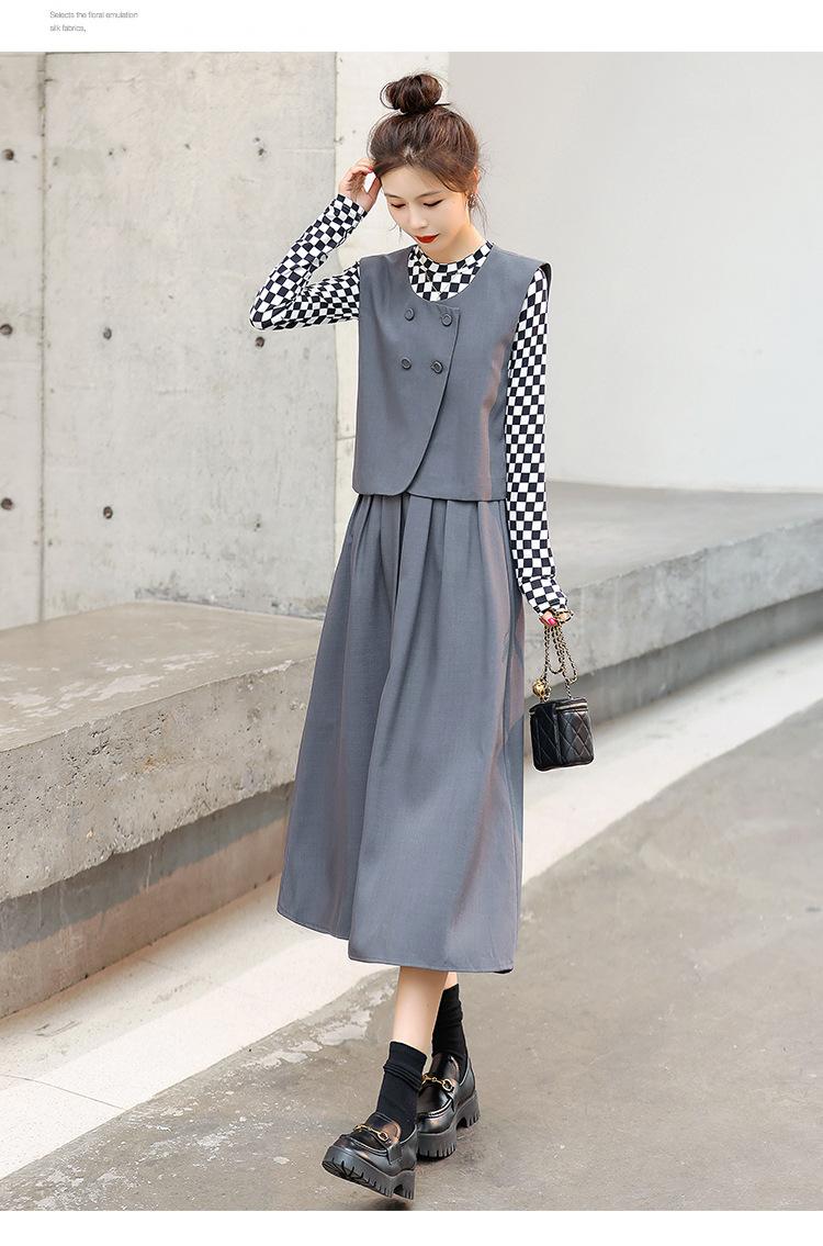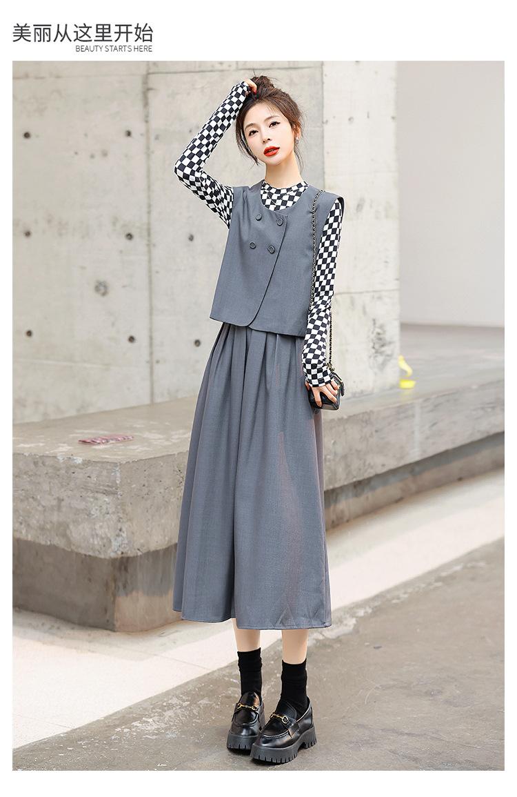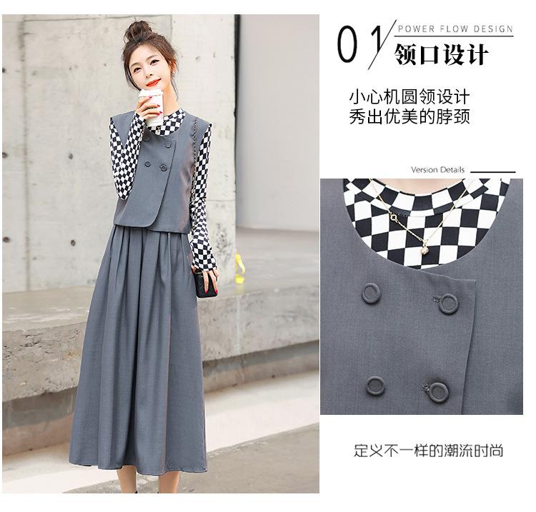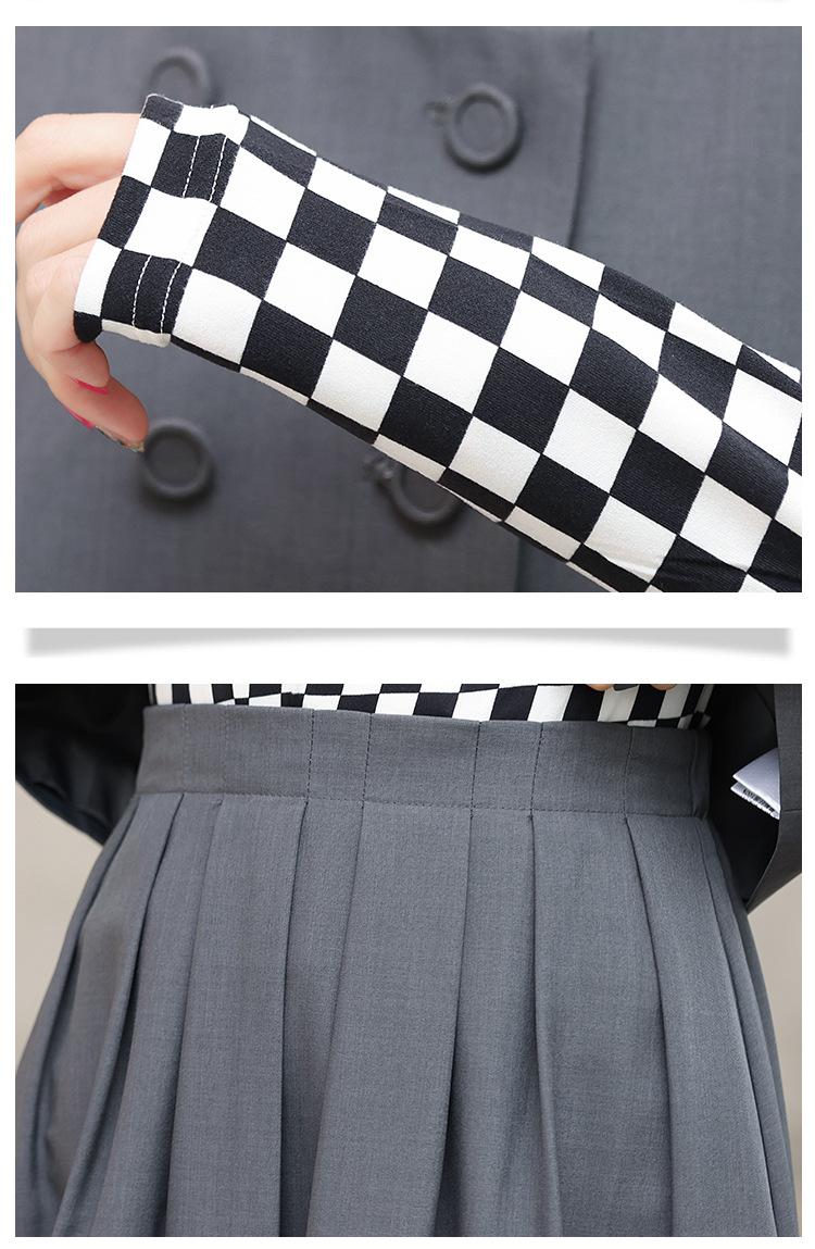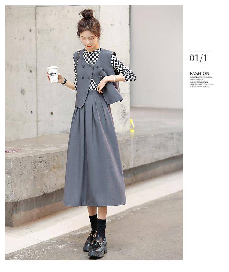 Conjunto de tres piezas con falda base y chaleco ajustado elegante a la moda de primavera con estampado de cuadros de Papaya Milk