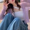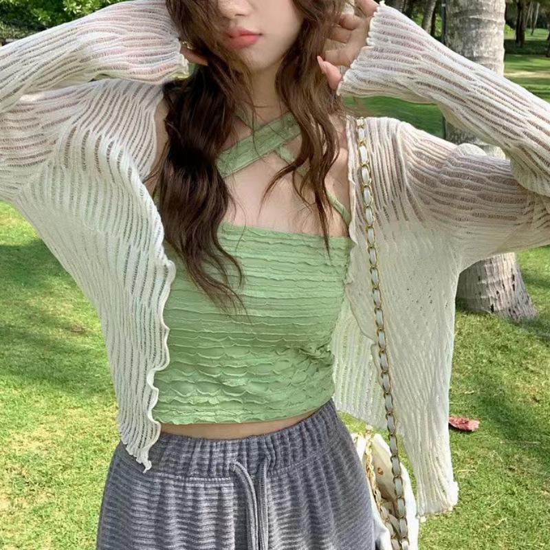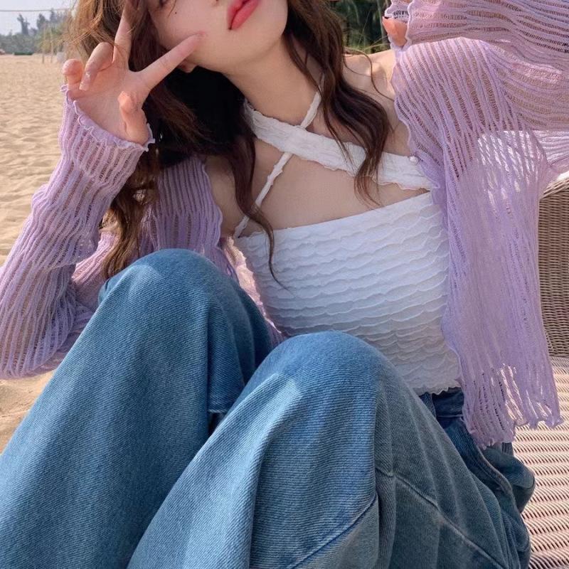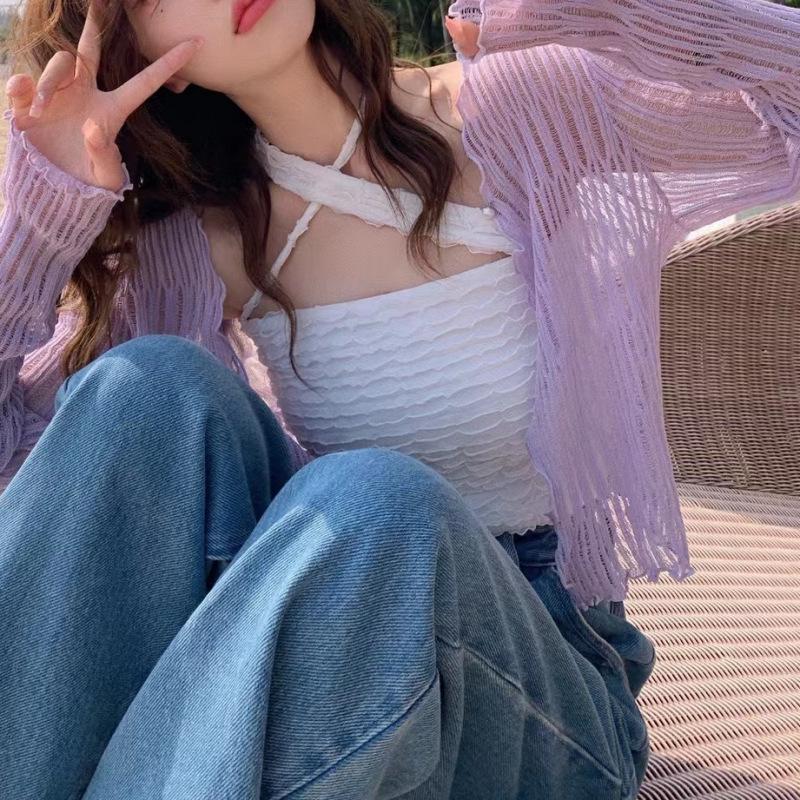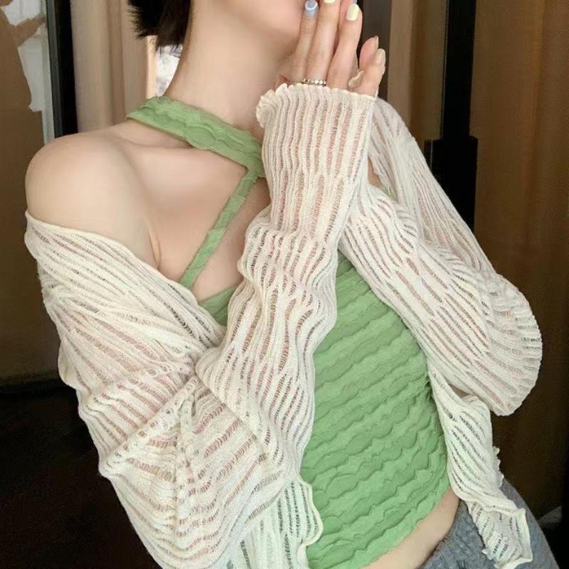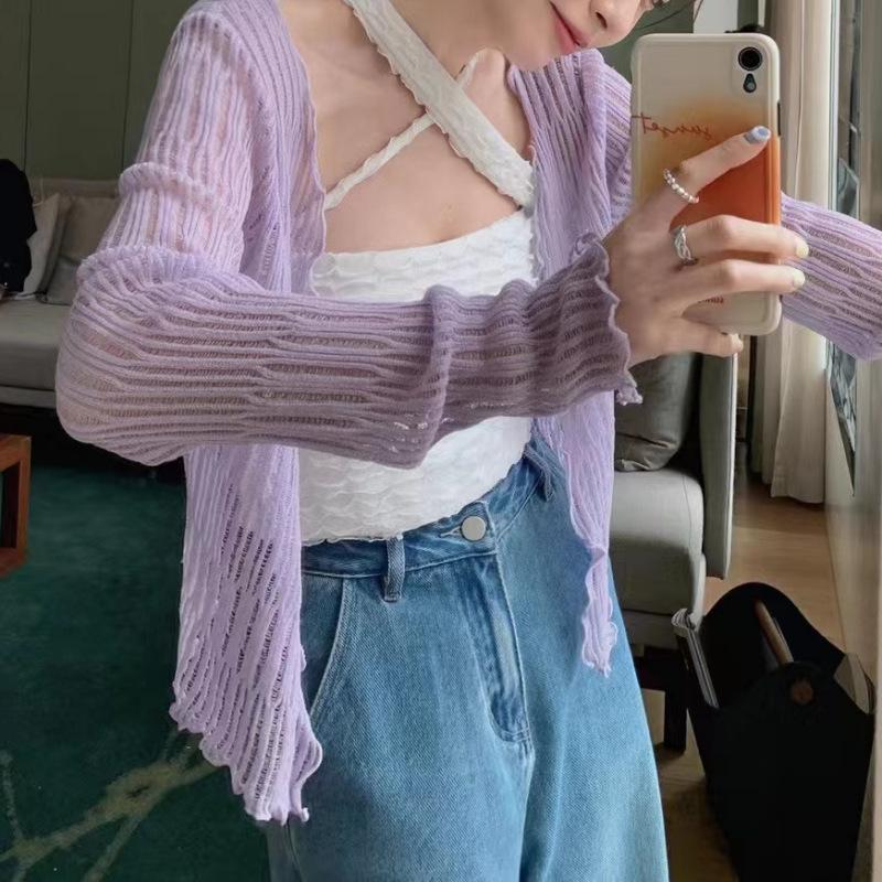 Cárdigan de punto con protección solar exterior para mujer, abrigo de verano fino, holgado, elegante, informal, hueco, combina con todo, top de manga larga
