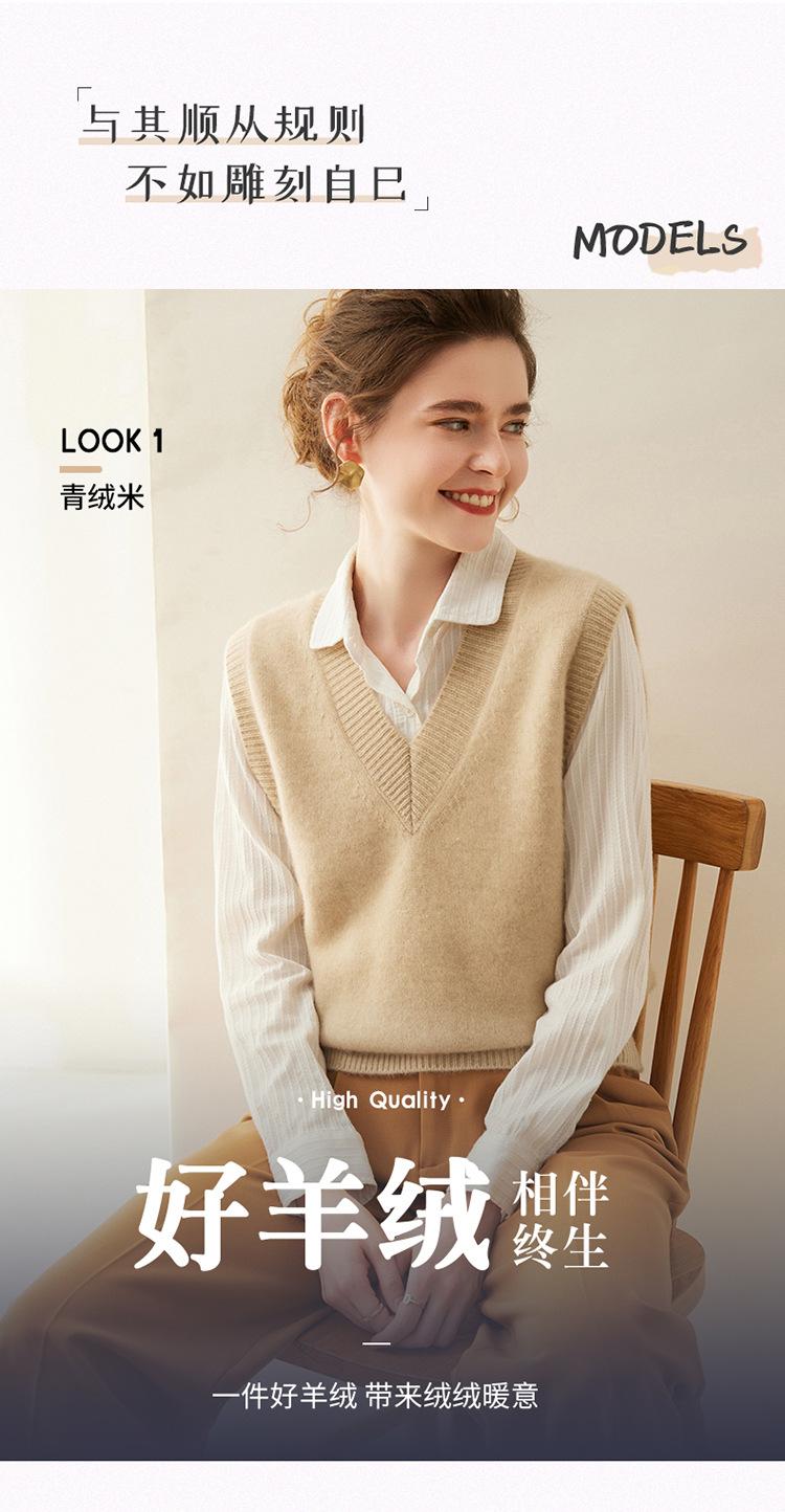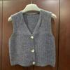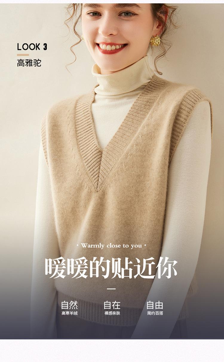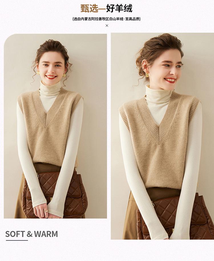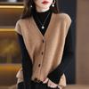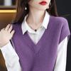 Chaleco de cachemira de punto para mujer, otoño e invierno 2023, nuevo chaleco holgado exterior con cuello en V apilado, suéter de color liso