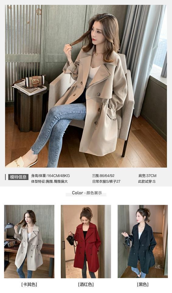 2024 Primavera y Otoño Nuevo Estilo Coreano Vestido Suelto Cuello Cintura Abrigo Casual Retro Chaqueta Ligera Madura Internet Celebridad Top
