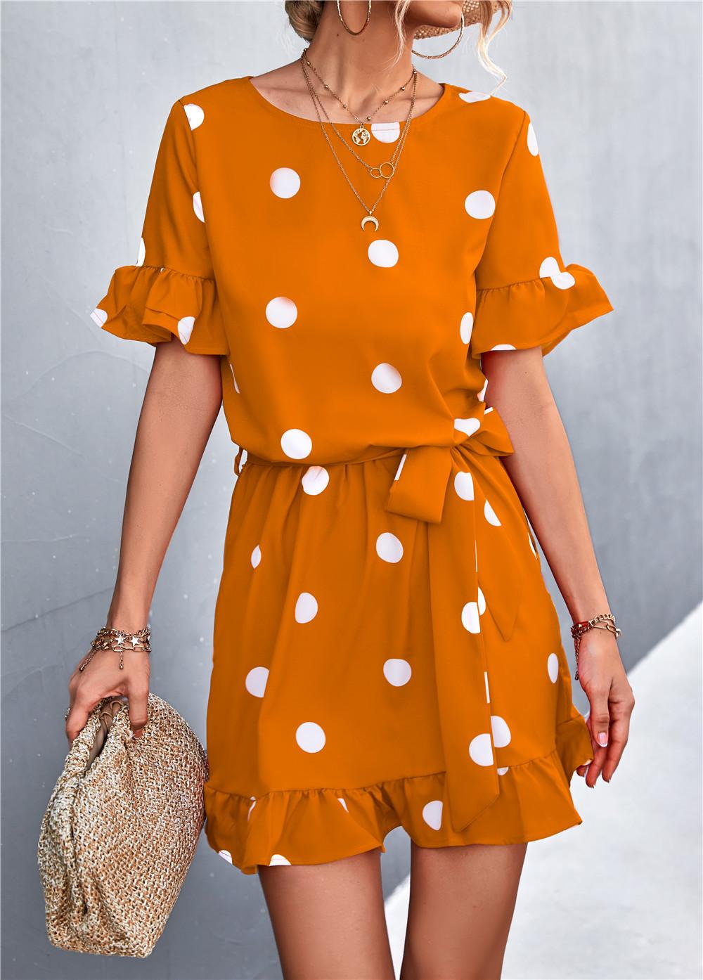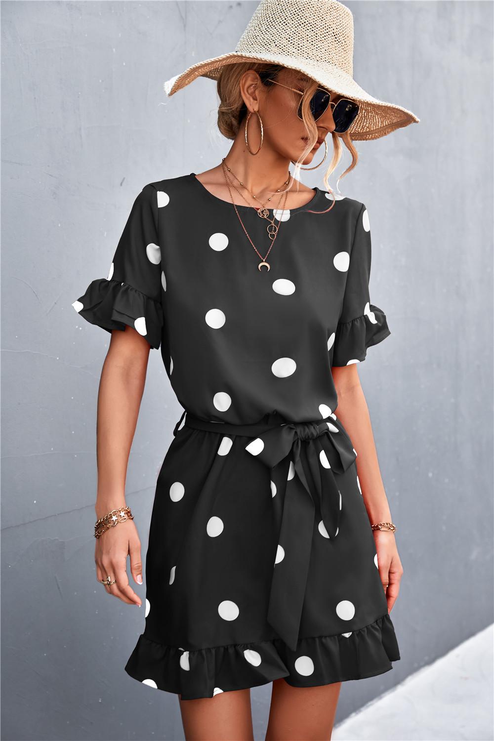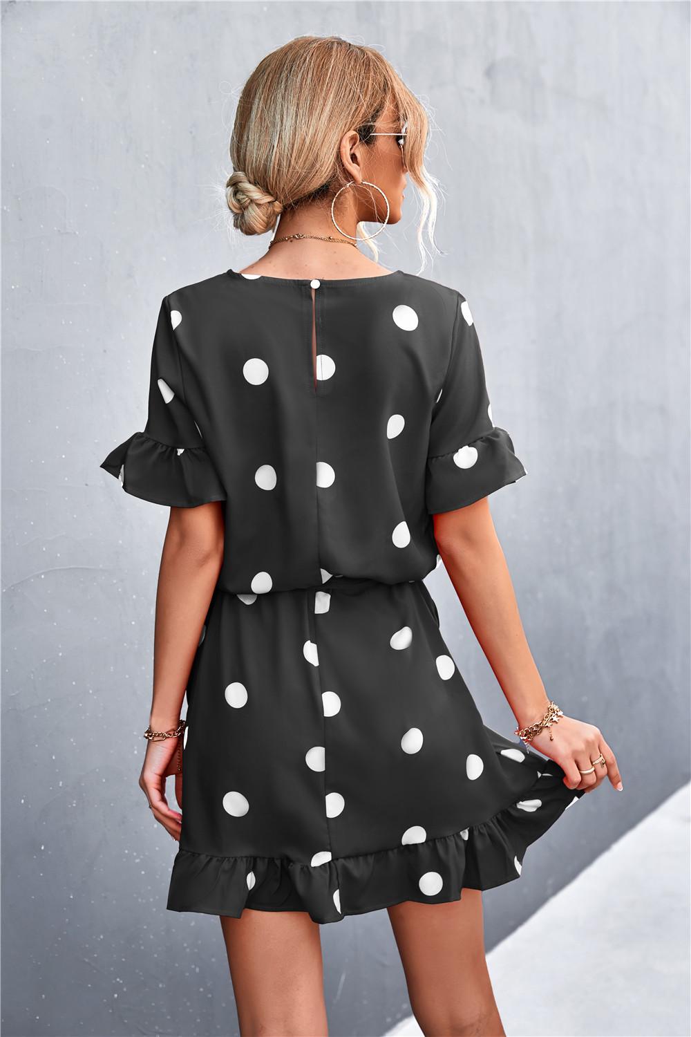 Ropa de mujer europea y americana 2022 primavera y verano Nuevo Amazon LAZADA venta caliente vestido de tirantes con lunares y volantes de cuello redondo