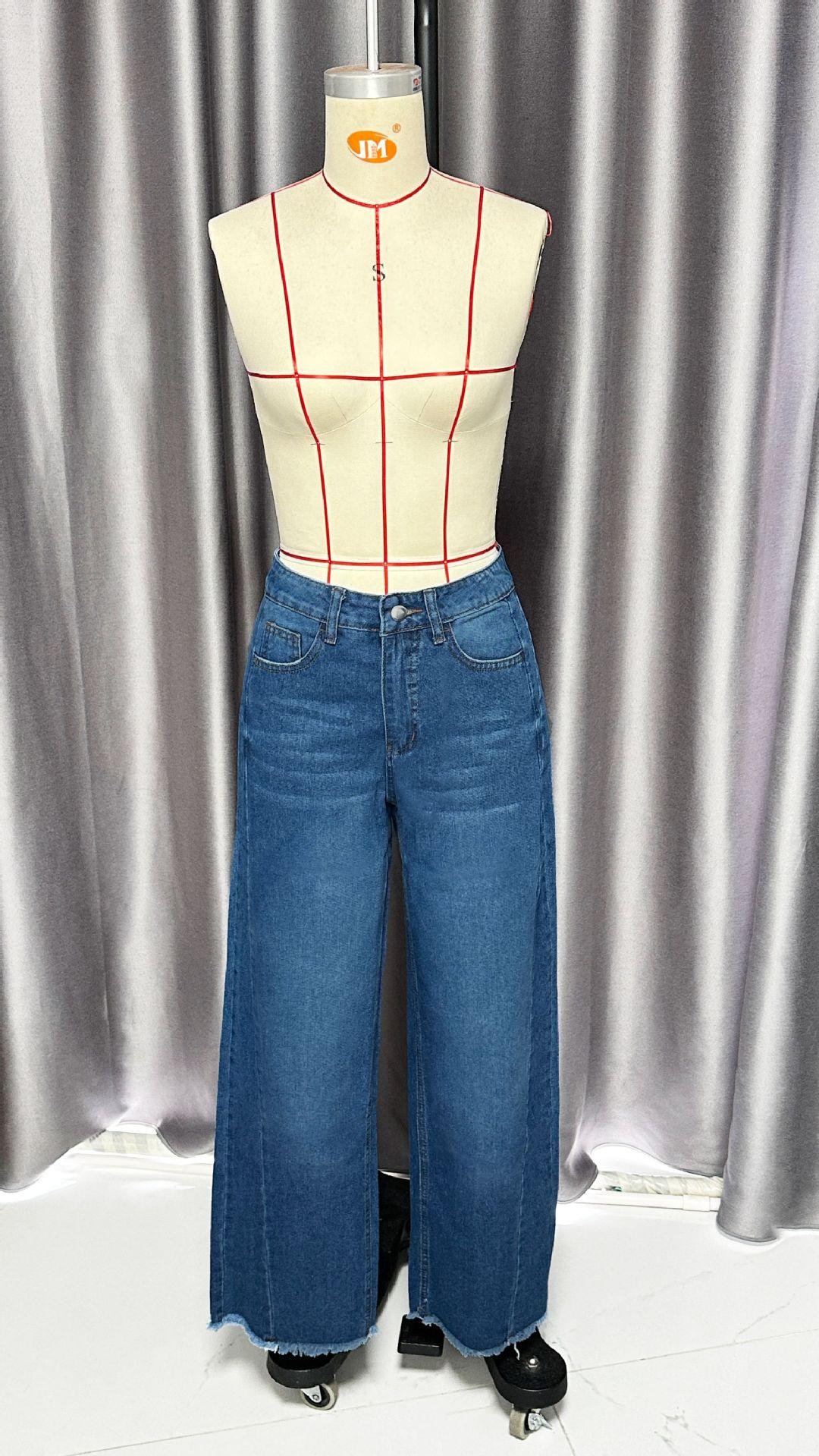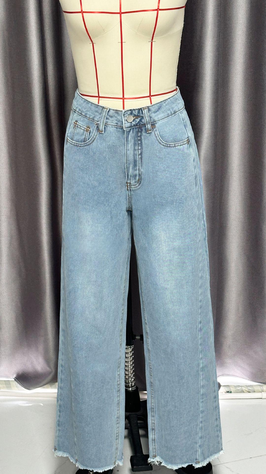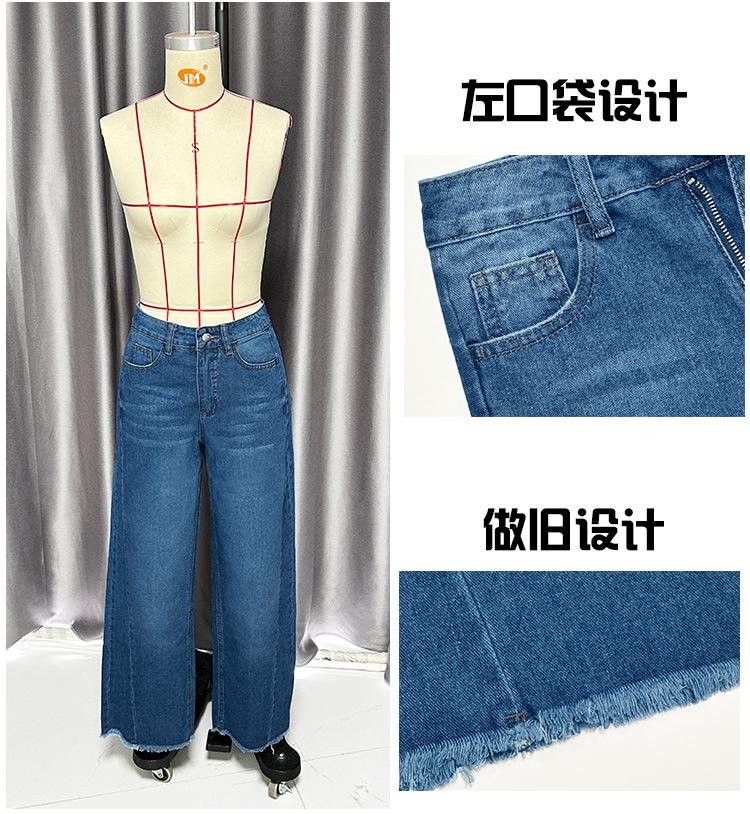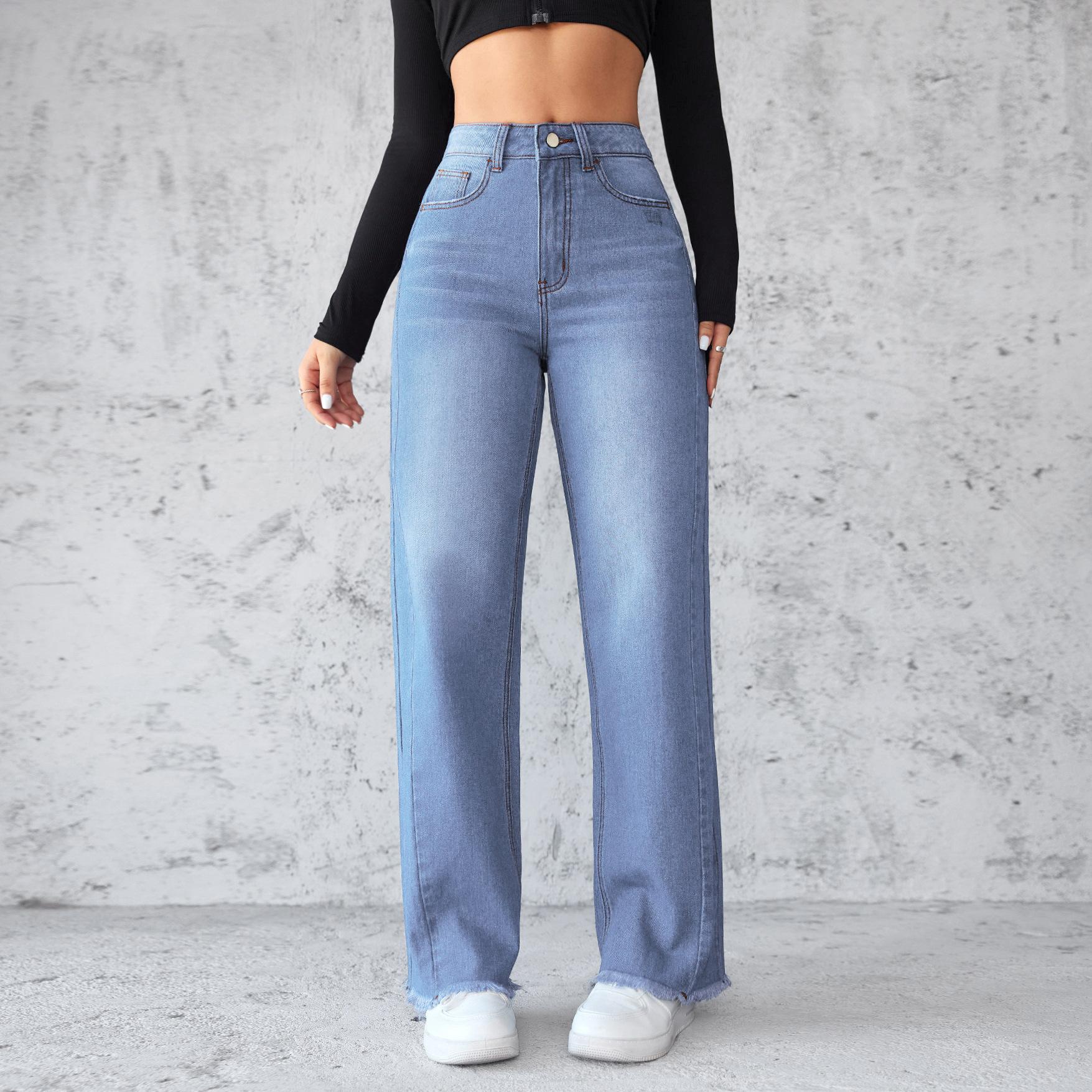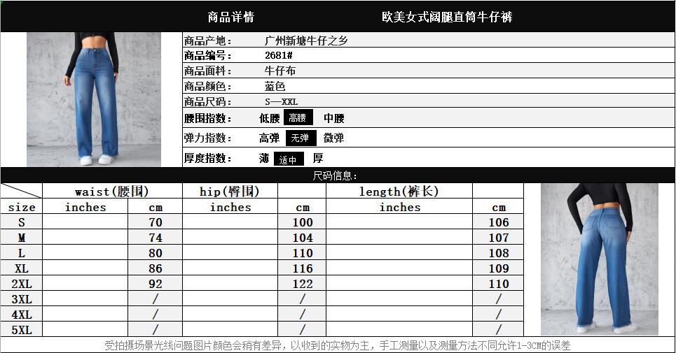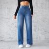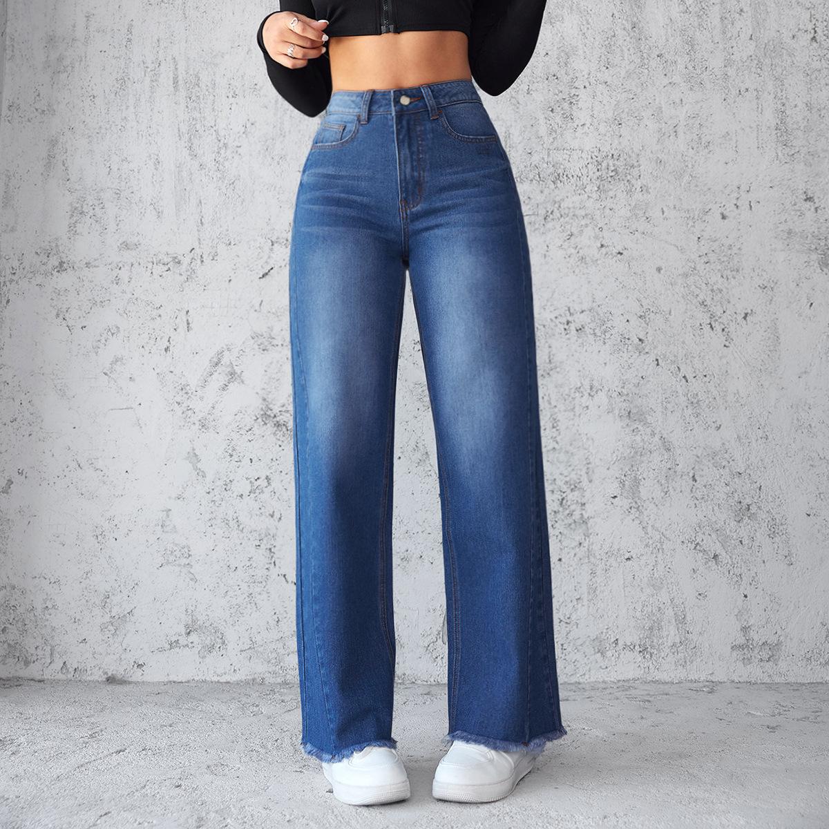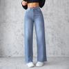 2025 Ventas Directas de Fábrica Punto Transfronterizo Nuevo Amazon Estación Independiente Jeans Elegantes Rectos de Pierna Ancha No Elásticos para Mujer