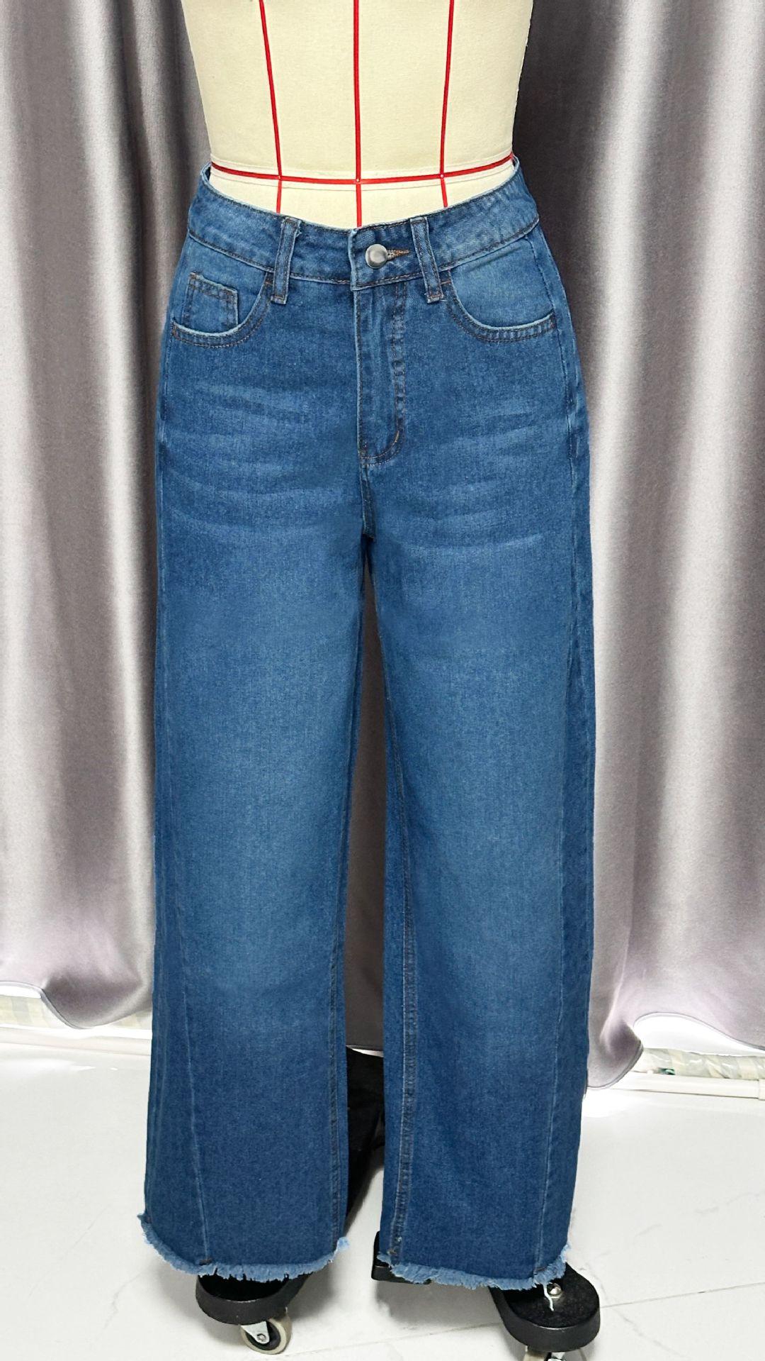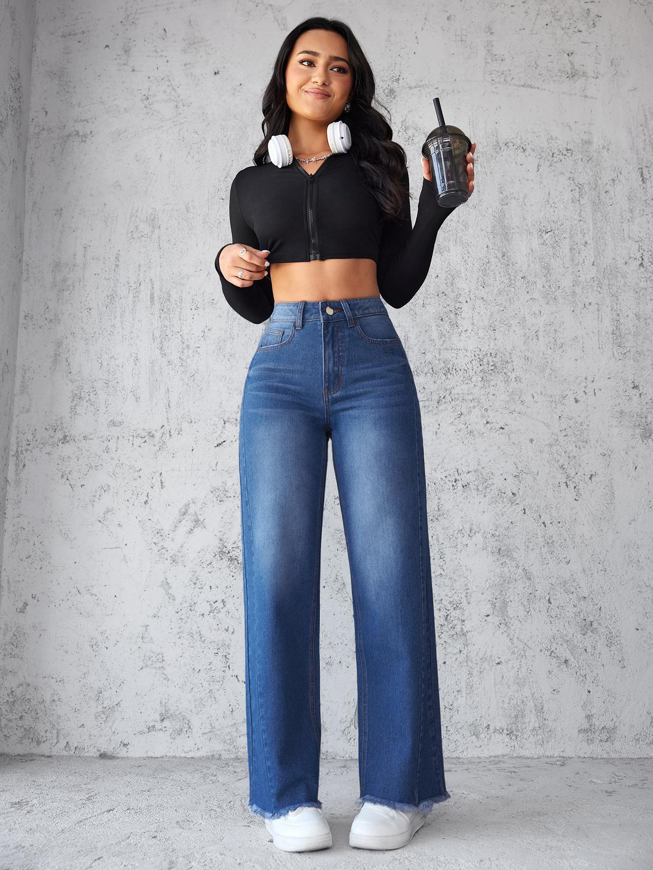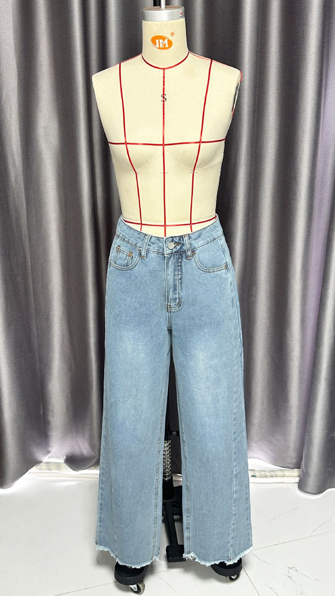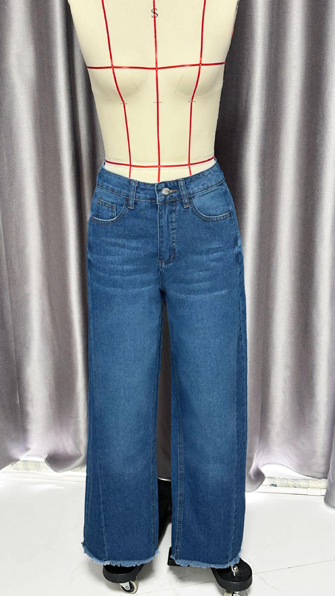 2025 Ventas Directas de Fábrica Punto Transfronterizo Nuevo Amazon Estación Independiente Jeans Elegantes Rectos de Pierna Ancha No Elásticos para Mujer