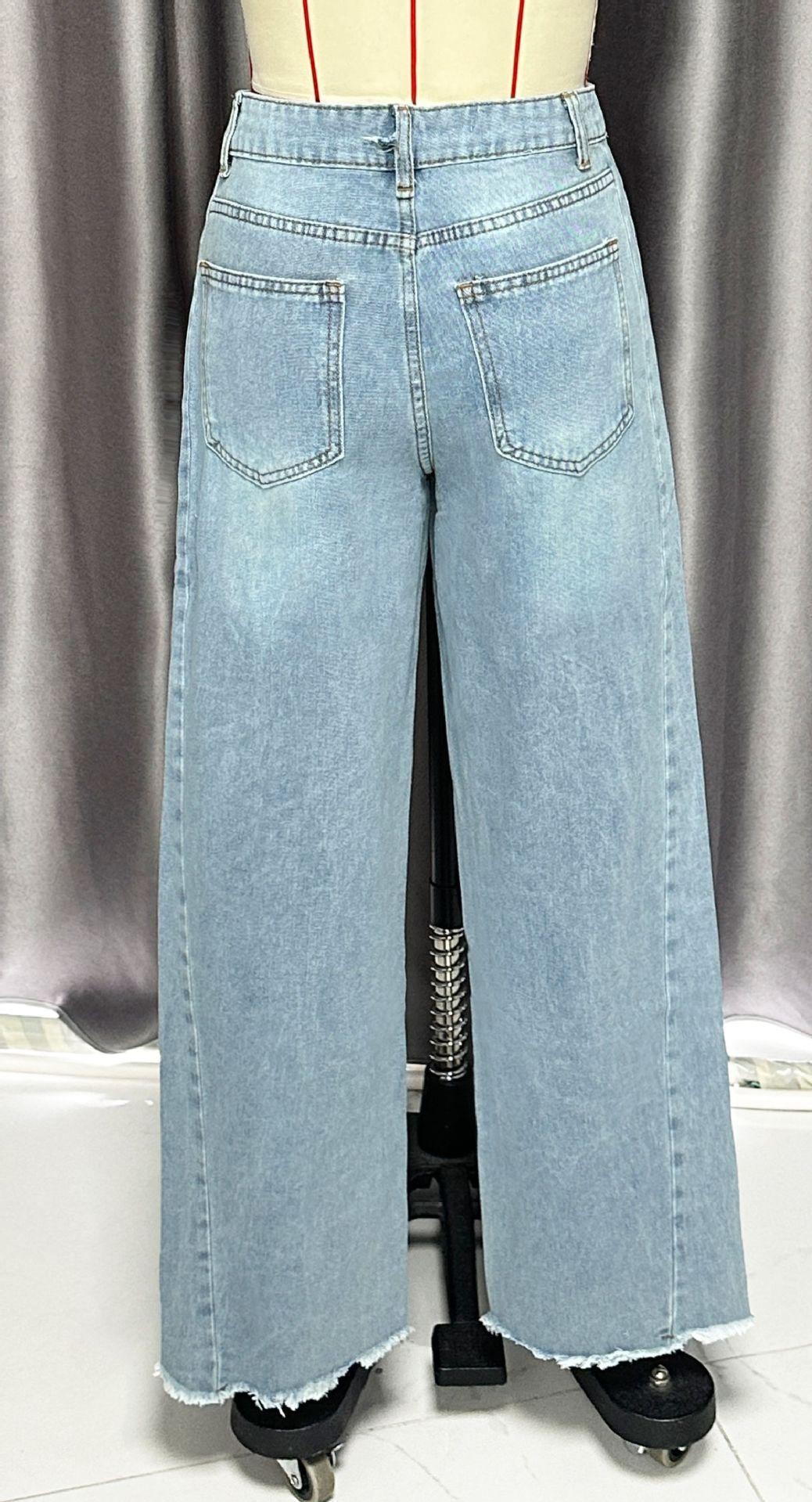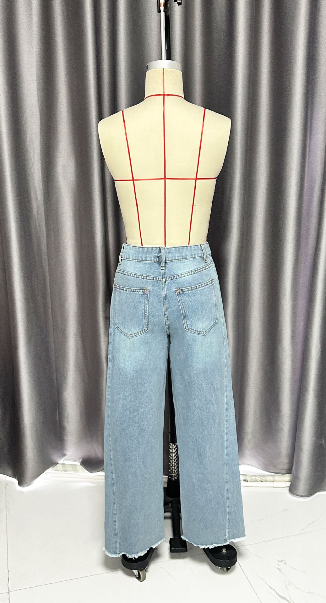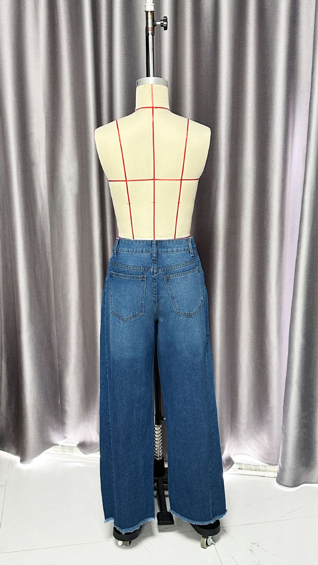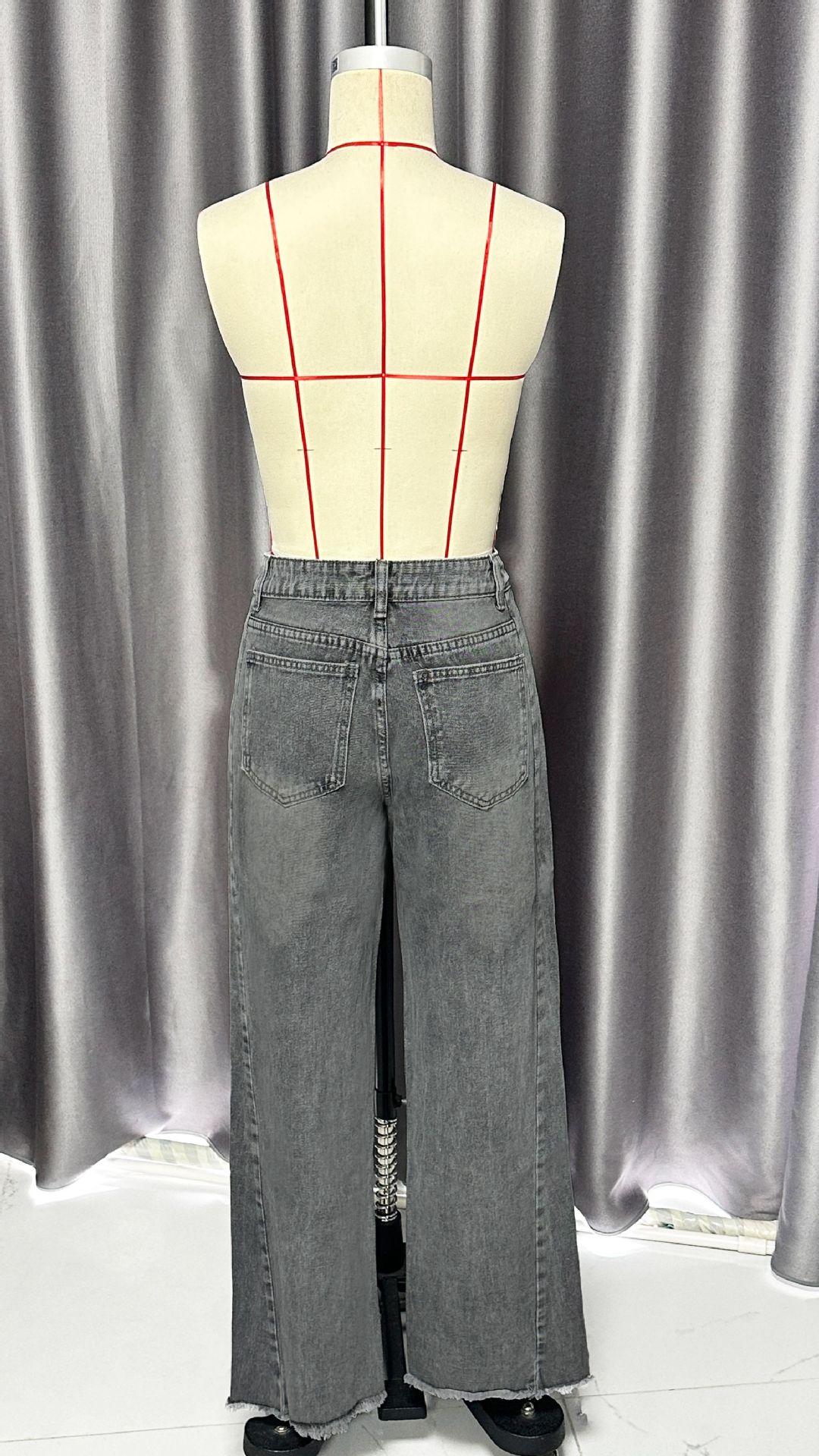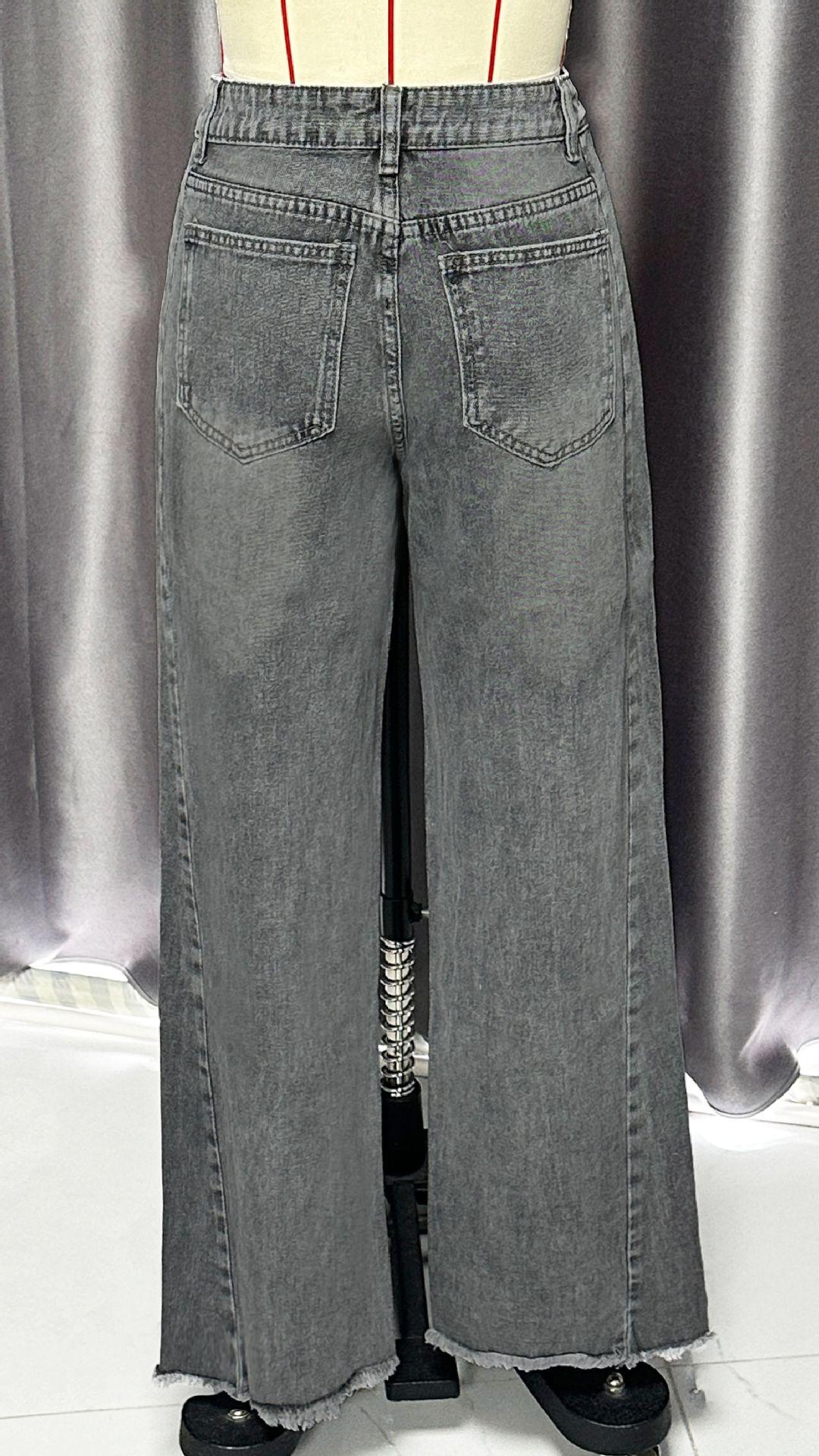 2025 Ventas Directas de Fábrica Punto Transfronterizo Nuevo Amazon Estación Independiente Jeans Elegantes Rectos de Pierna Ancha No Elásticos para Mujer