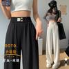 Pantalones anchos de seda de hielo para mujer, primavera y otoño, verano, cintura alta, rectos, blancos, informales, estrechos, antimosquitos, frescos y rectos.