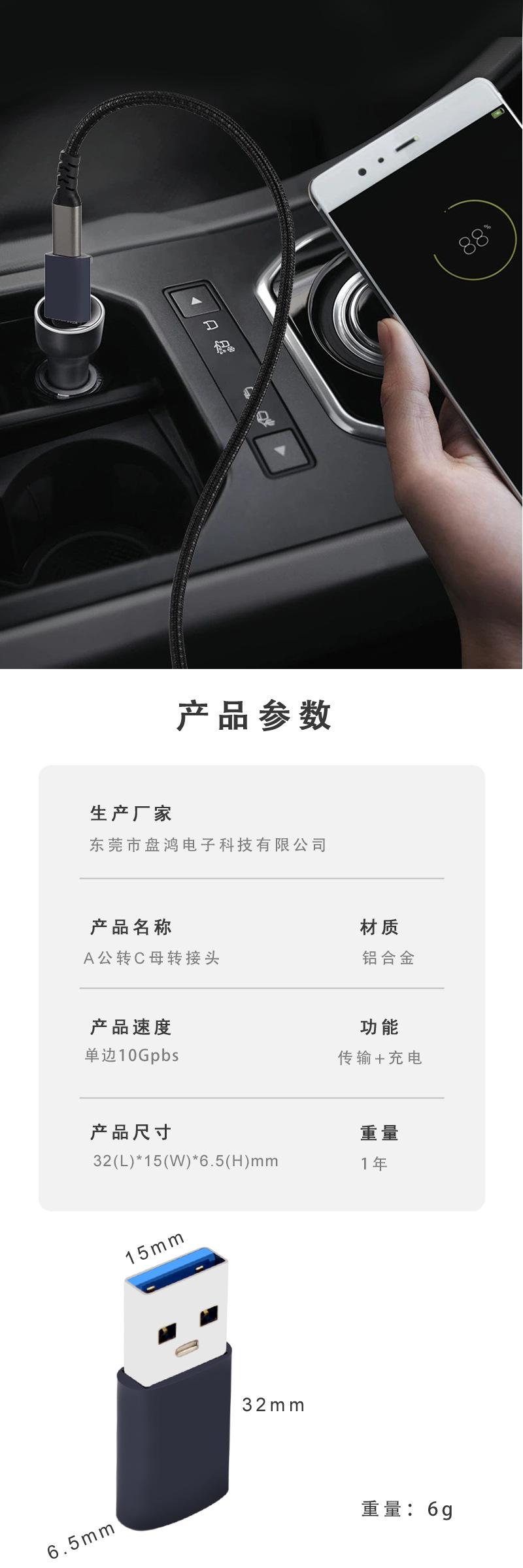 Adaptador USB a tipo C PH72D para teléfono móvil, auriculares, ordenador, convertidor de cable de datos universal tipo C