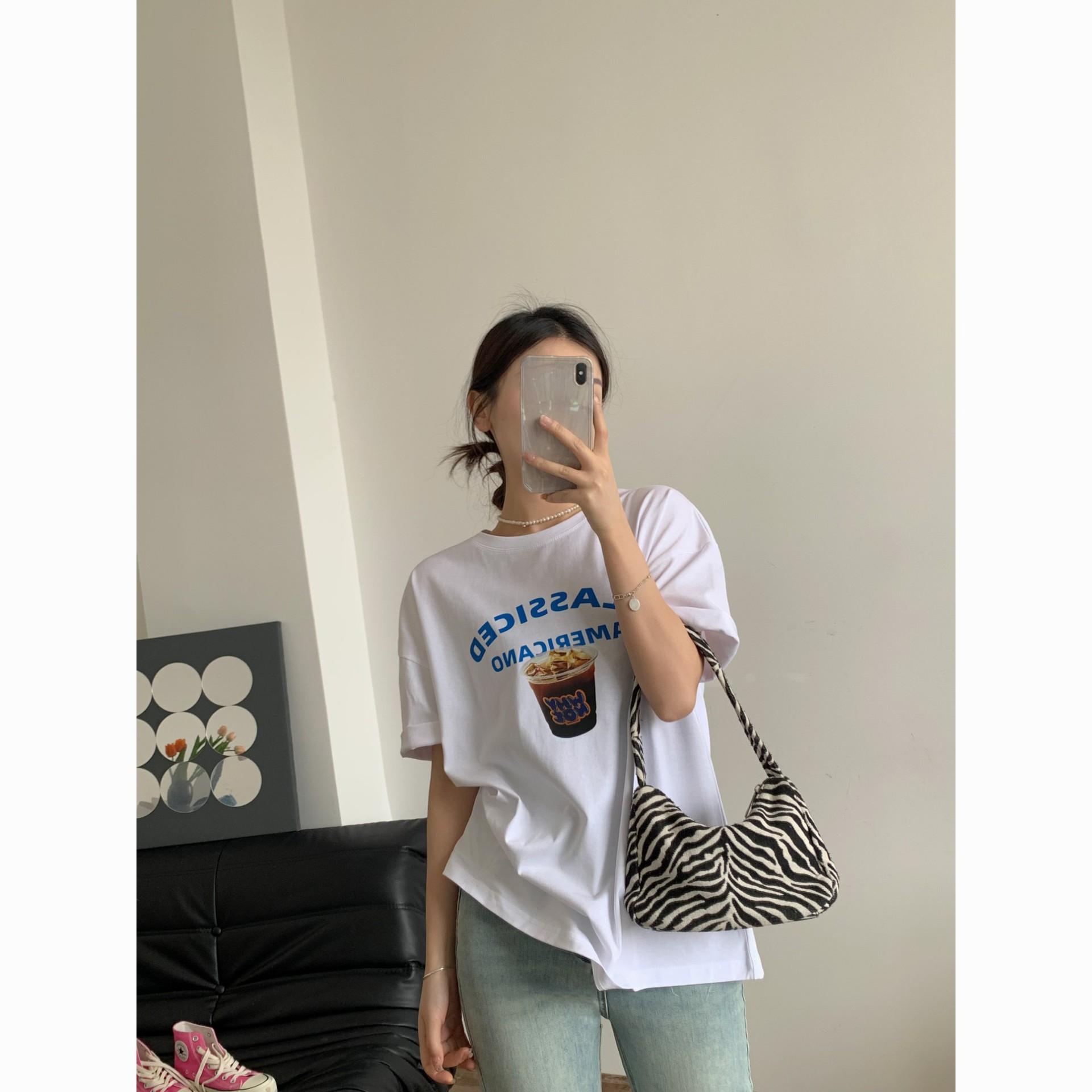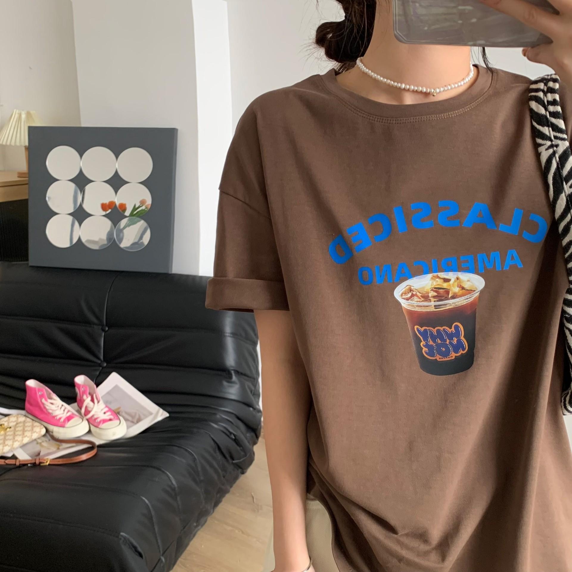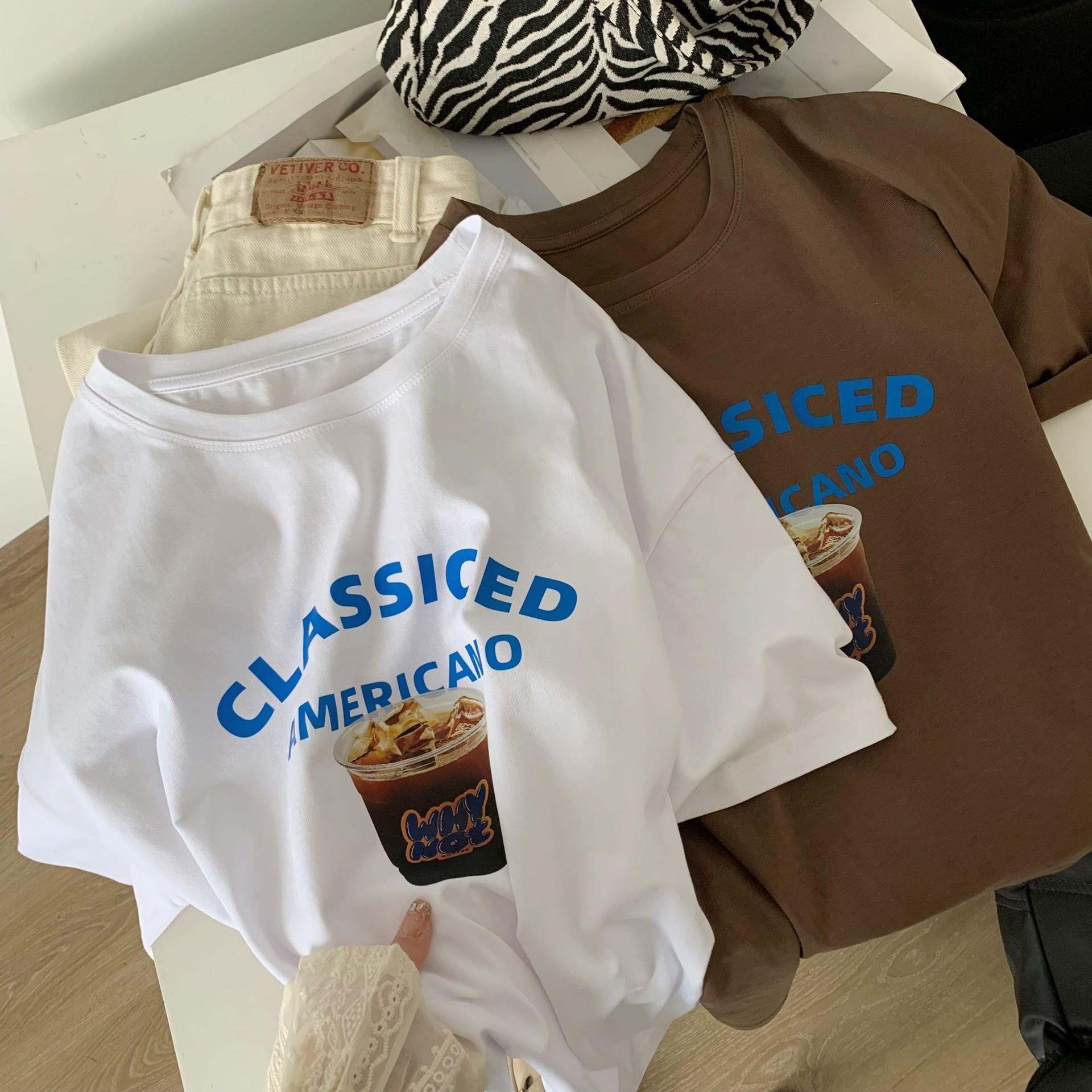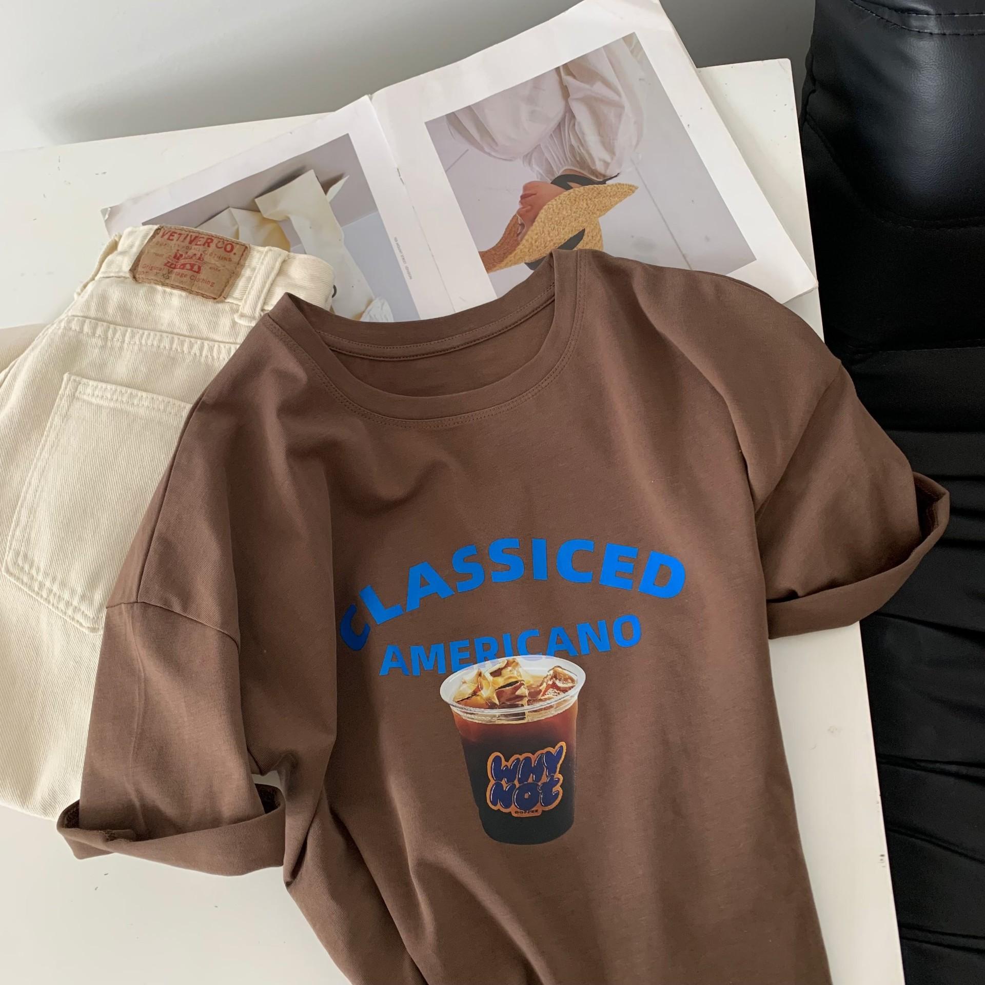 Camiseta de manga corta con estampado de estilo americano de hielo para mujer, holgada, adelgazante, combinable con todo, estilo americano, camiseta retro con estampado, estilo coreano, de moda.
