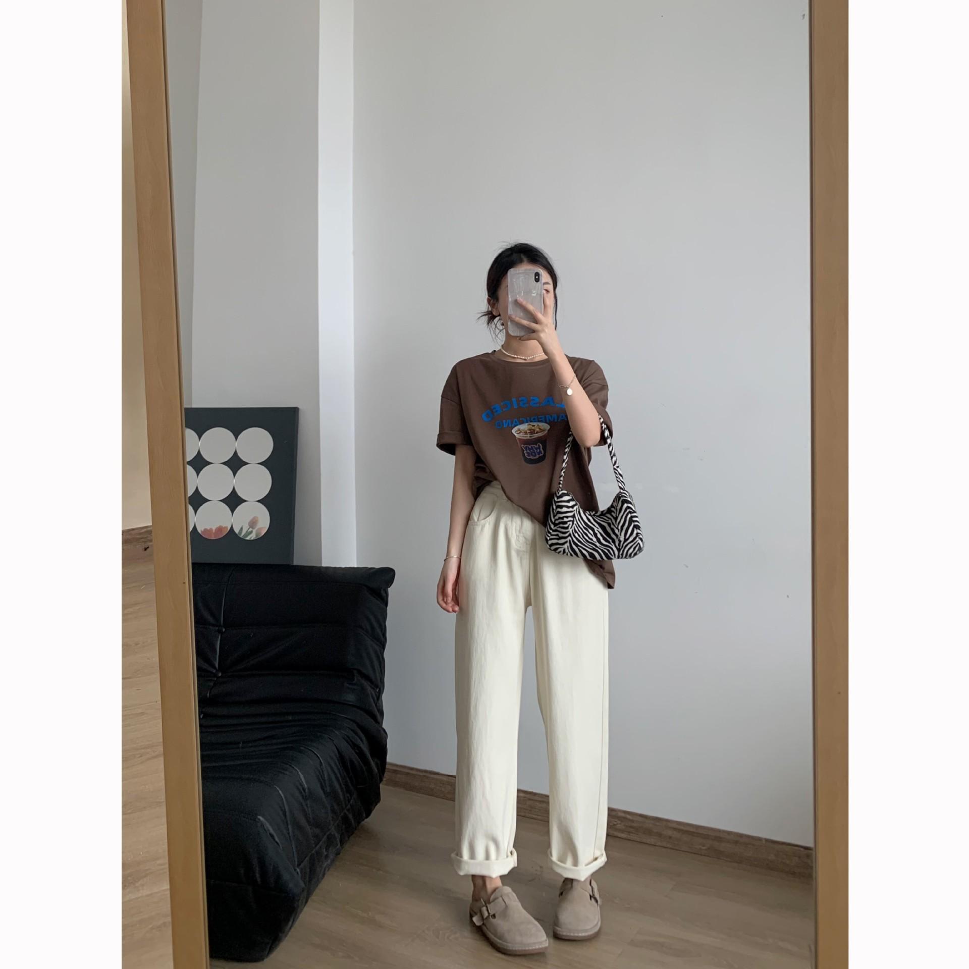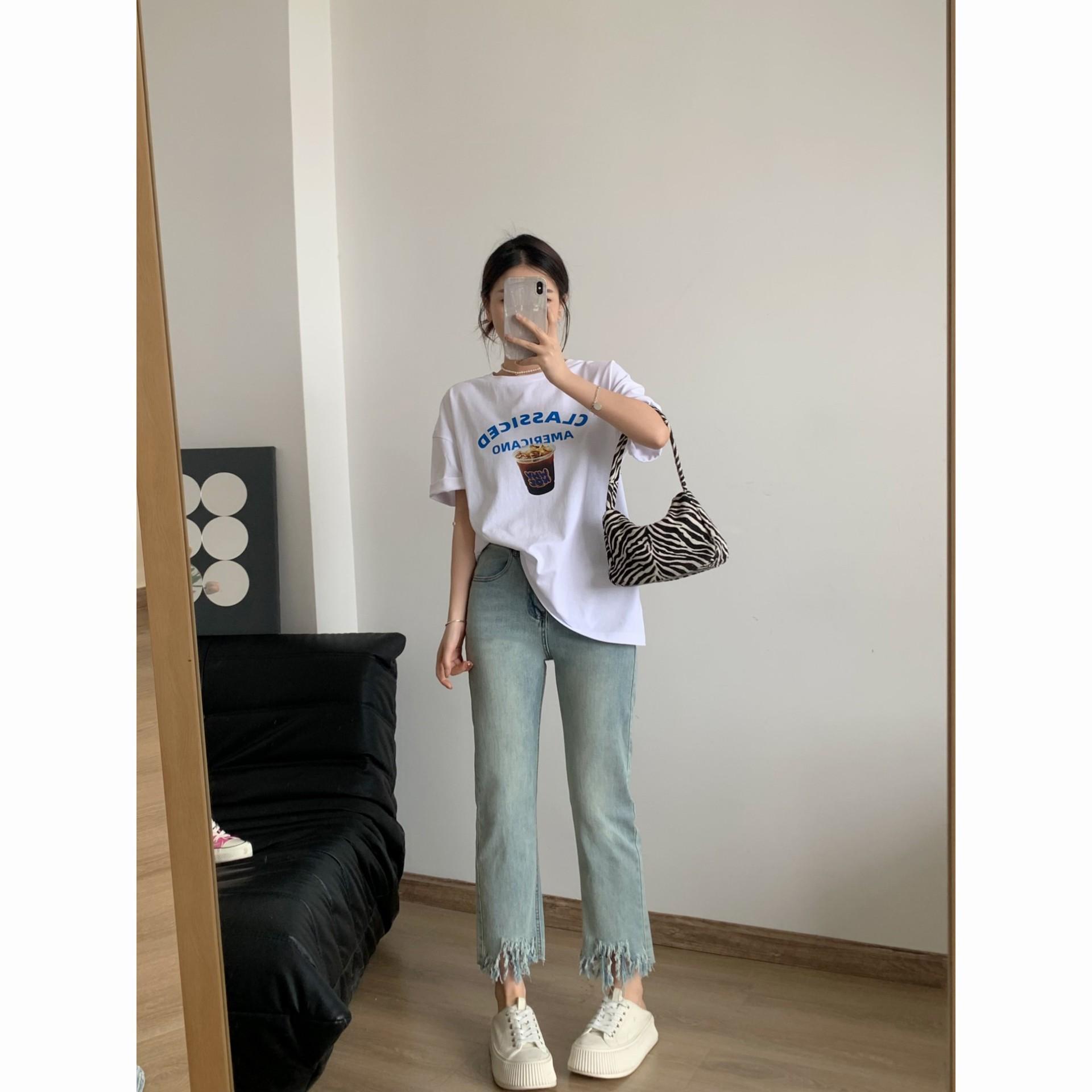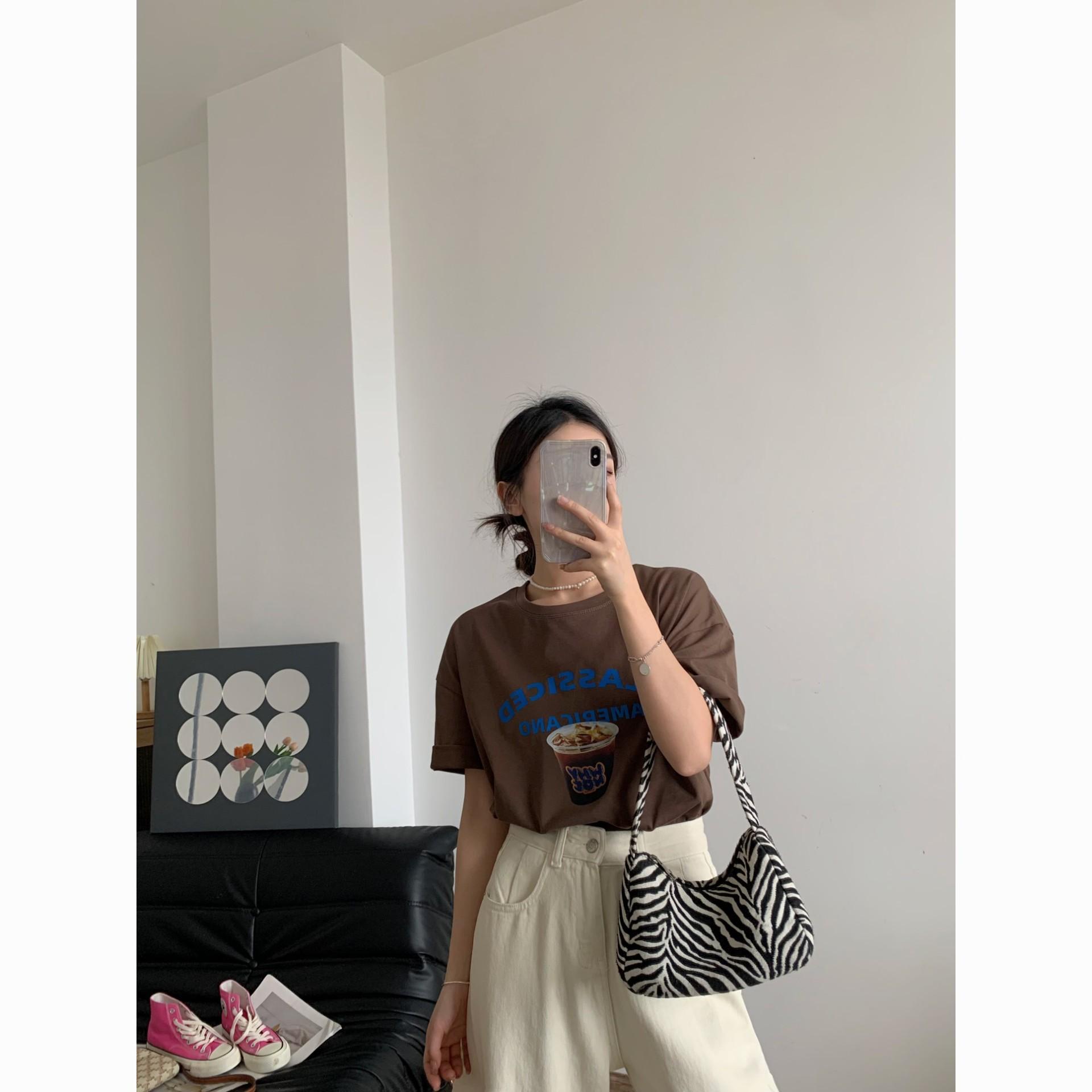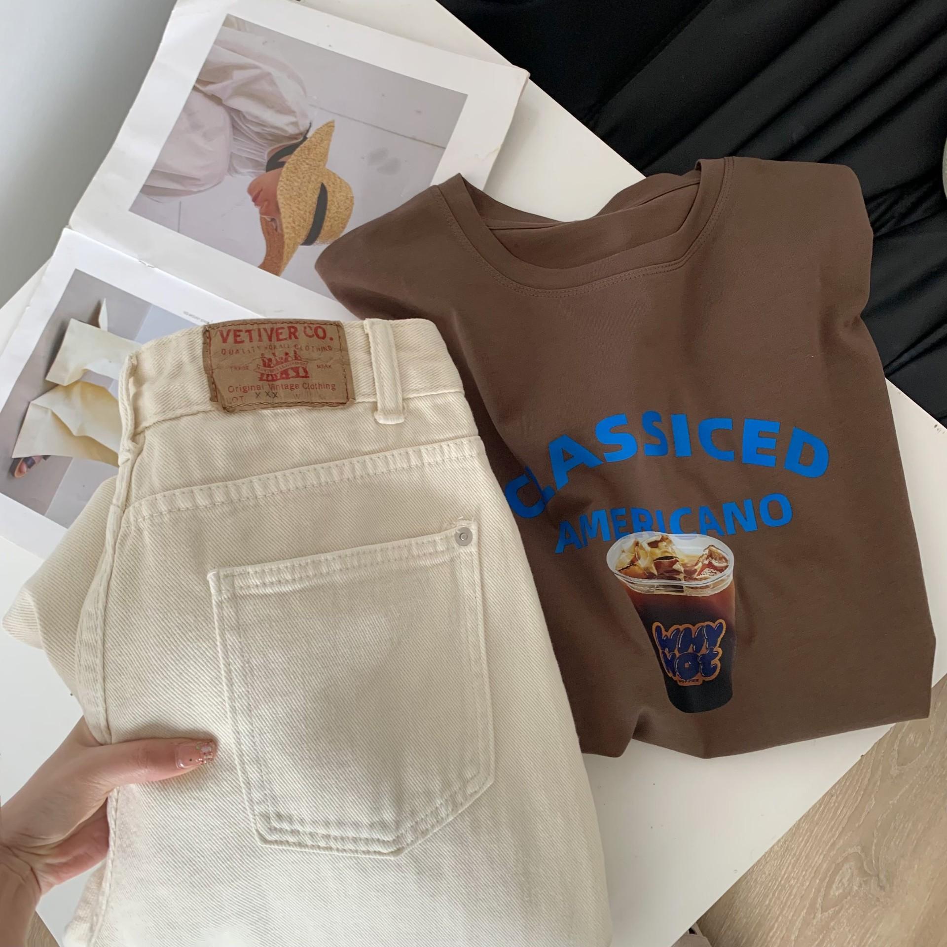Camiseta de manga corta con estampado de estilo americano de hielo para mujer, holgada, adelgazante, combinable con todo, estilo americano, camiseta retro con estampado, estilo coreano, de moda.