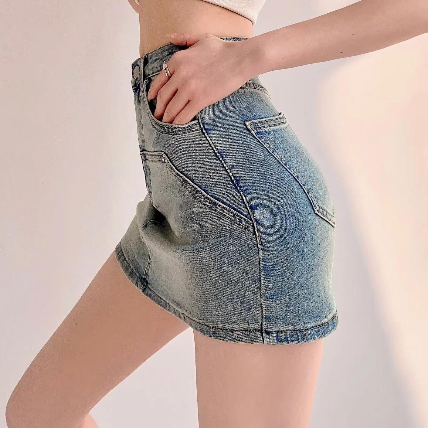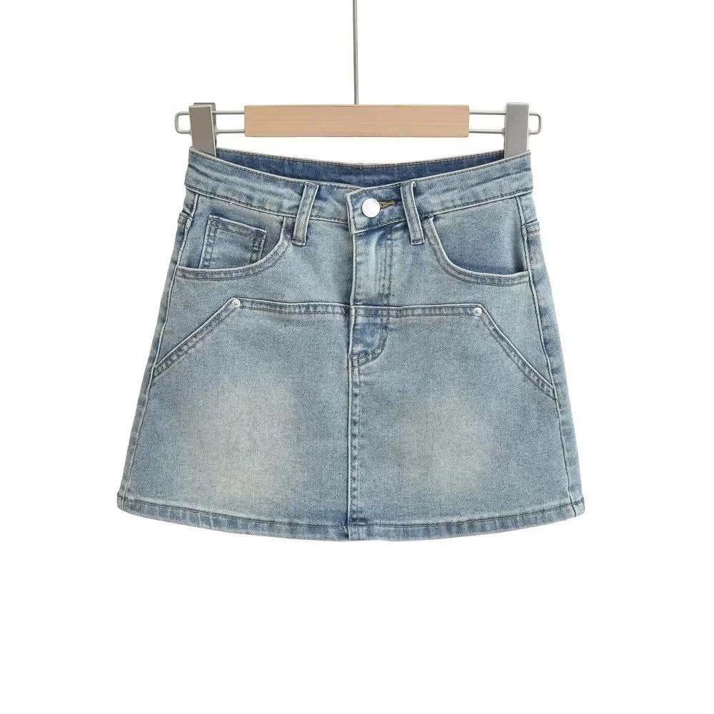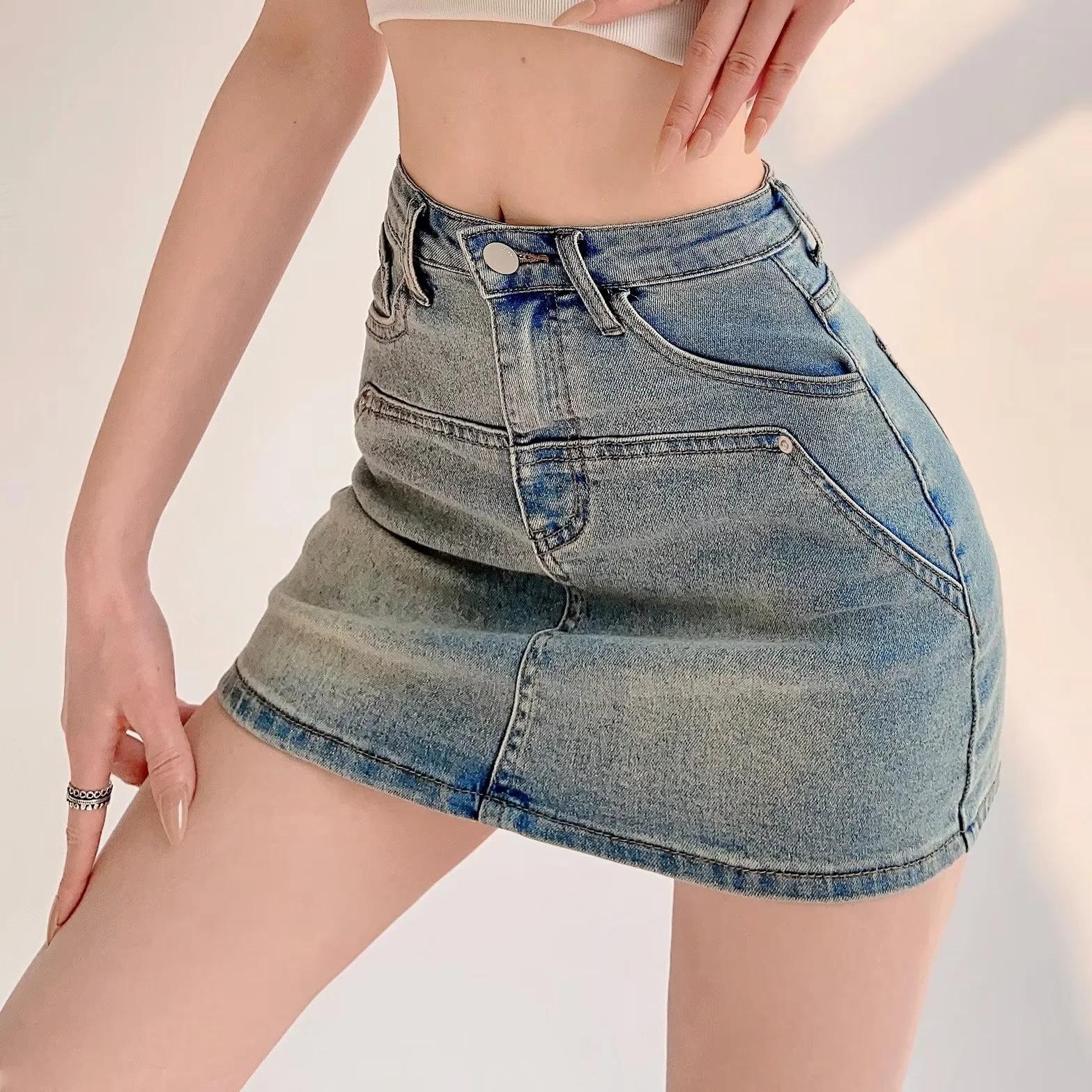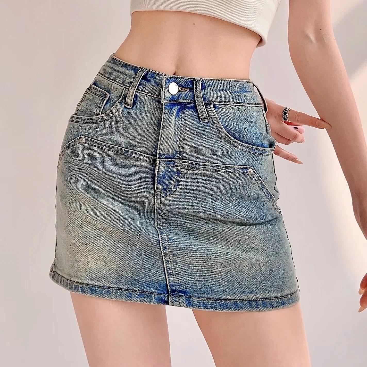 Falda vaquera retro de cintura alta para mujer, nueva falda de verano estilo europeo y americano, antiexposición, sexy, de corte A