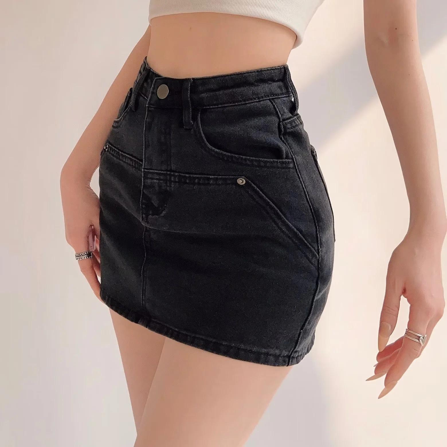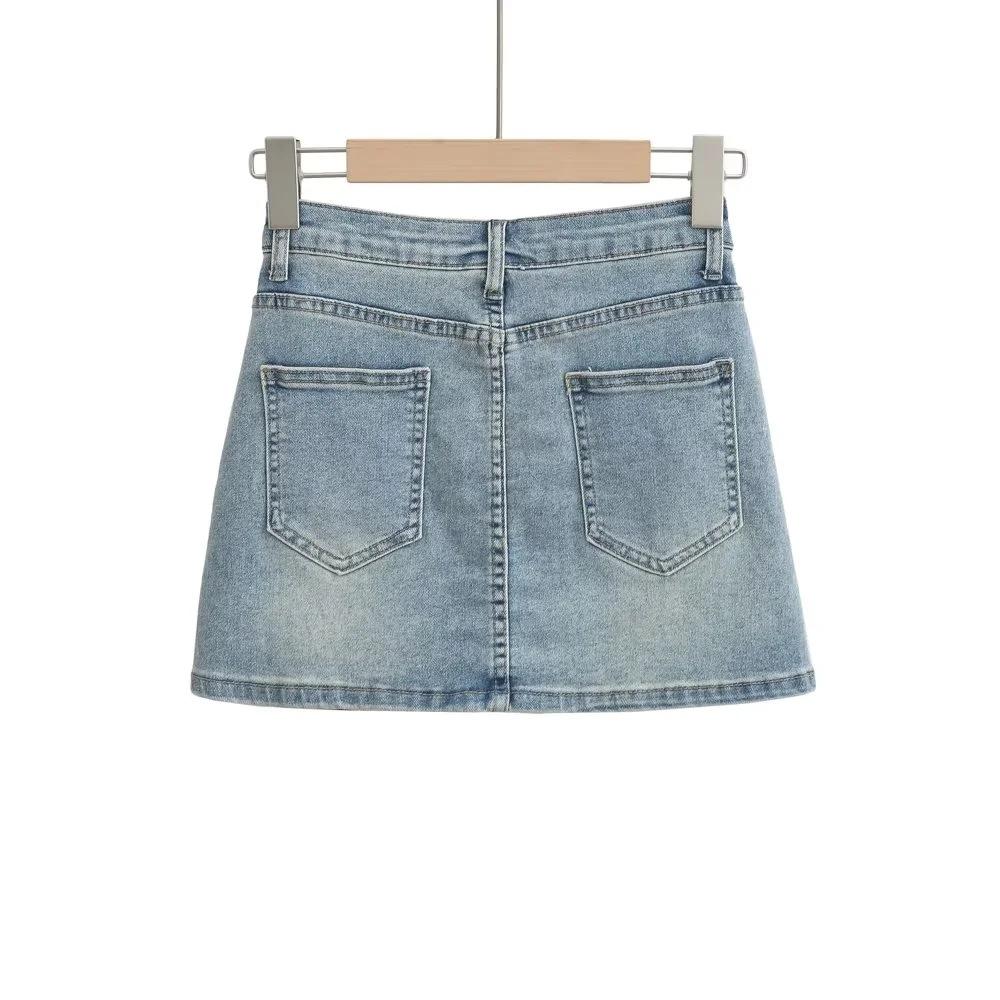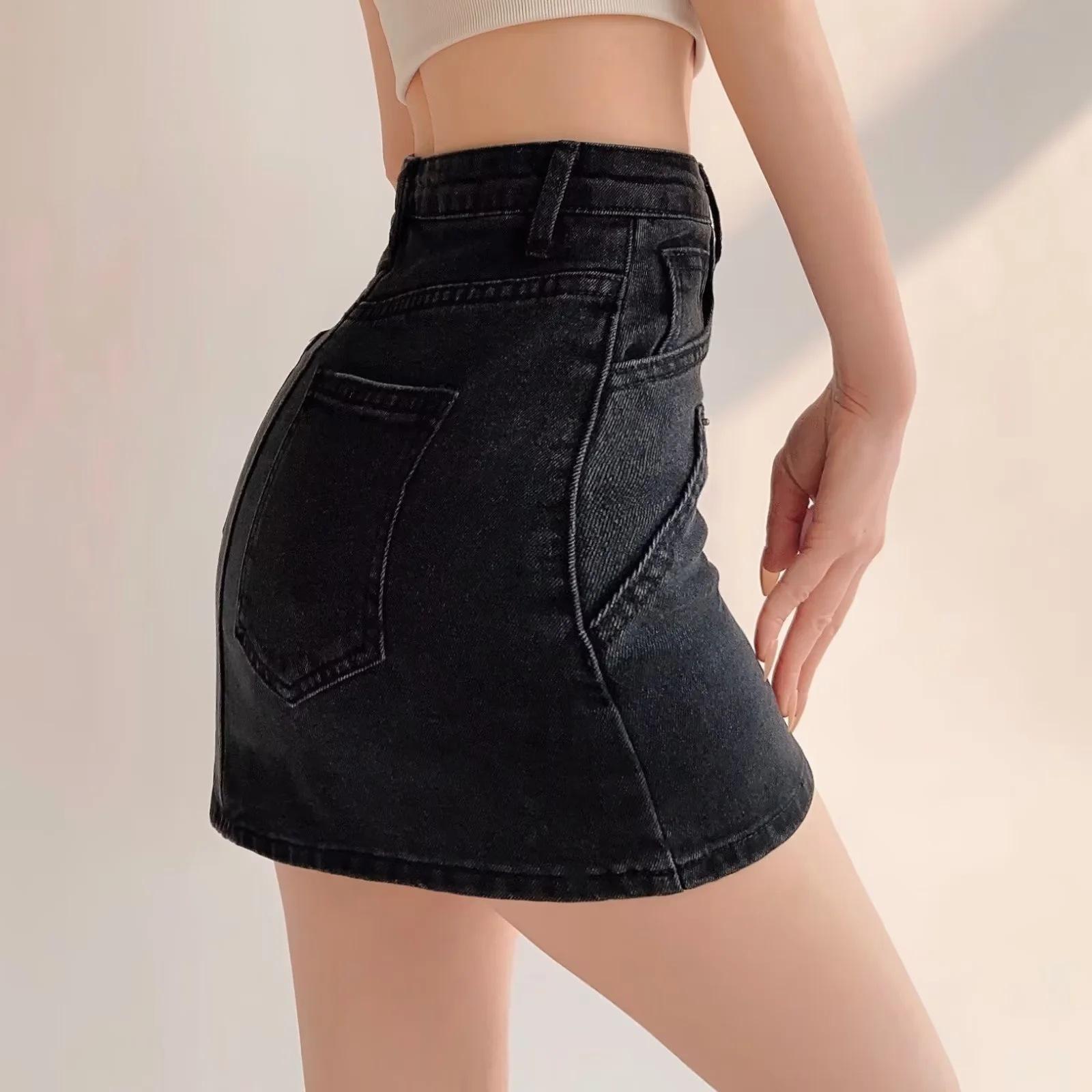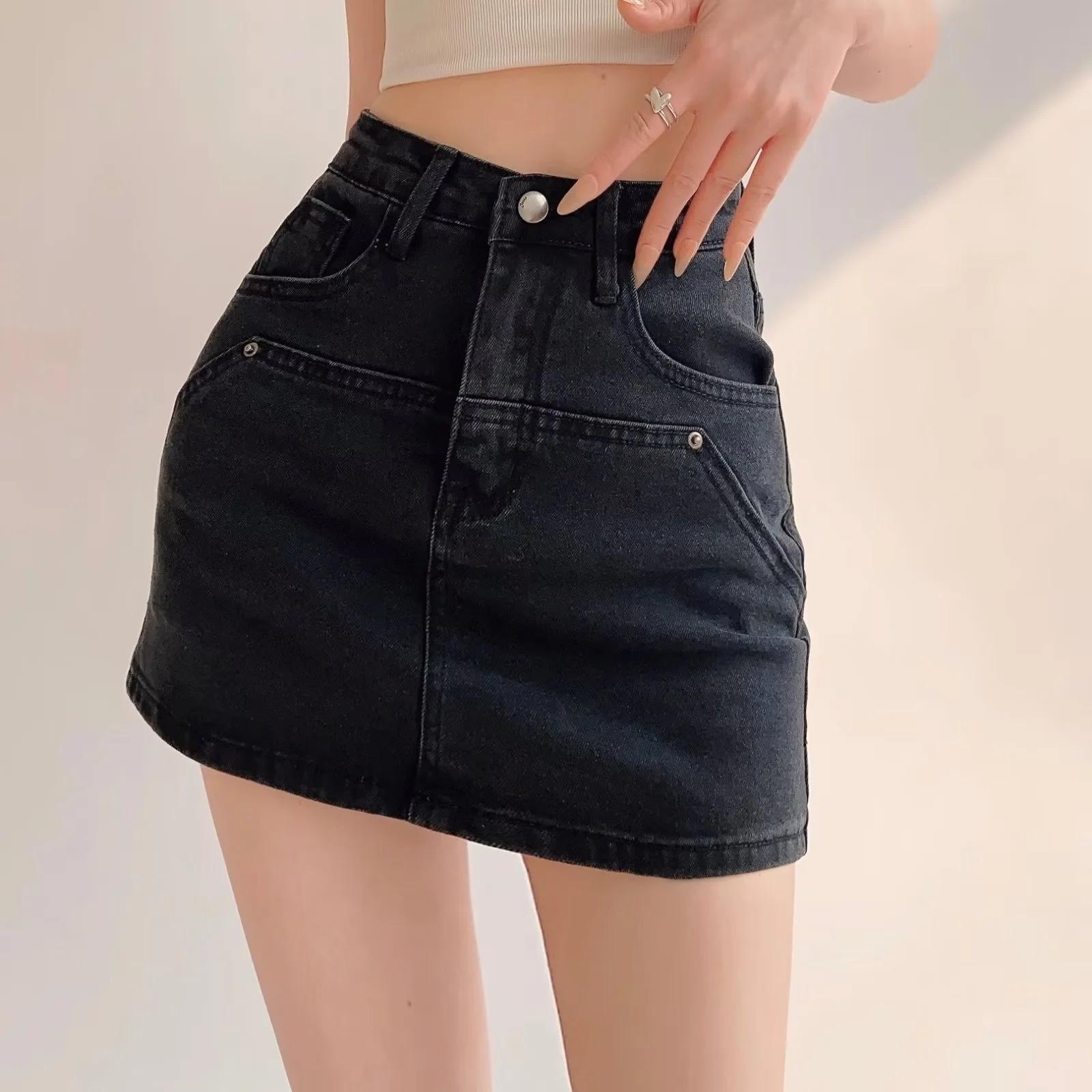 Falda vaquera retro de cintura alta para mujer, nueva falda de verano estilo europeo y americano, antiexposición, sexy, de corte A